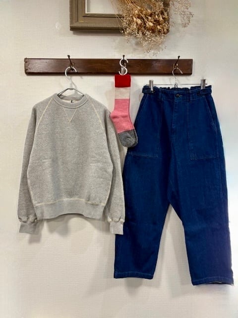 日本製シンカー編み機を用いて作られたオリジナル素材を使用したスウェットです。 肉厚素材ながらふっくらと柔らかく保温力もあり真冬の寒さにも耐えられる温かな着心地をお楽しみ頂けます。 ヴィンテージスェットのような良い意味で"こすけ”た味のある風合いを持ちながら古着とは違い着用後の型崩れをしにくい安定性のある素材にブラッシュアップされていてリアウウェアとしての実用性の高さも魅力です。 デザインは素材の持ち味を活かして60年代のラグラン前Vスウェットシャツをベースにしています。 肩・腕の可動域が広く運動性や着心地に優れたラグランスリーブは体のラインも滑らかに綺麗に見せてくれます。 縫製やパーツのリブなど細かい部分のディテールにもしっかりとこだわり手間をかけて生産された長く愛用し続けたいアイテムです。 またウールなどの動物性繊維の刺激が苦手な方でも温かく防寒をしていただけるアイテムとしてもおすすめです。 素材:コットン100% サイズ(S):バスト100cm・ゆき丈72cm・身丈62cm カラー:アンティークアイボリー / オールドメランジグレー / ヴィンテージグリーン *着用写真はオールドメランジグレーです *身長161cm着用 日本製