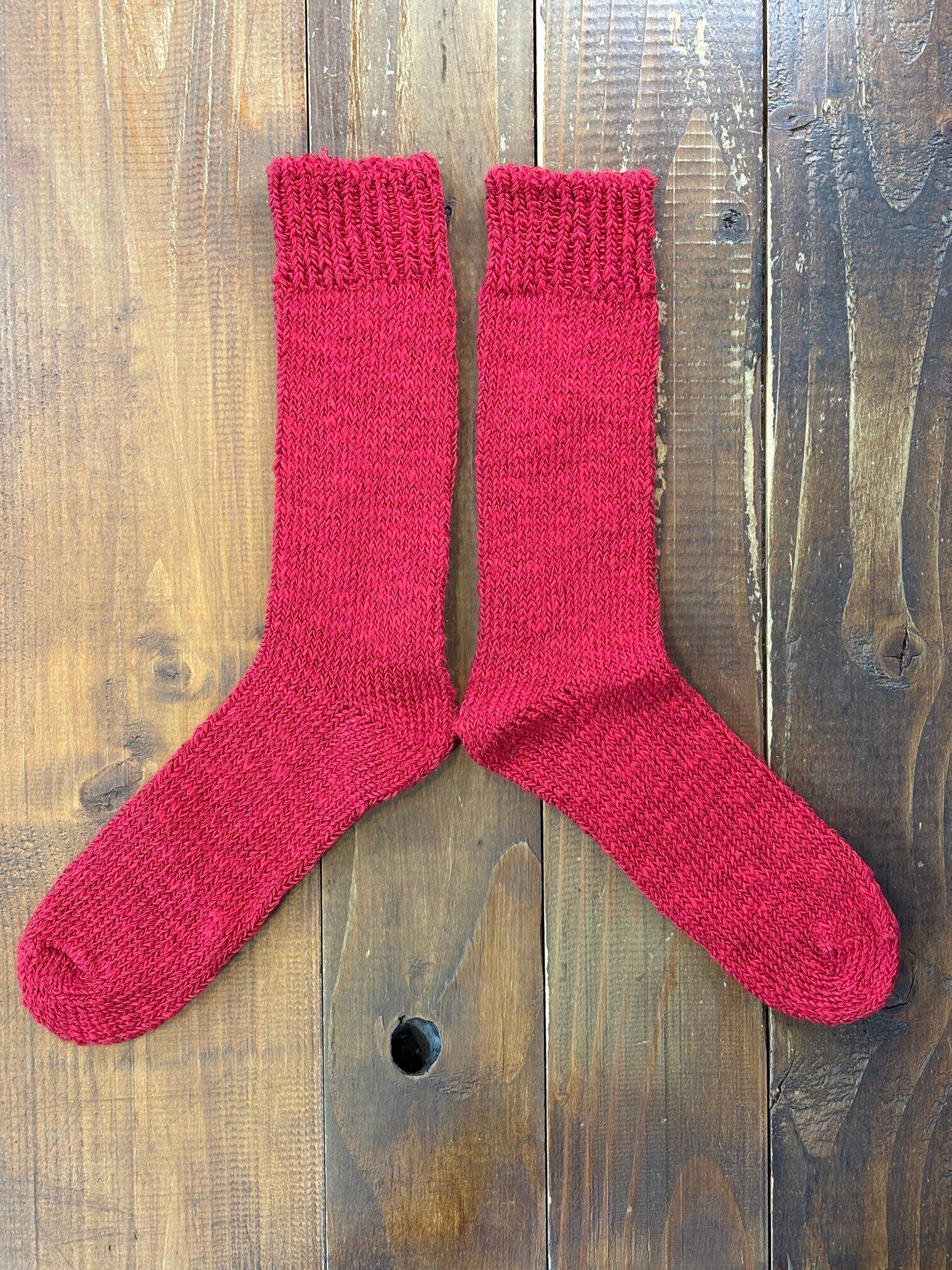 yahae・Organic Cotton Linen Low Gauge Plain Socks・Red