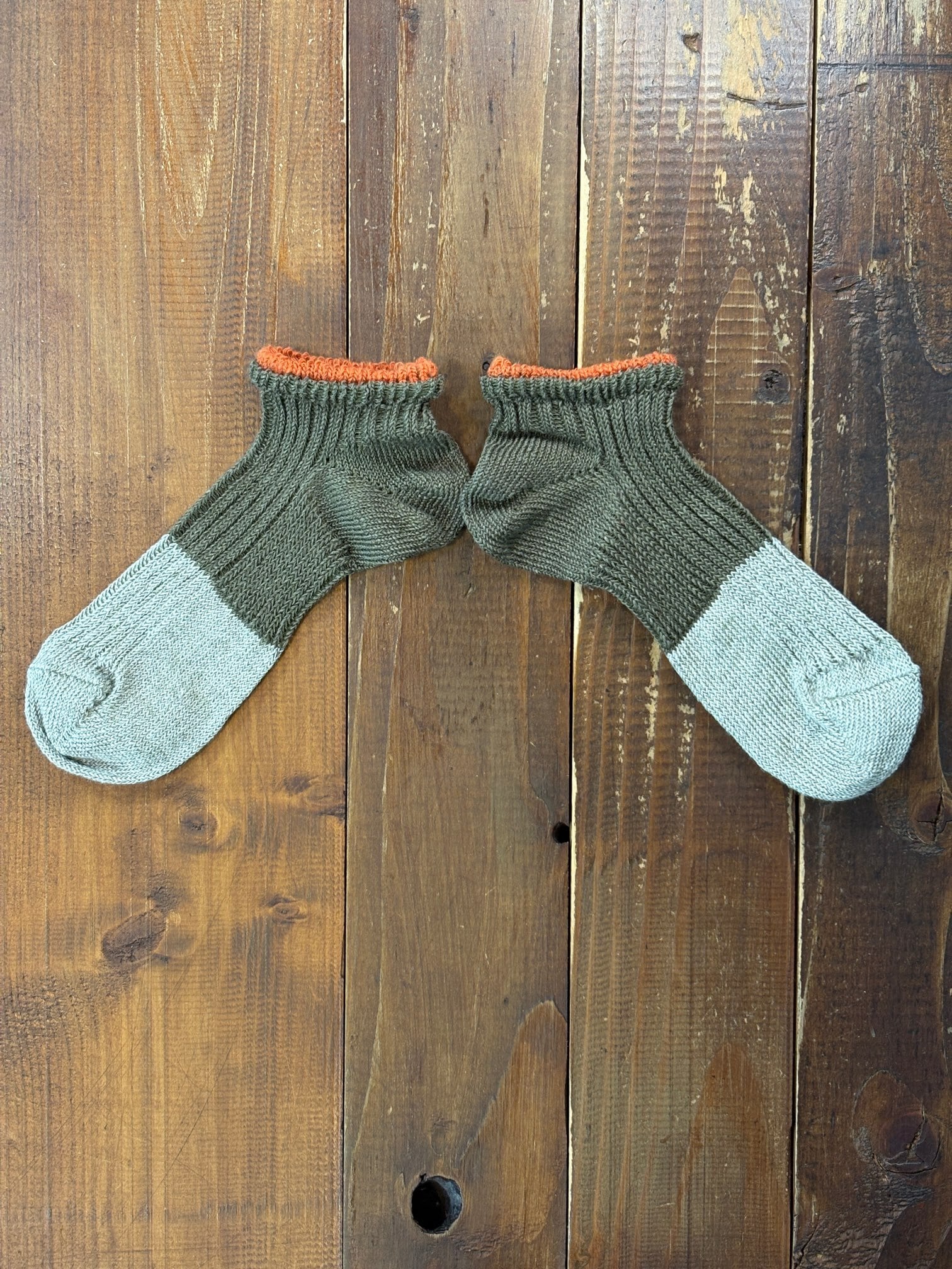 吸水性・吸湿性に優れた清涼感のあるリネンの糸をローゲージの編み機で編み立てたショートソックスです。