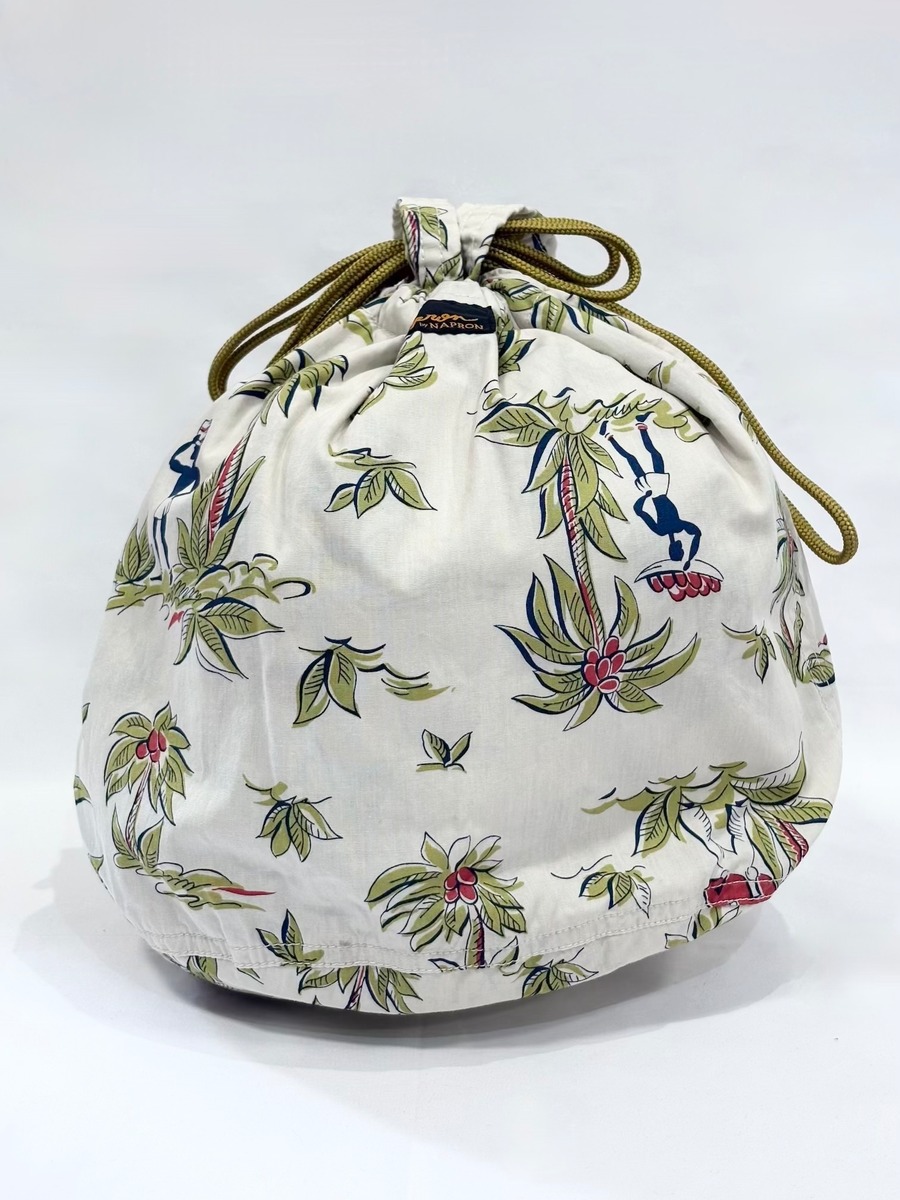 ヴィンテージのアロハシャツからインスパイアされた夏らしさ満載の生地を使用したブランド定番型の巾着バッグです。