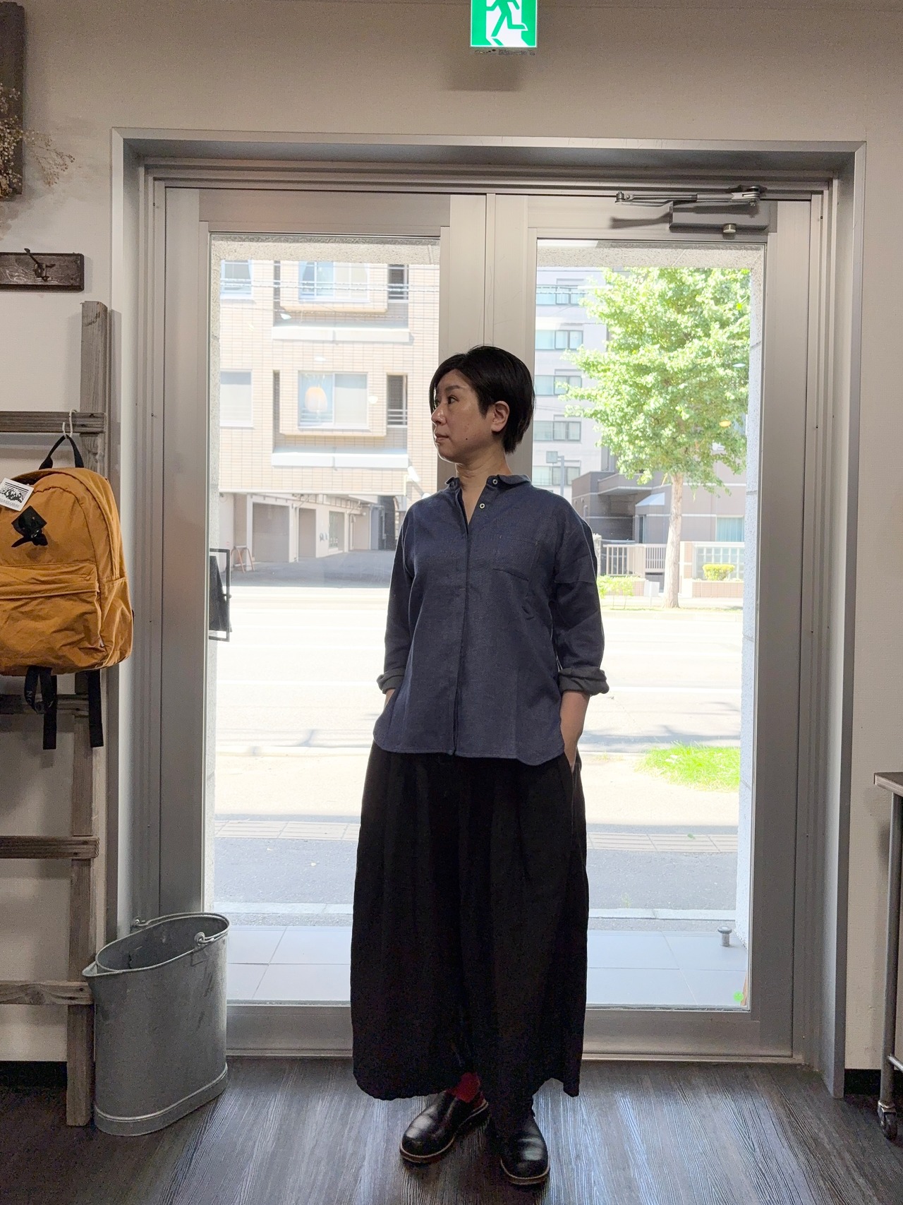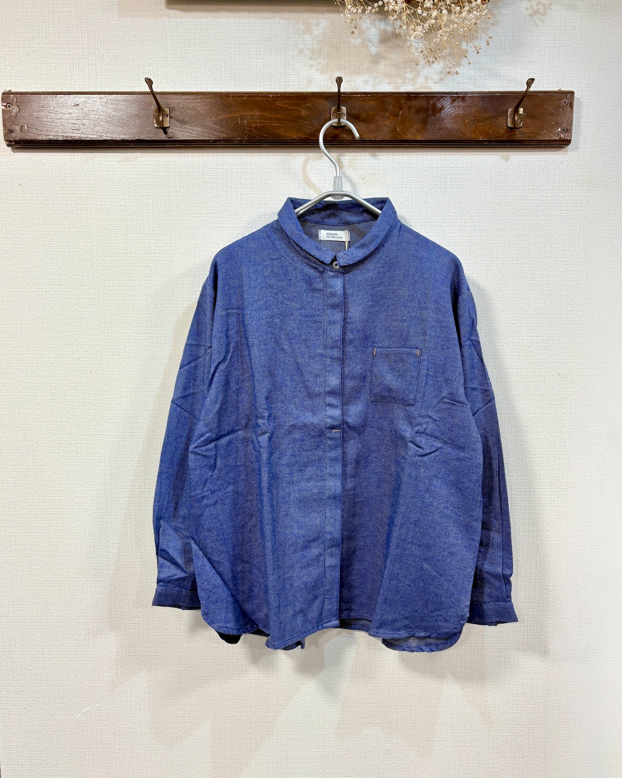 シサム工房・オーガニックコットンフランネル プチエリヒヨクシャツ・ブルー