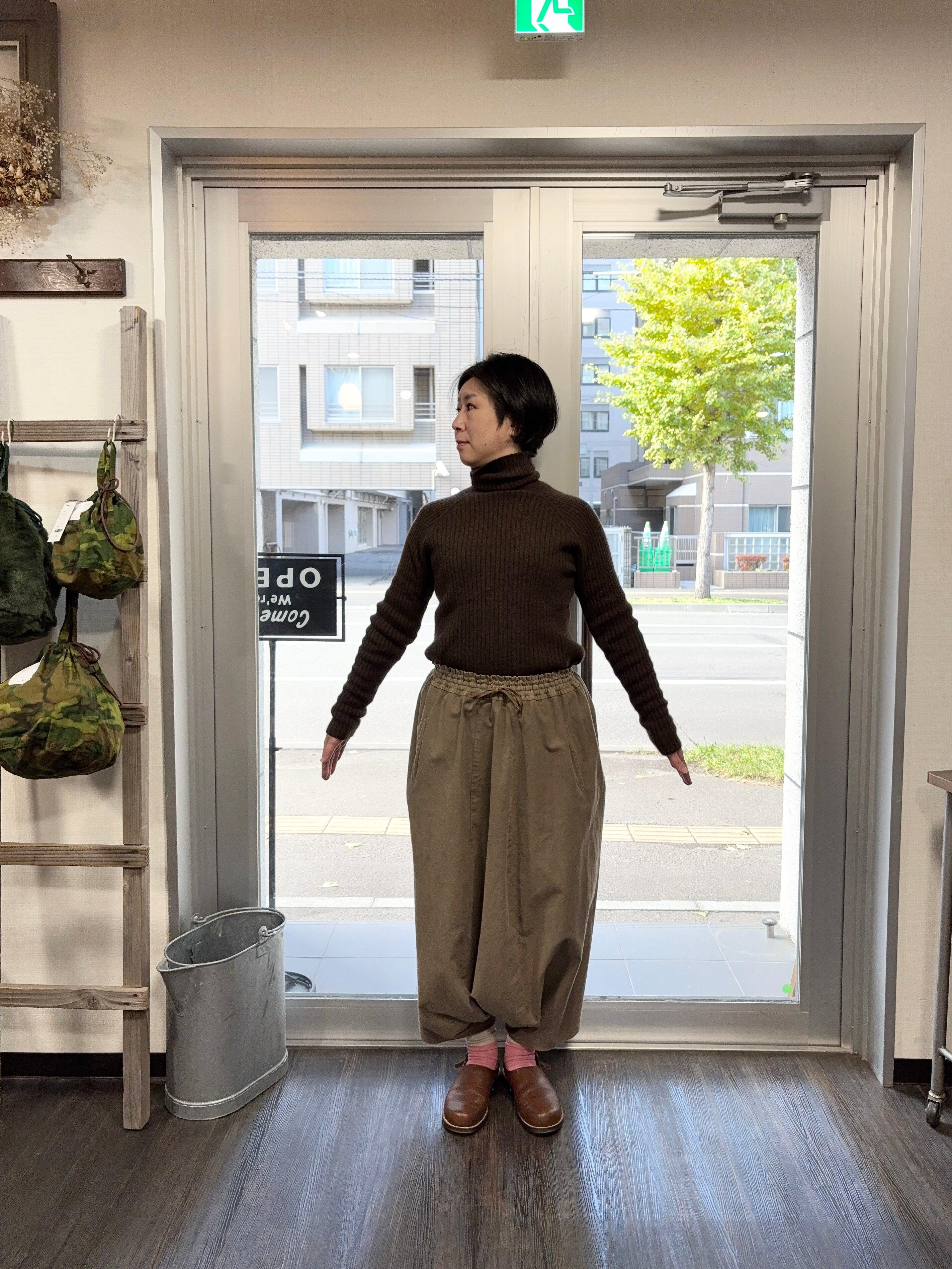 FACTORY・綿ネル サルエルパンツ・カーキ