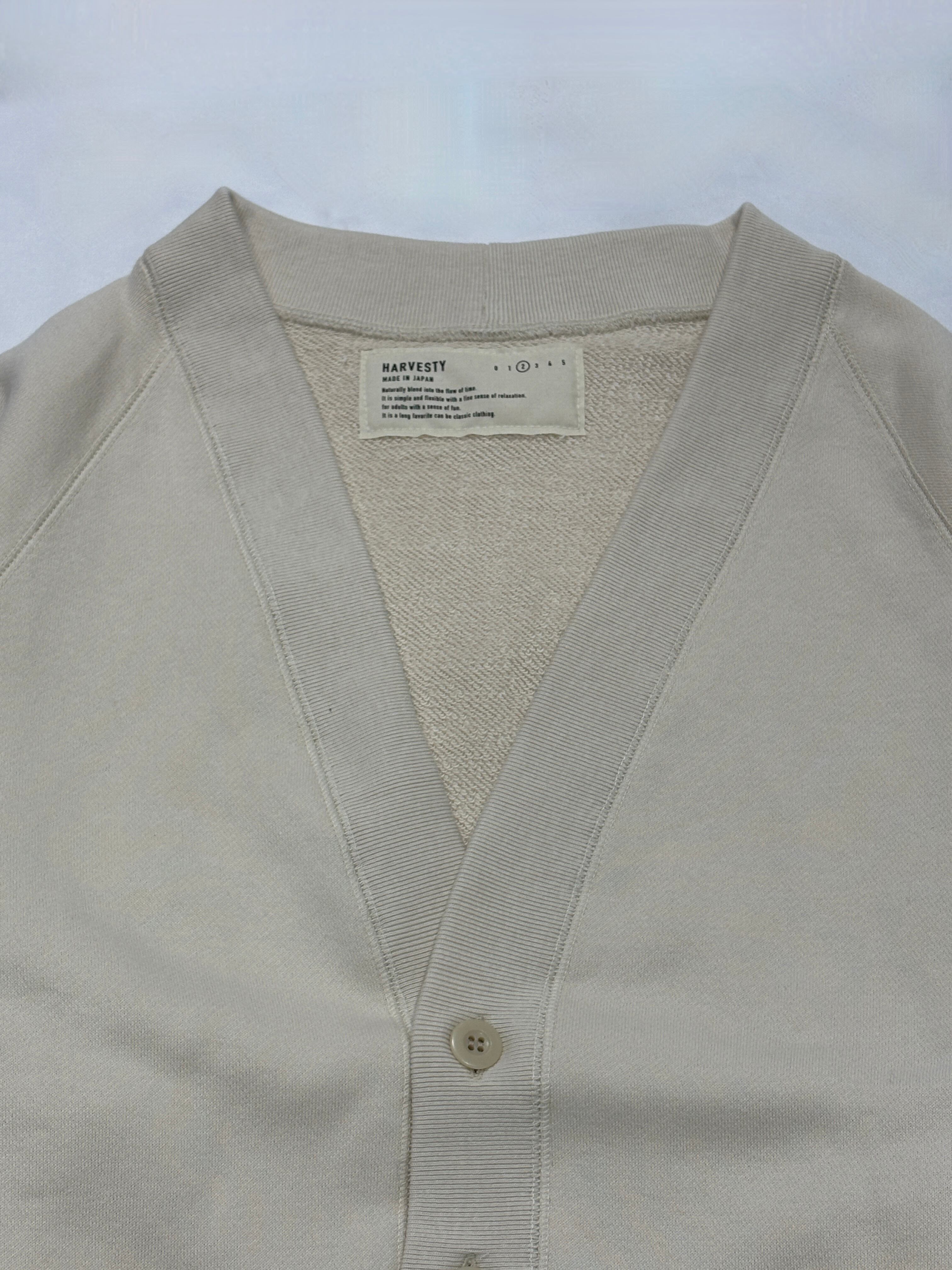 HARVESTY・裏毛スウェット カーディガン・エクリュ