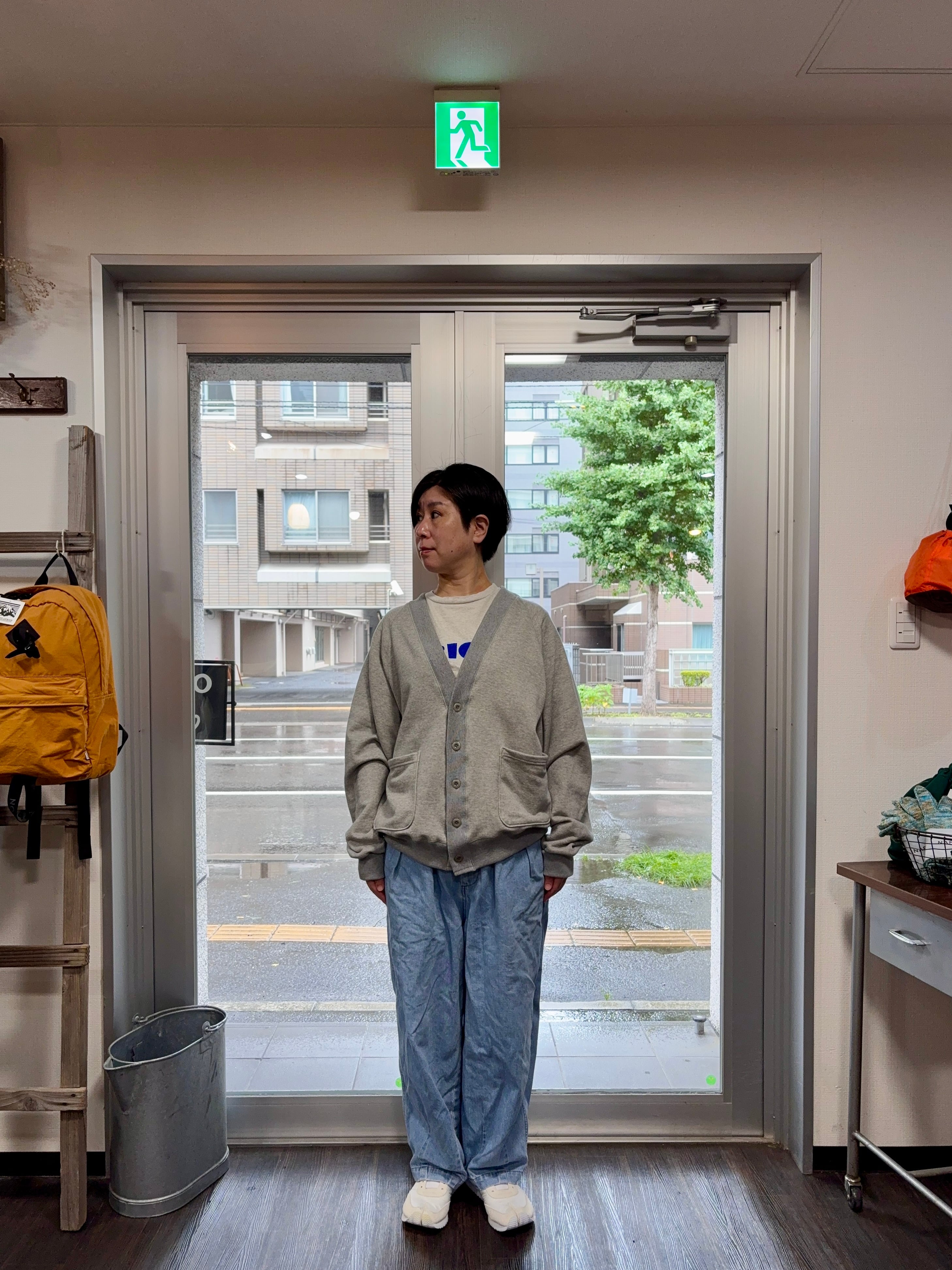 しっかりと厚みのある裏毛スウェット素材なので秋の初めはアウターとしての役割も果たすカーディガンです。