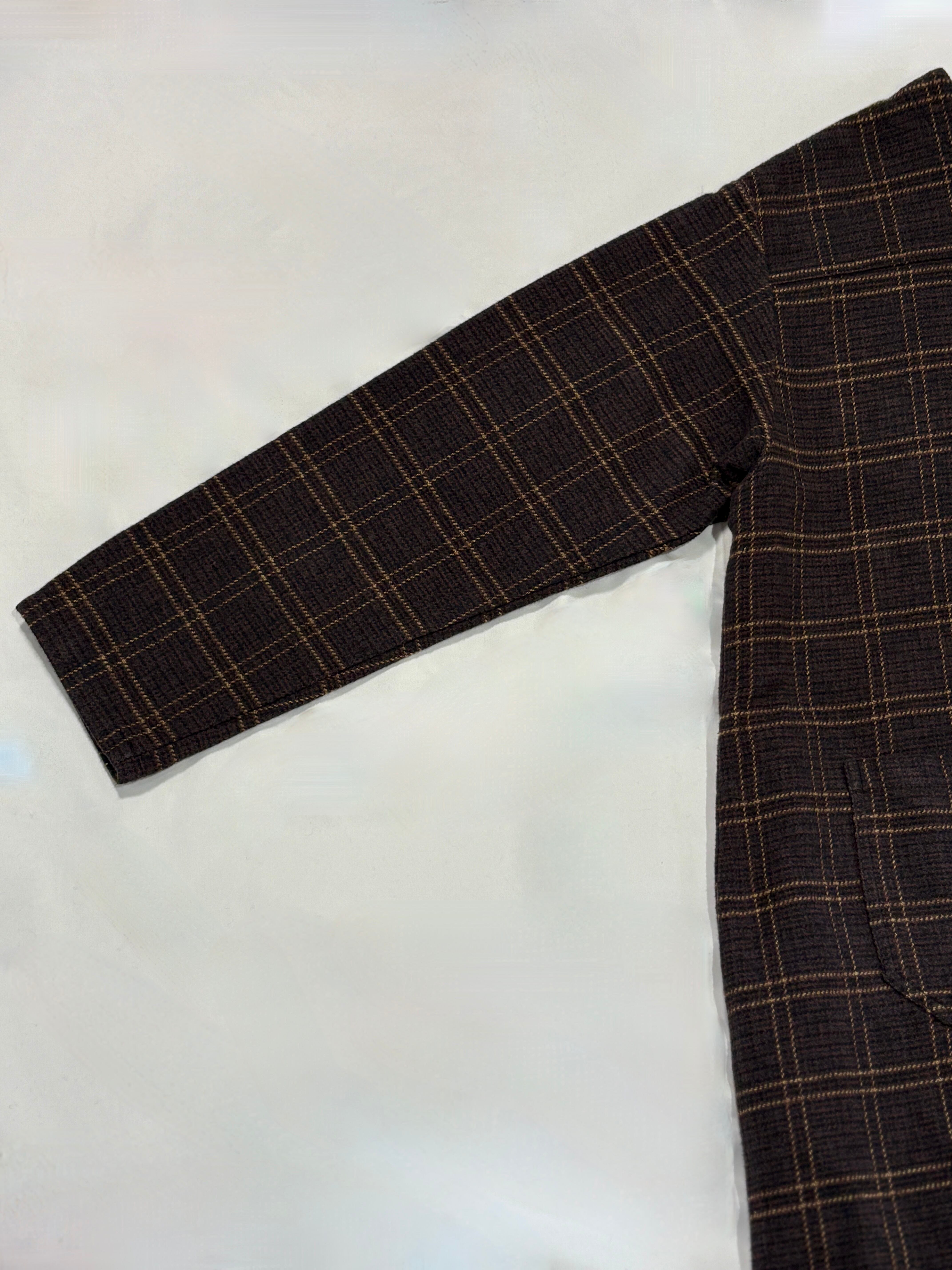 生地は秋冬シーズンらしい温もりのあるコットンツイードチェックを使用しています。