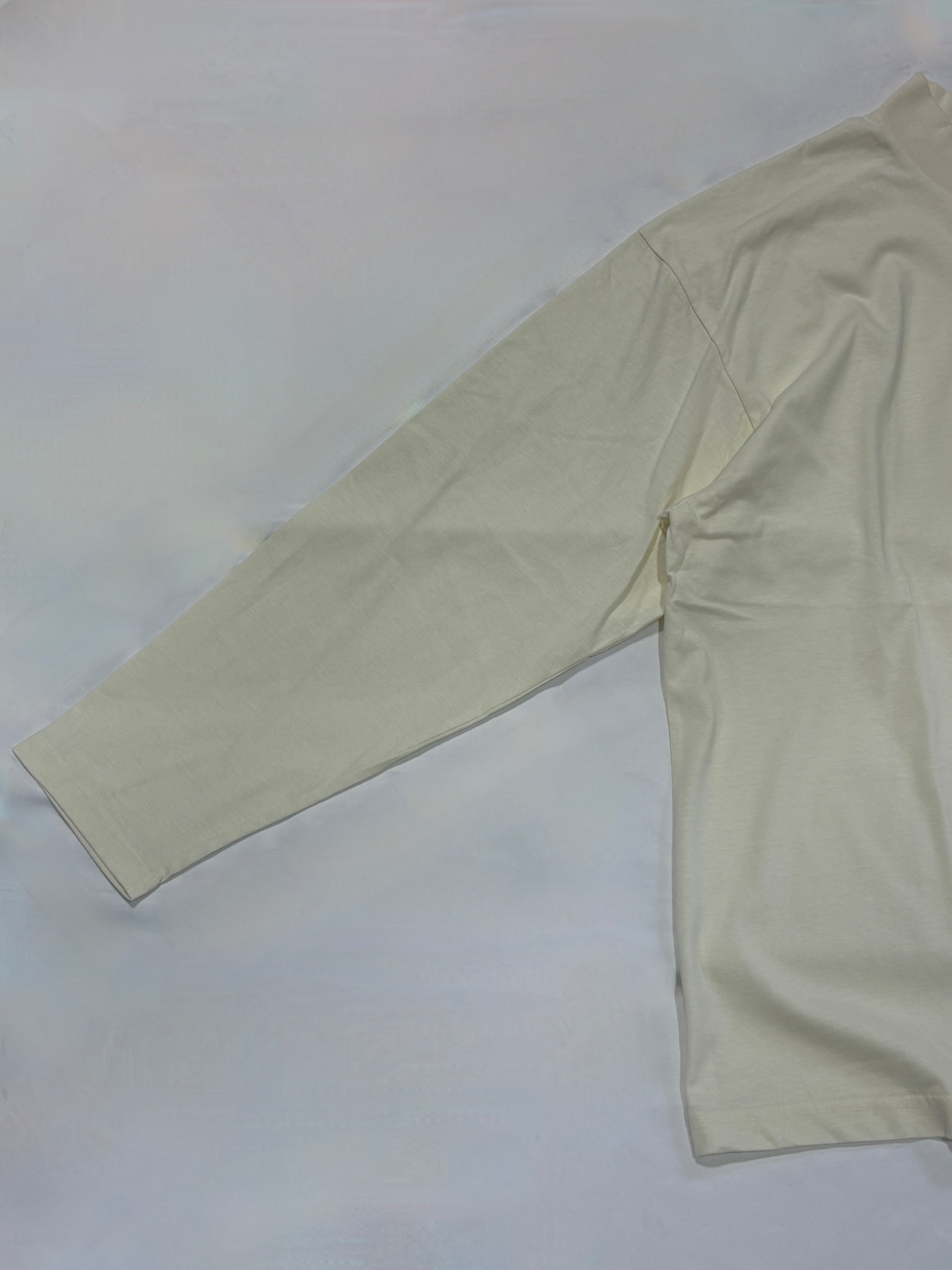 単体で様になるオーバーサイズの長袖モックネックTシャツです。