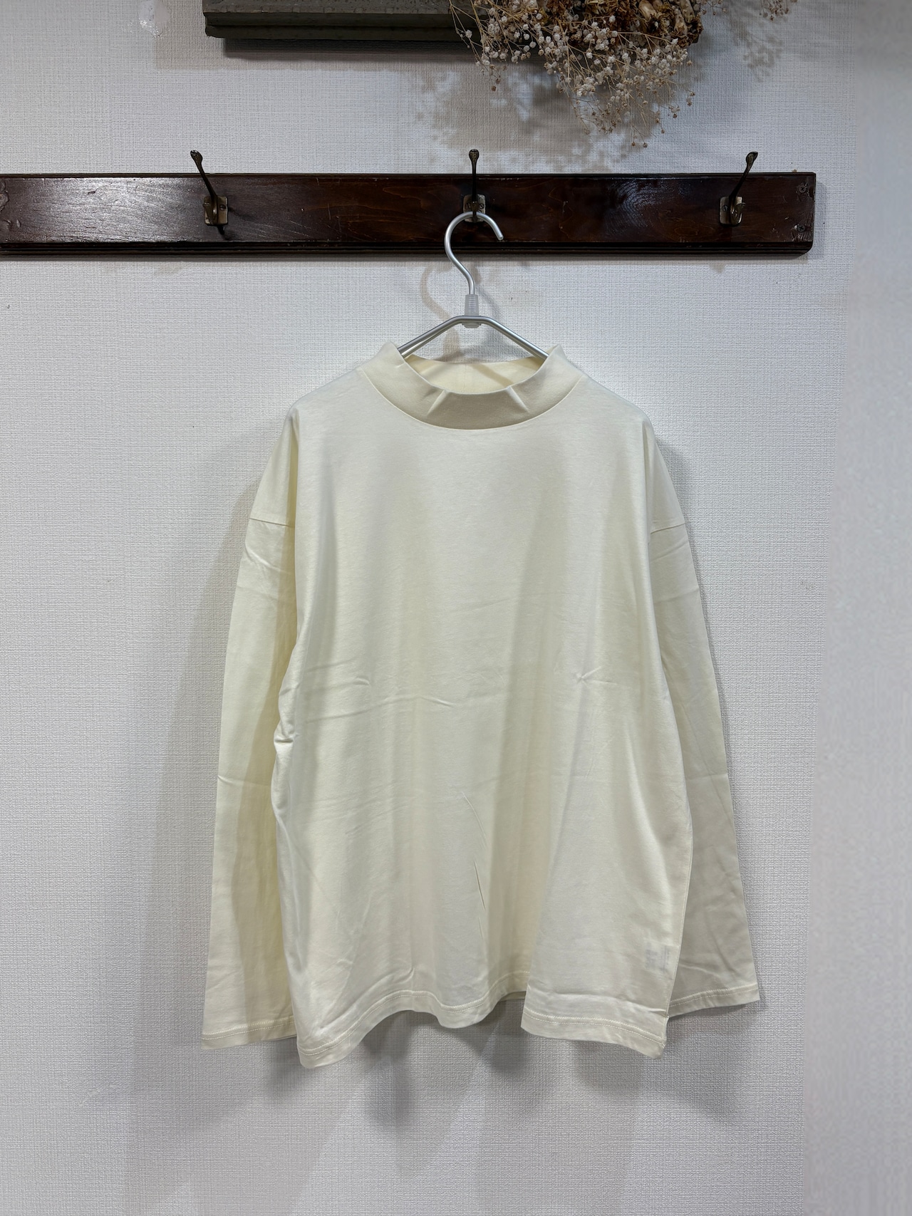 HARVESTY・オーガニックコットン天竺 長袖モックネックT・エクリュ
