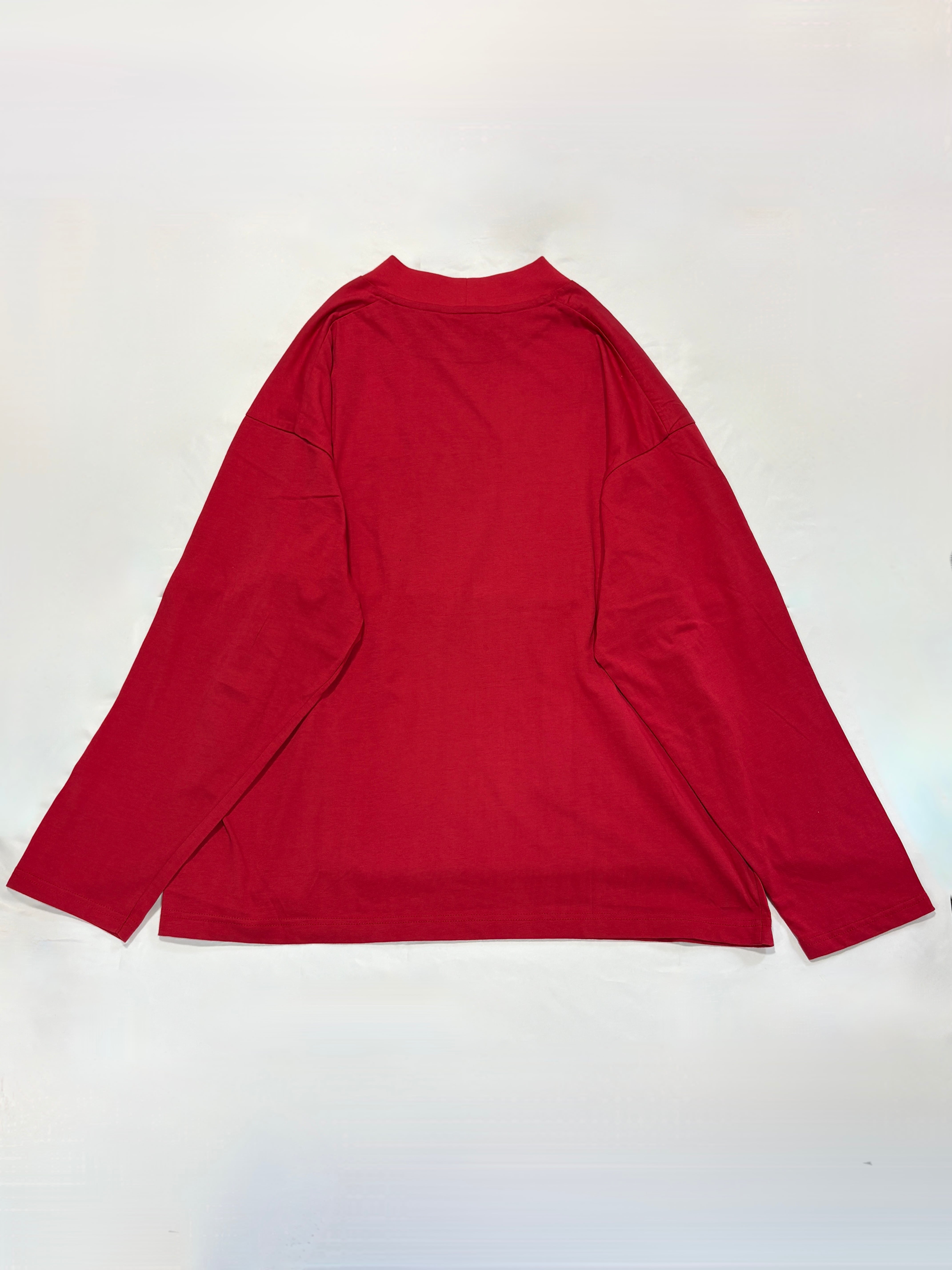 HARVESTY・オーガニックコットン天竺 長袖モックネックT・レッド