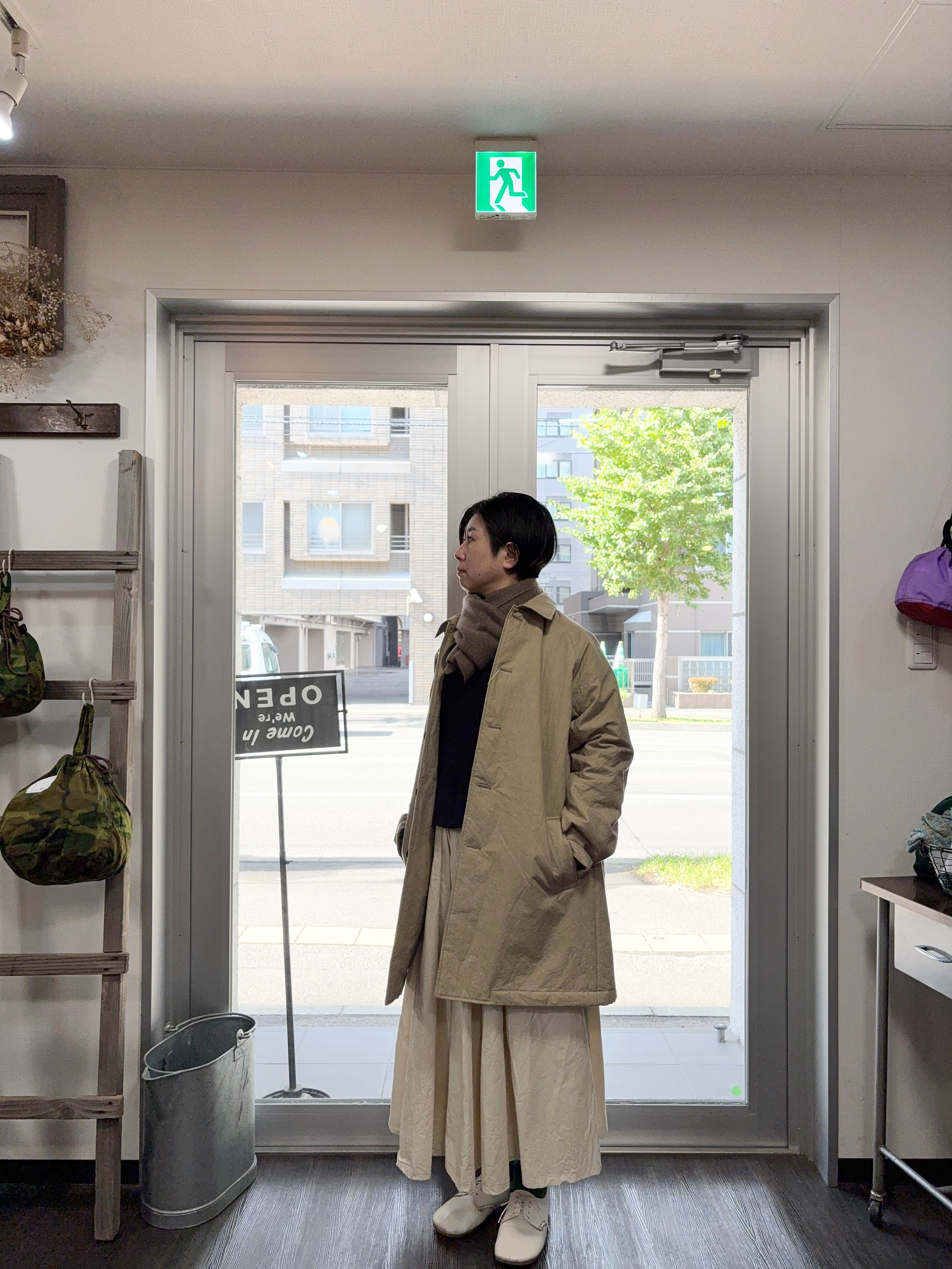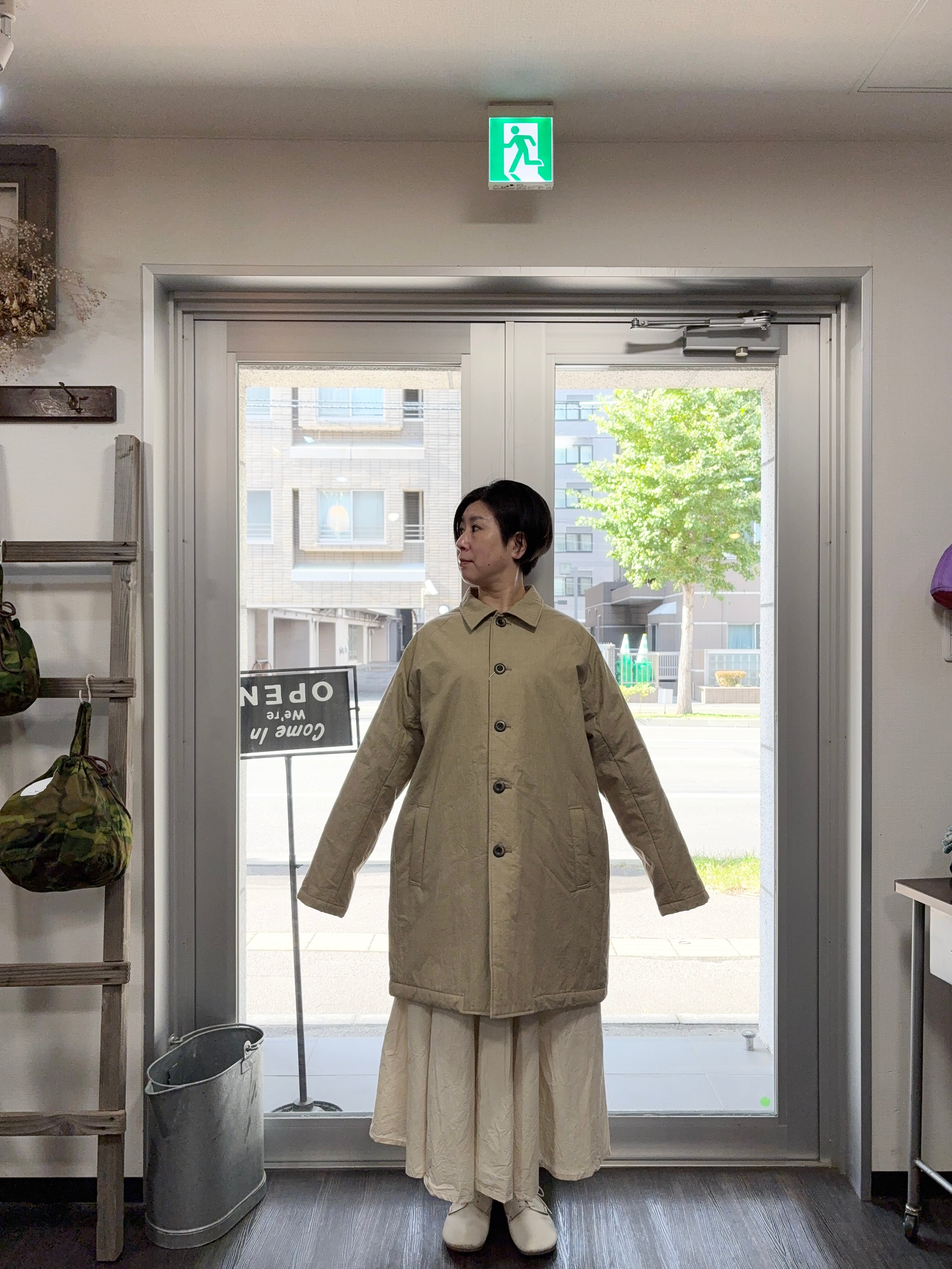 デザインは程よいオーバーシルエットにしていますが癖を押さえ、トレンドに左右されなず日常的にも着やすいステンカラーのスタンダードな雰囲気に仕上げています。
