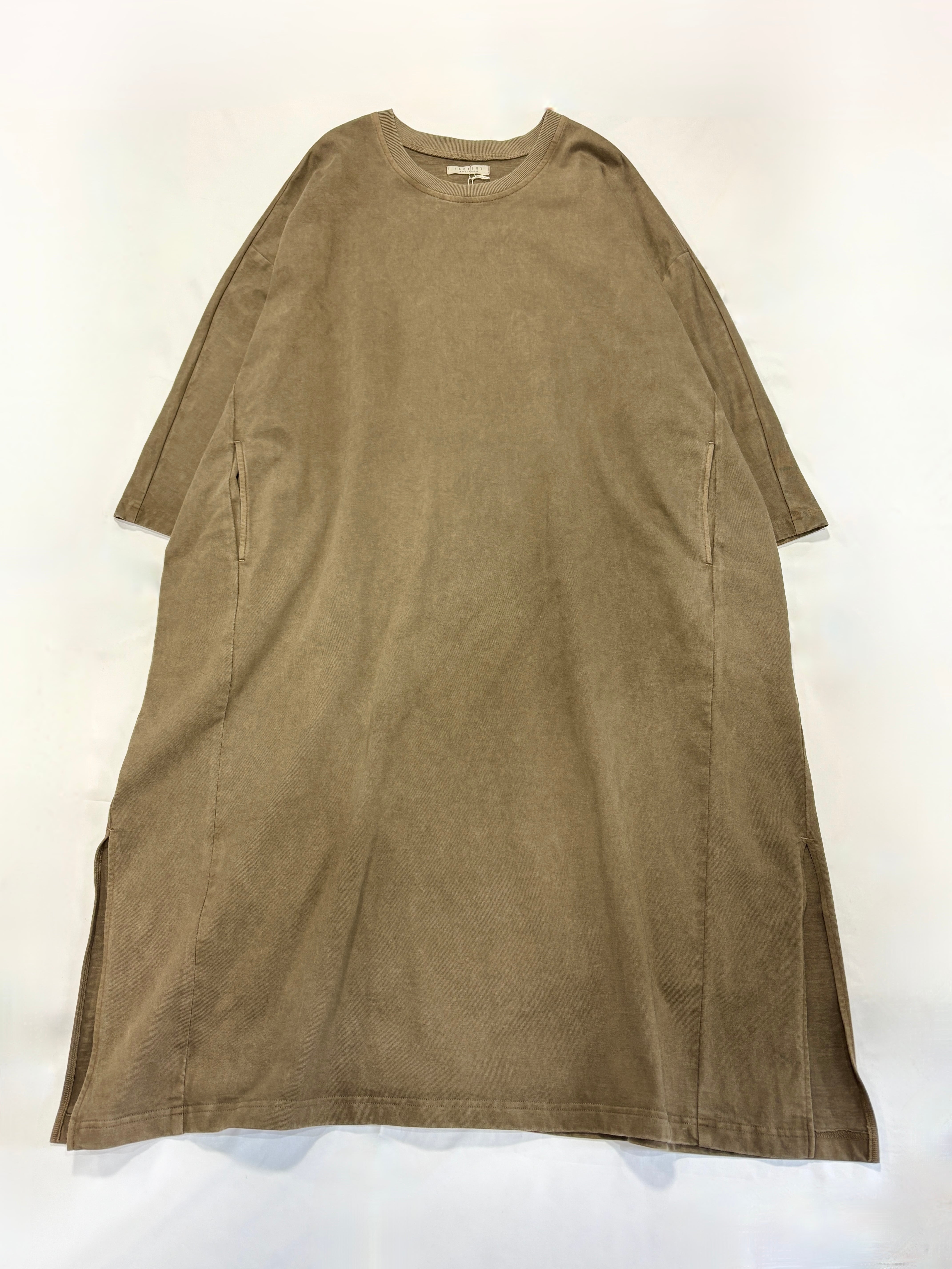 FACTORY・綿カットソー ワイドトレーナーワンピース・カーキ