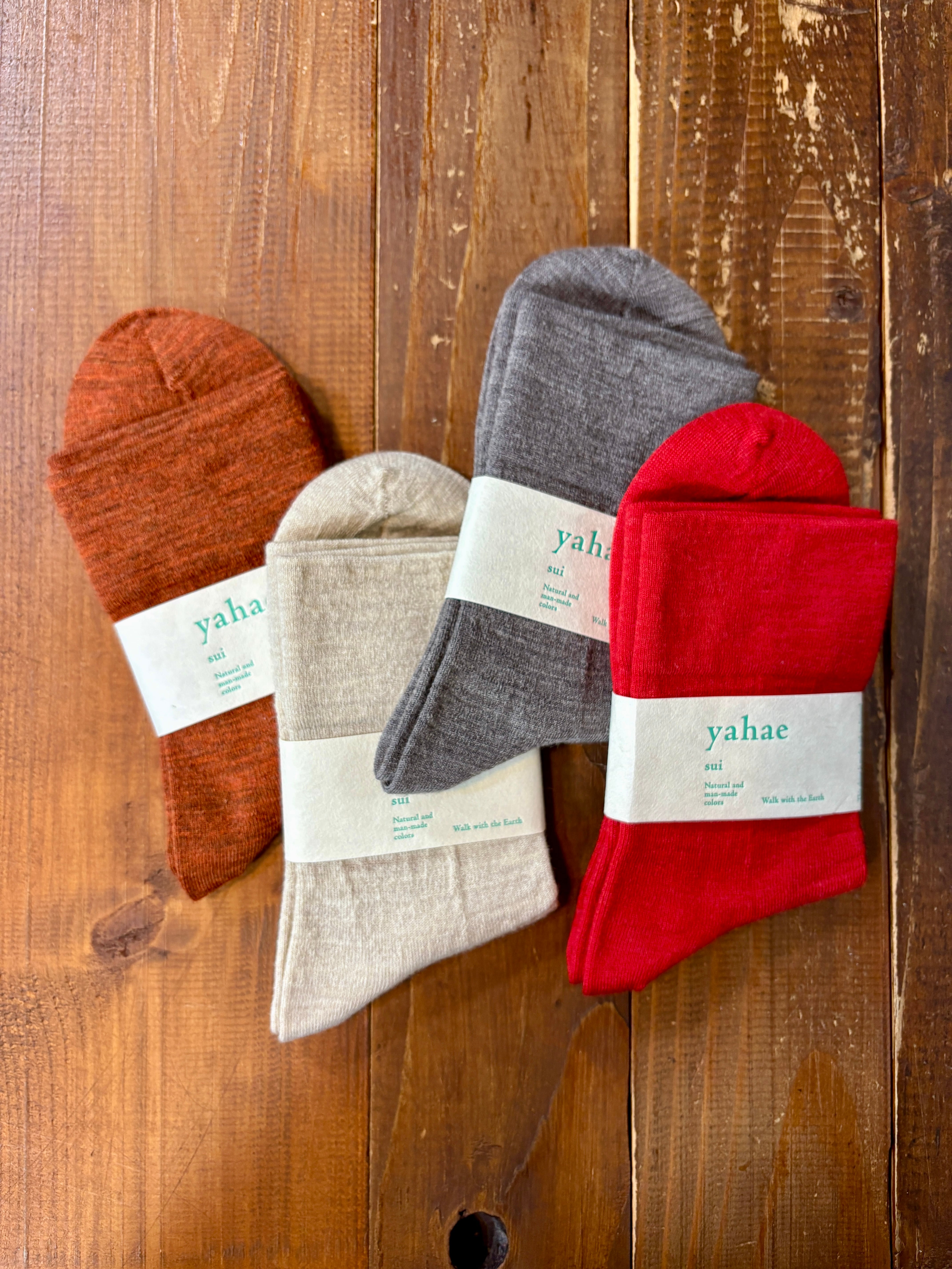 滑らかで肌触りの良い梳毛ウールを使用し、薄手に編み立てたゴムなしソックスです。