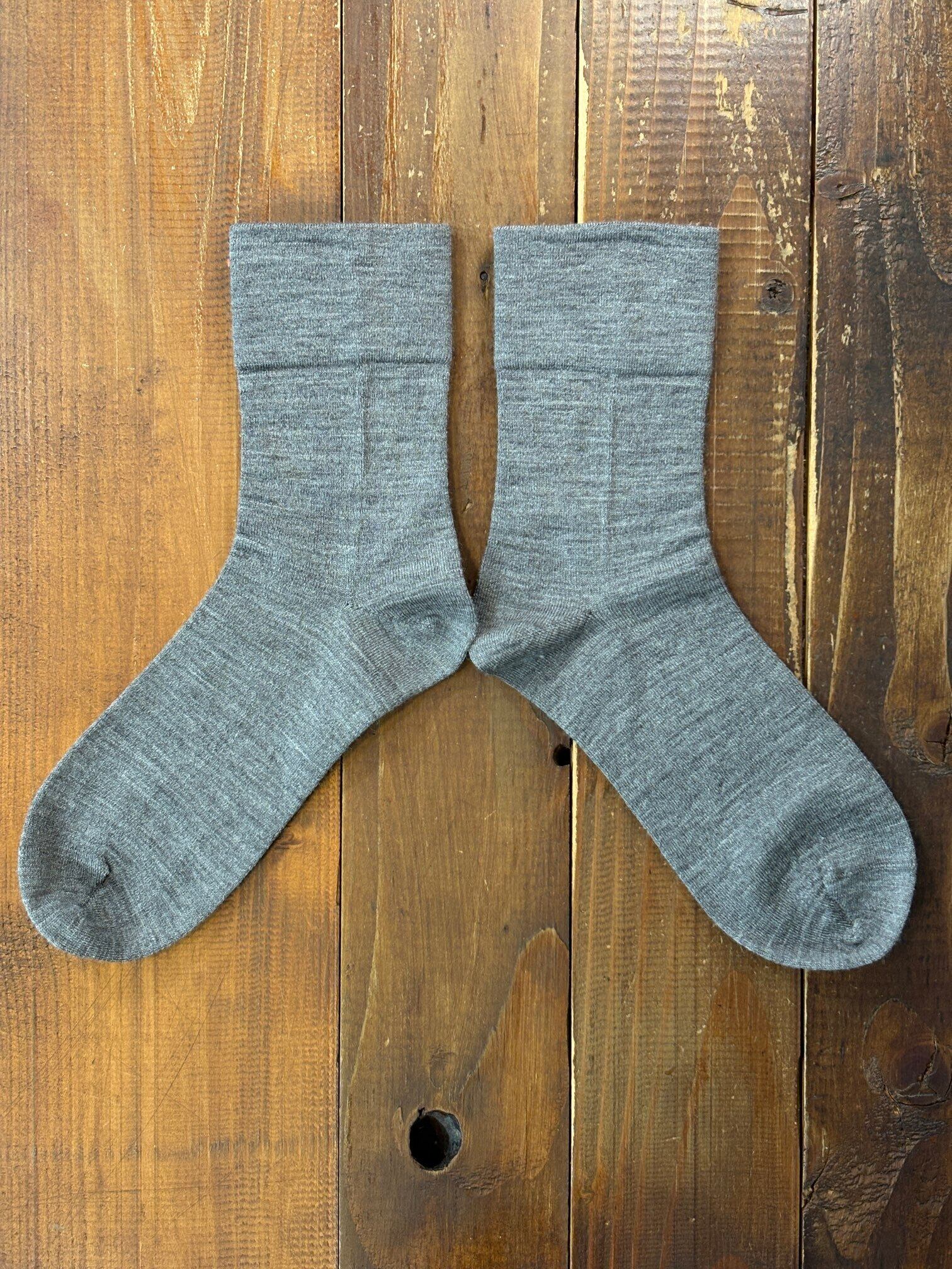 yahae・Wool Rubber Free Plain Socks・Grey
