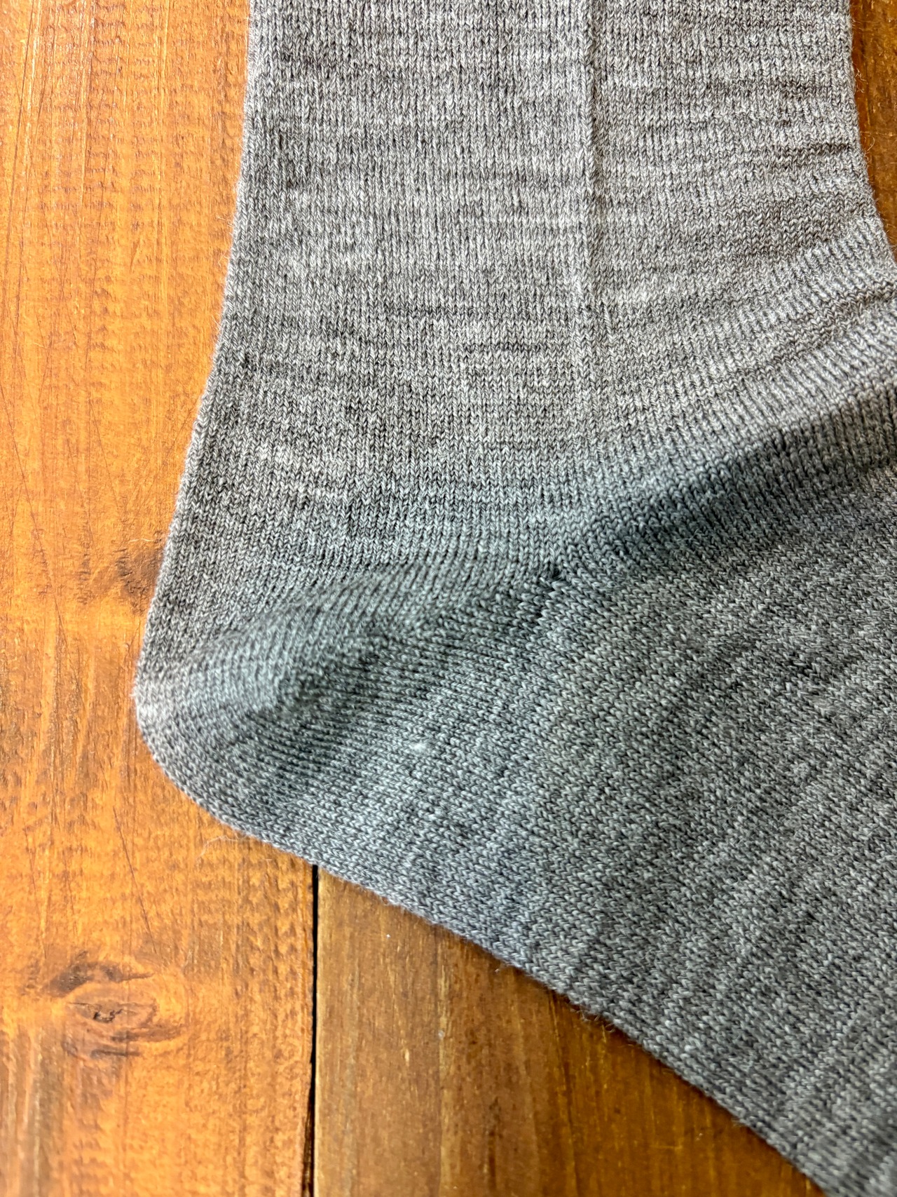 滑らかで肌触りの良い梳毛ウールを使用し、薄手に編み立てたゴムなしソックスです。