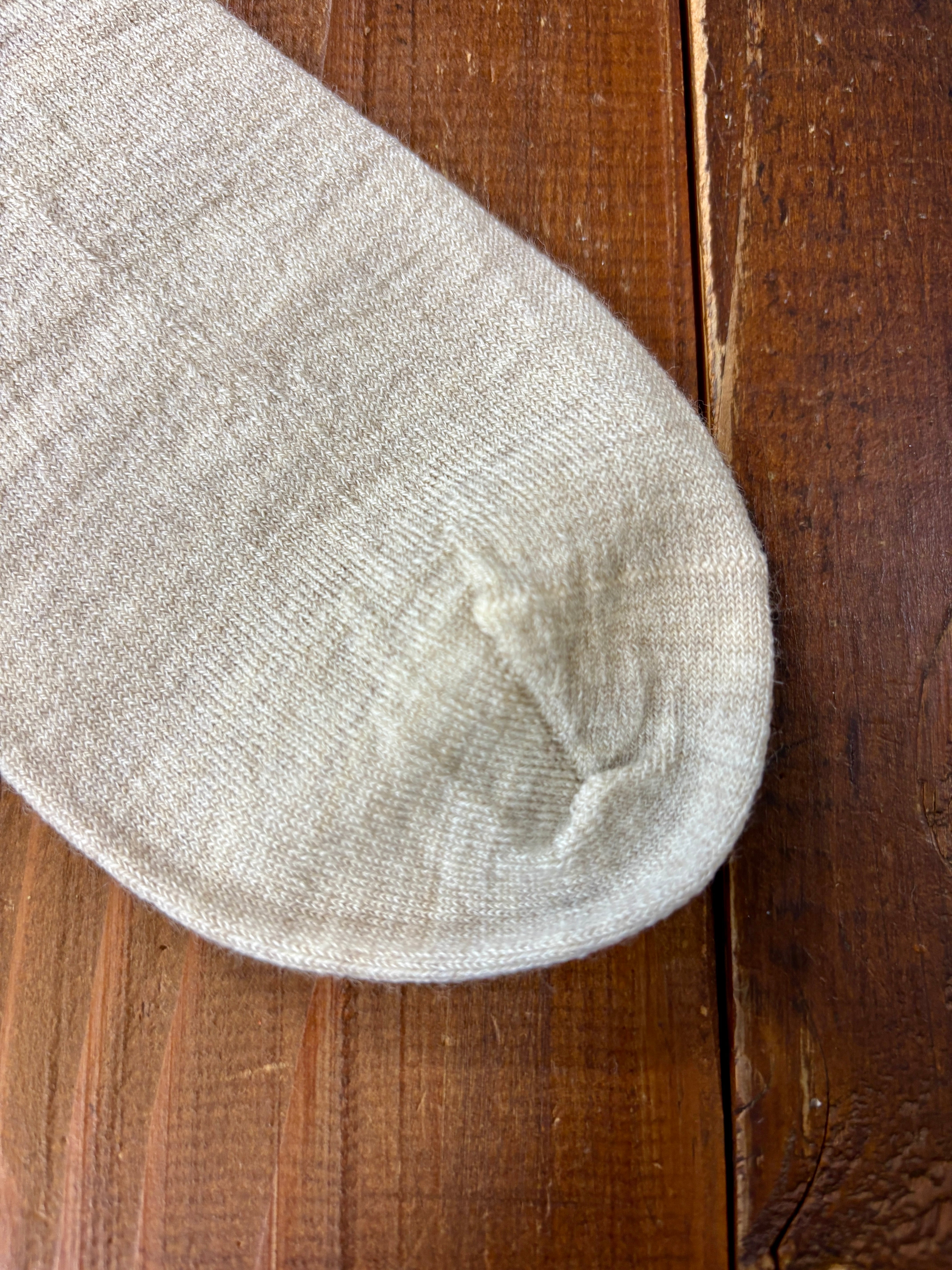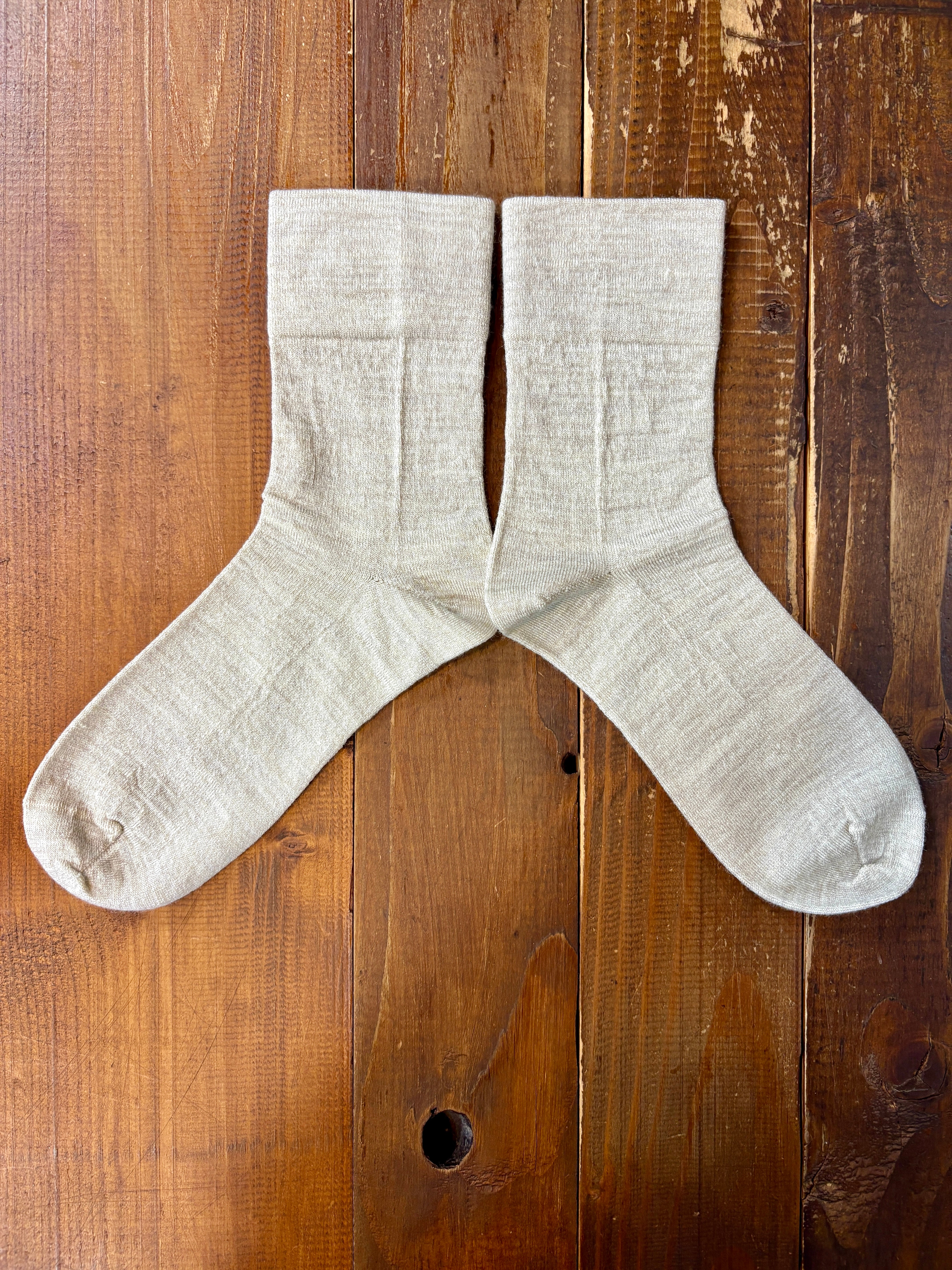滑らかで肌触りの良い梳毛ウールを使用し、薄手に編み立てたゴムなしソックスです。