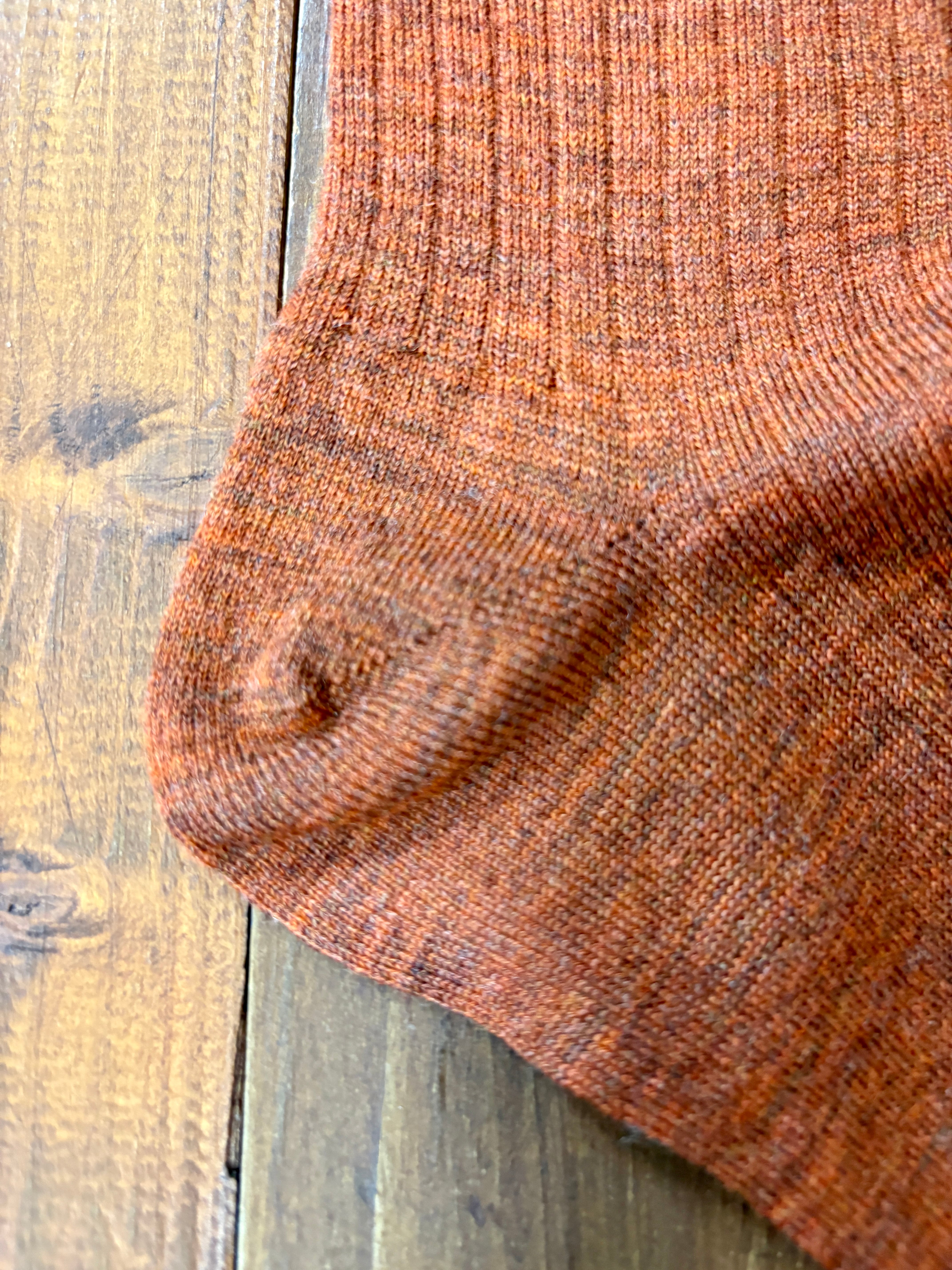 滑らかで肌触りの良い梳毛ウールを使用して編み立てたハイソックスです。