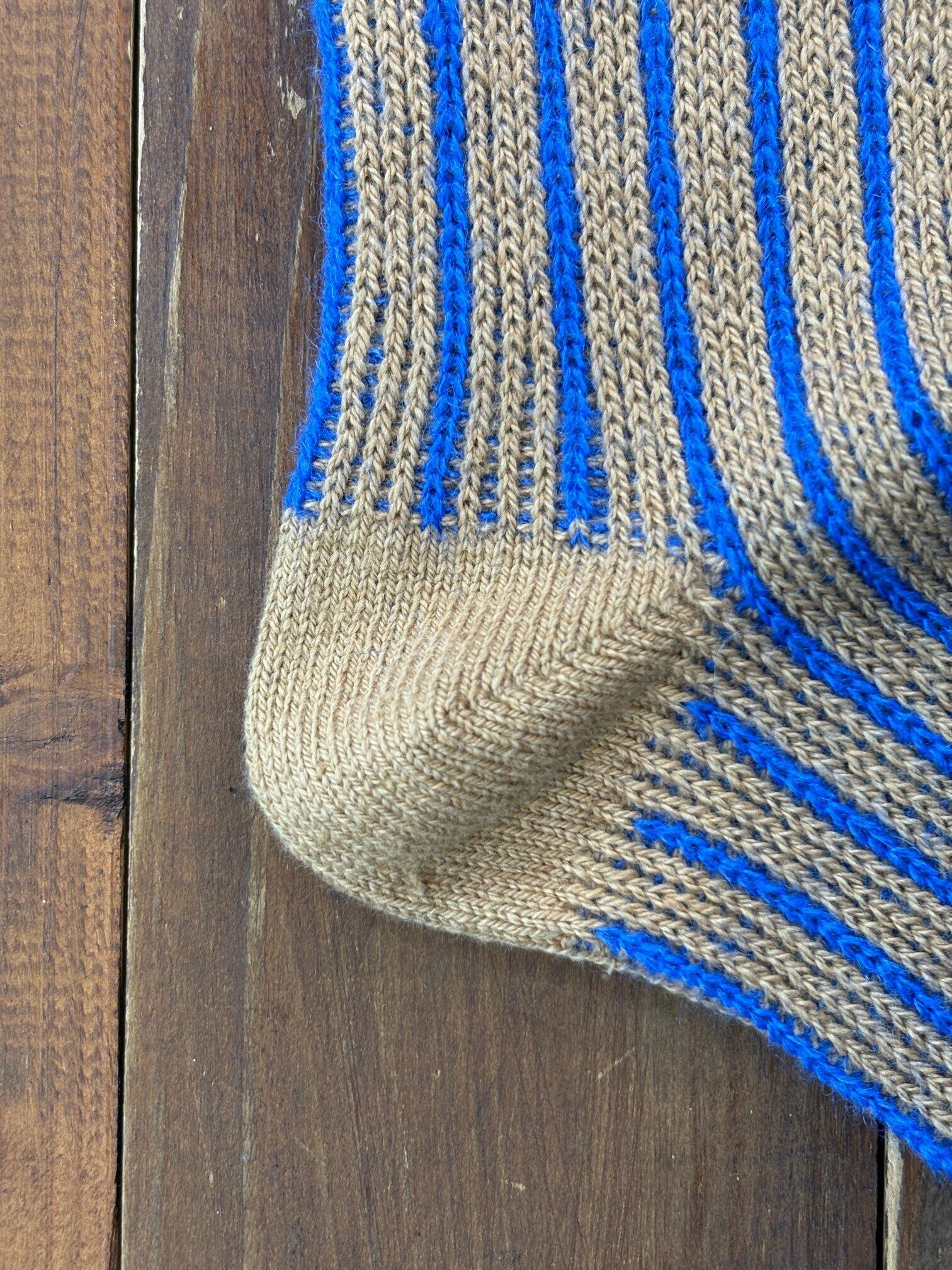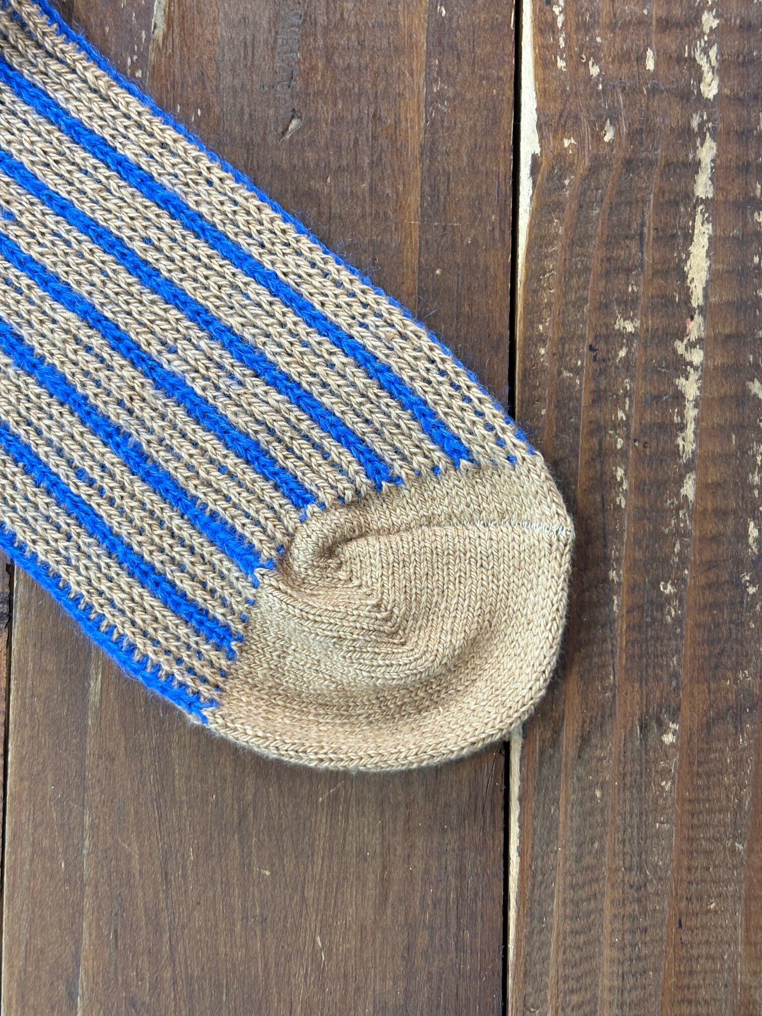 ベースにオリジナル染色を施したオーガニックコットンを使用し、ストライプ柄にモヘアをあしらったソックスです。