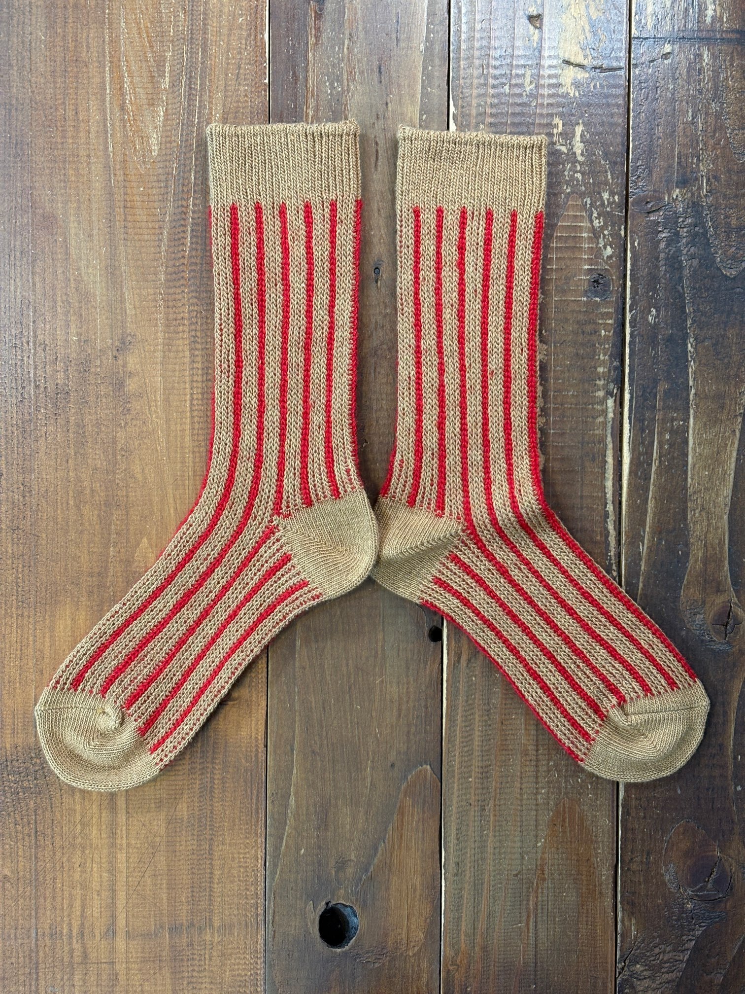 yahae・Organic Cotton Mohair Stripes Socks・Red