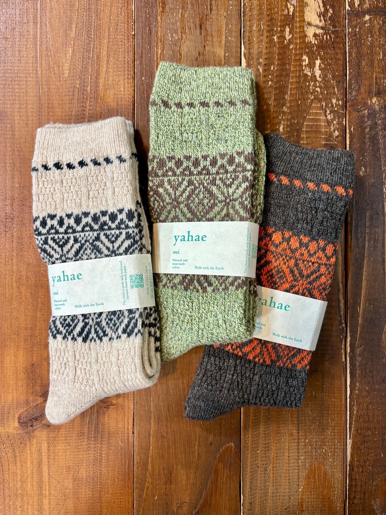 yahae・Wool Organic Cotton Snow Pattern Socks・Brown