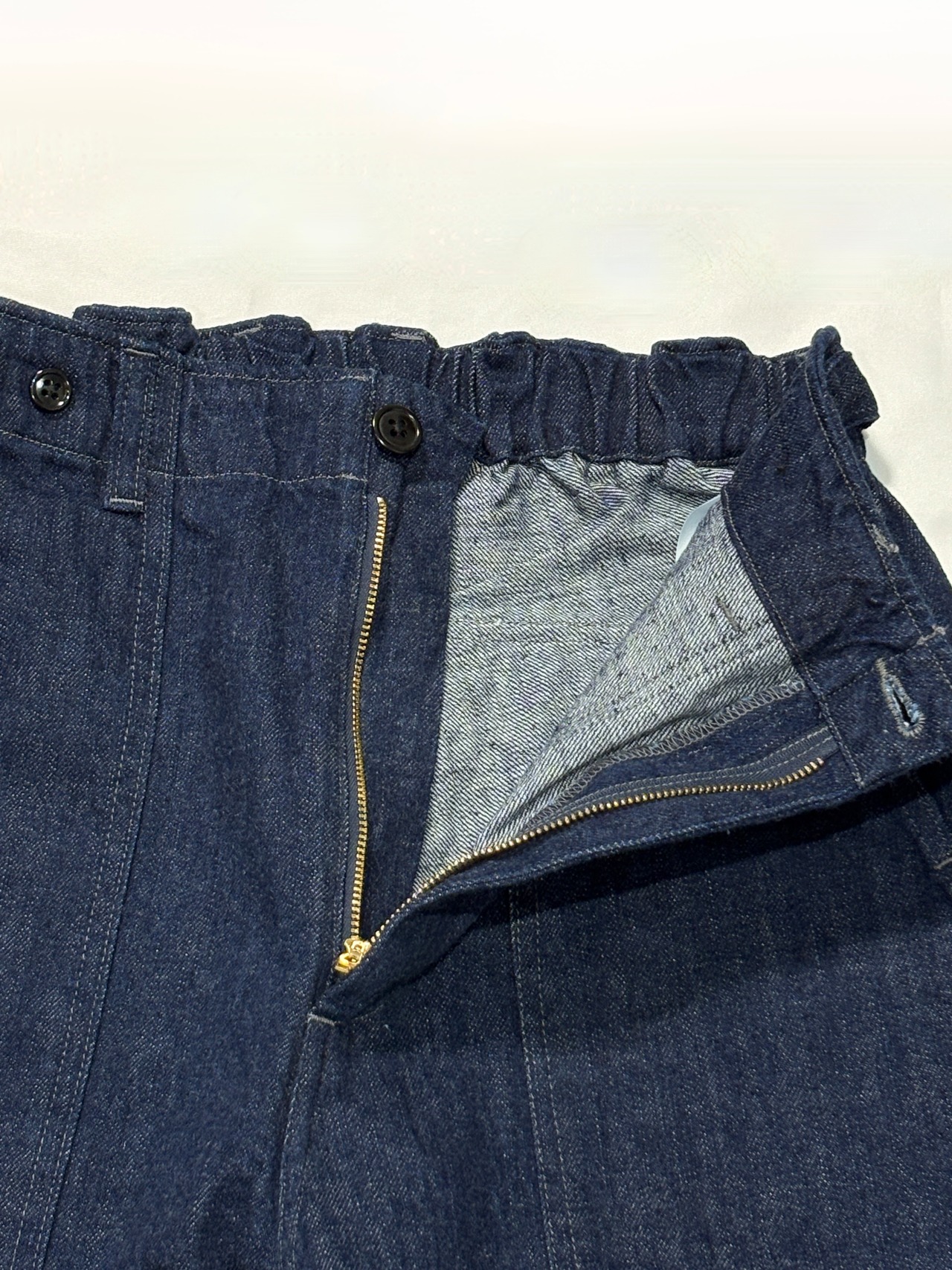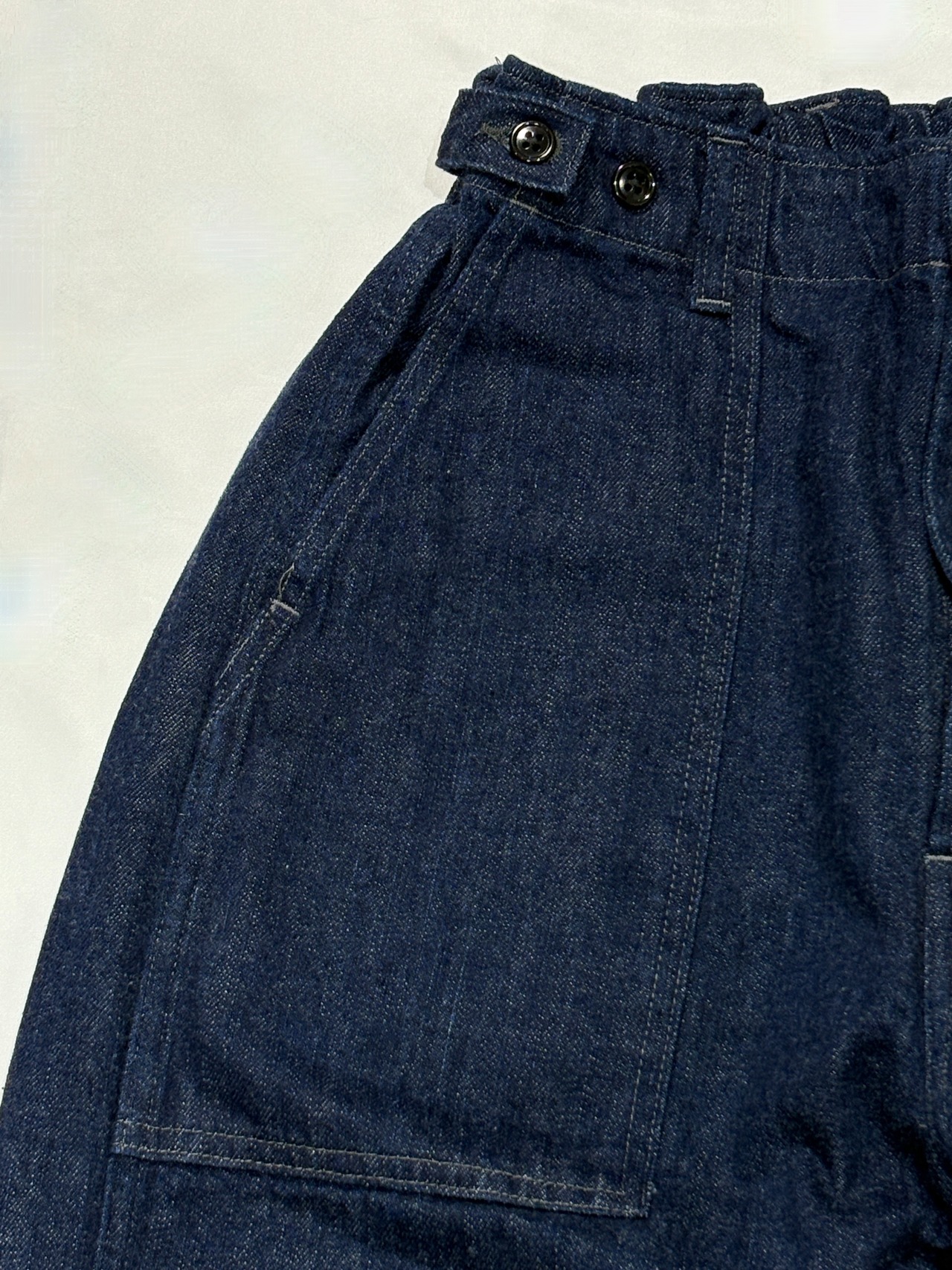 縦糸にリバイバルコットン(落ち綿)を使用したネップ糸で織られた甘織生地は風豊かで、しっかりと質感がありながらも柔らかく履き心地がとても良いです。