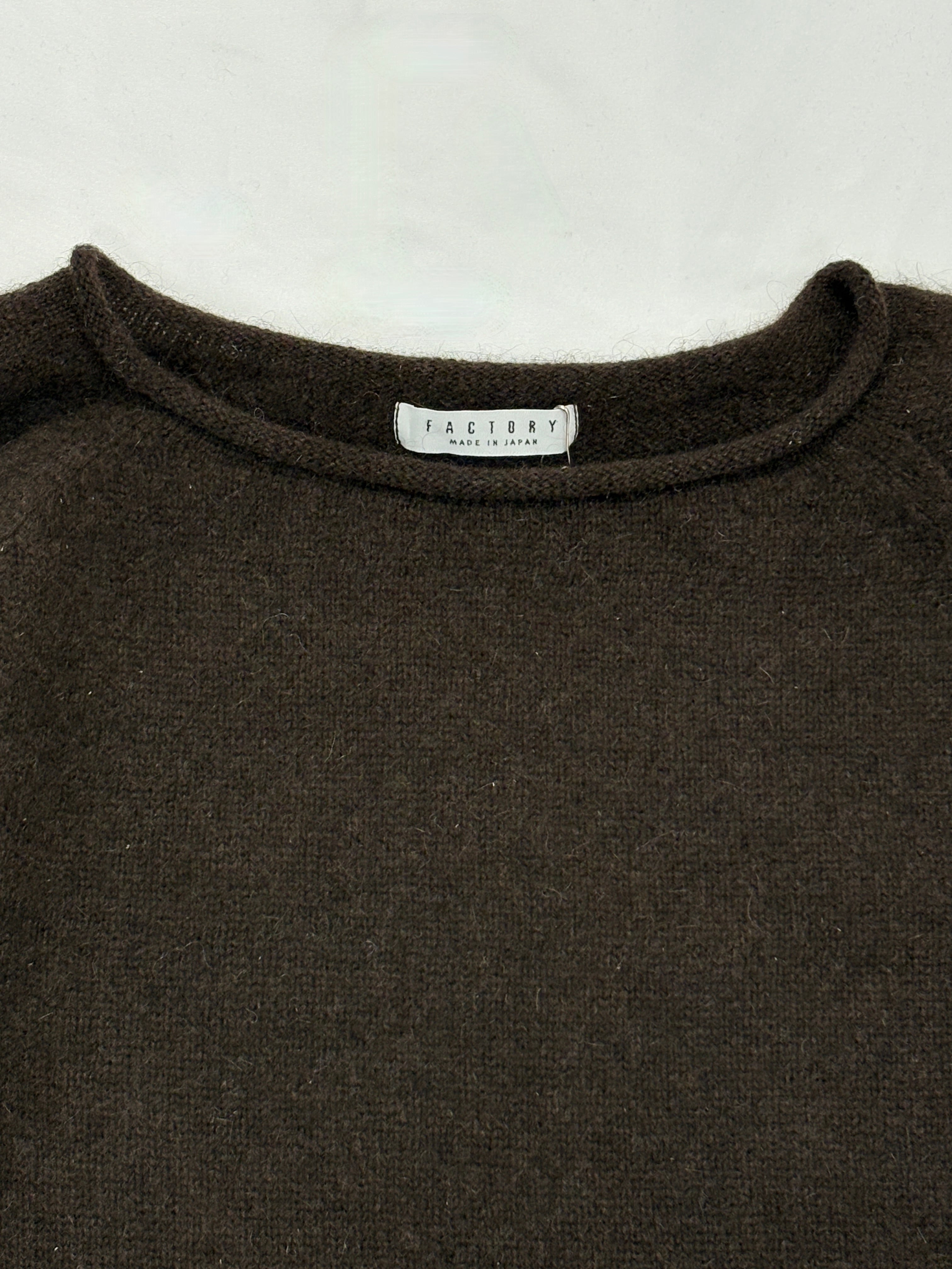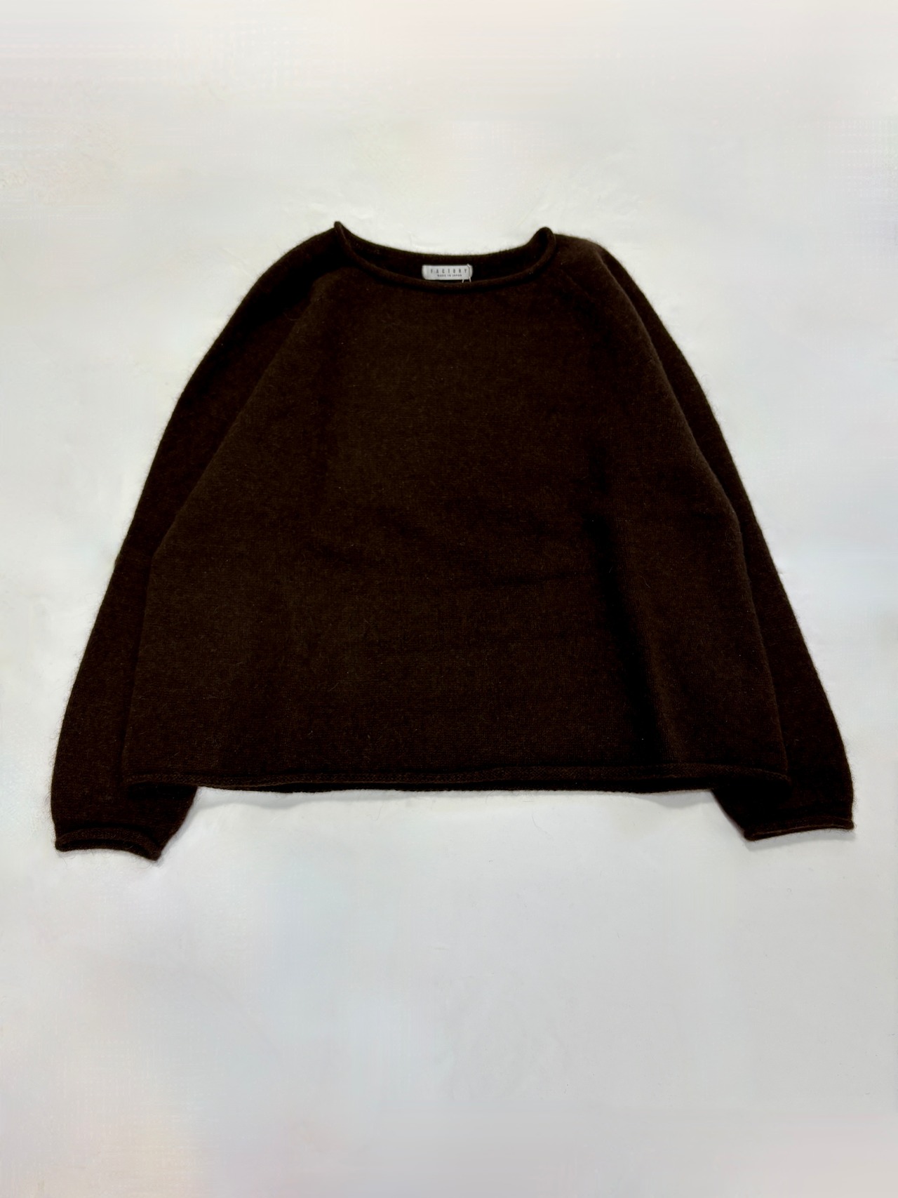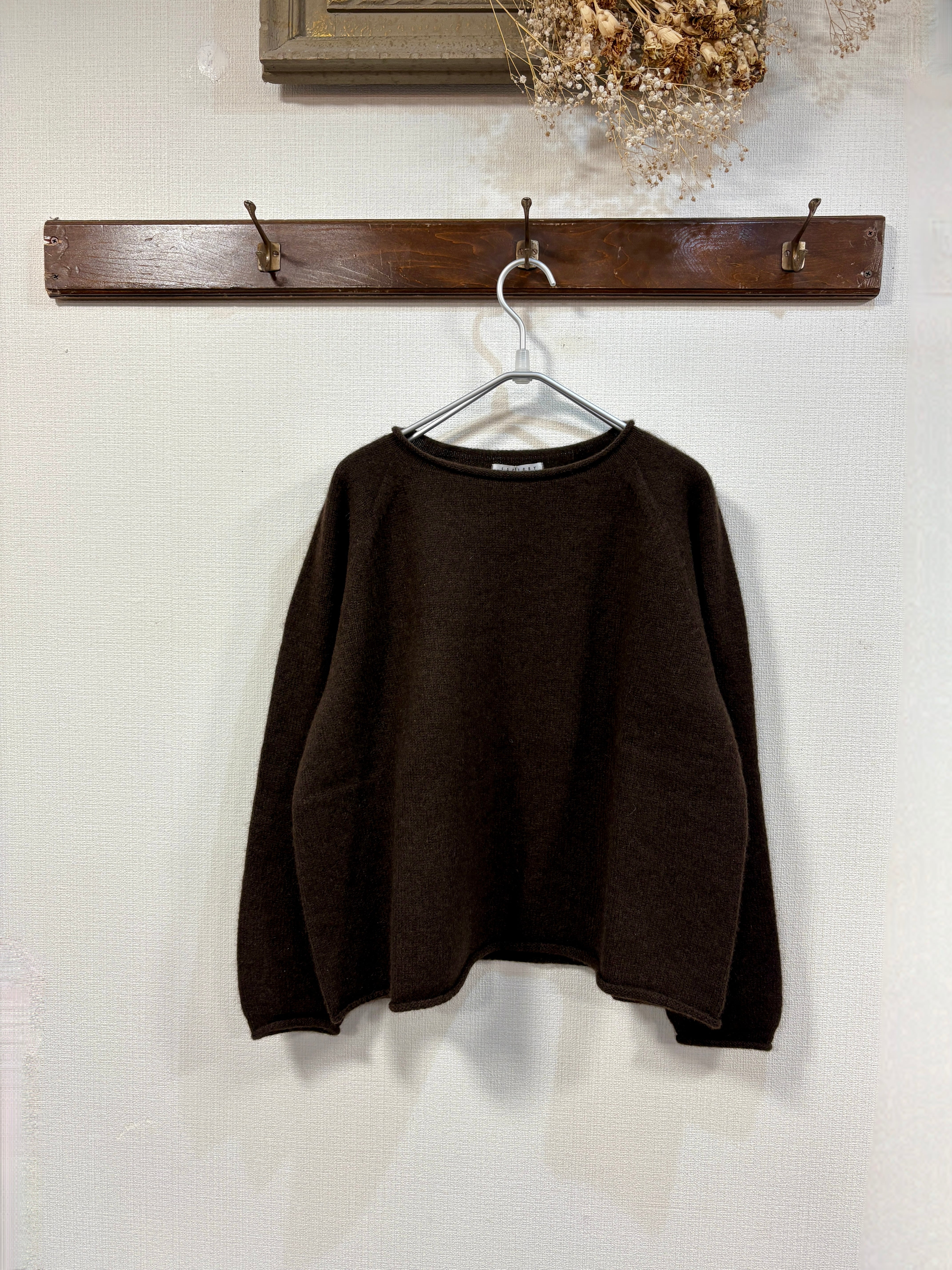 すっきりとしたボートネックなのでセーターでありながらカットソーのような気楽な雰囲気で着られ、またシャツやタートルネックインナーと嵩張らずに重ね着をしていただけます。