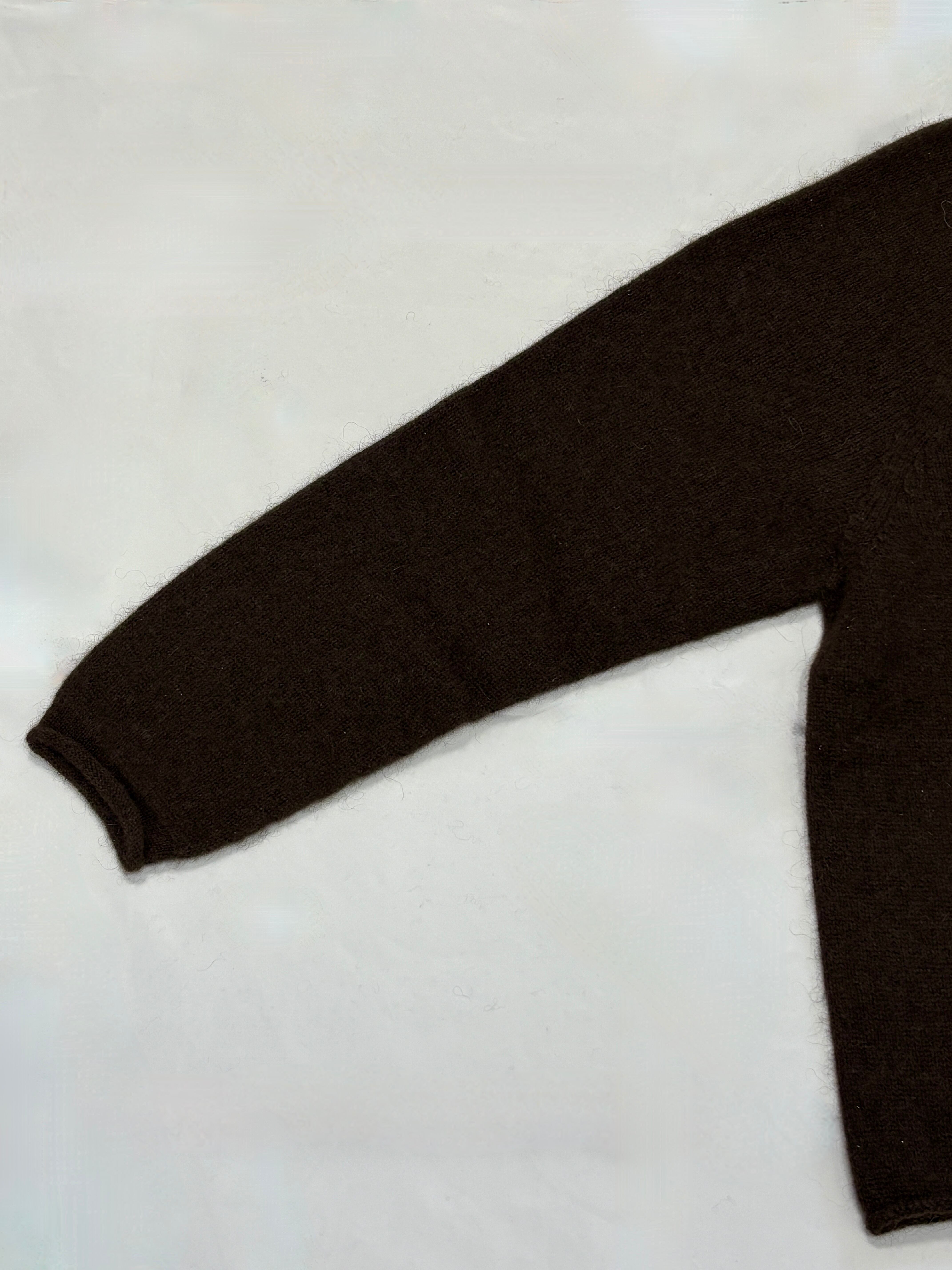 襟ぐり・袖口・裾が軽くロールしたデザインとふっくらとした柔らかな素材はどこか可愛げがありシンプルなアイテムに豊かな表情を加えます。
