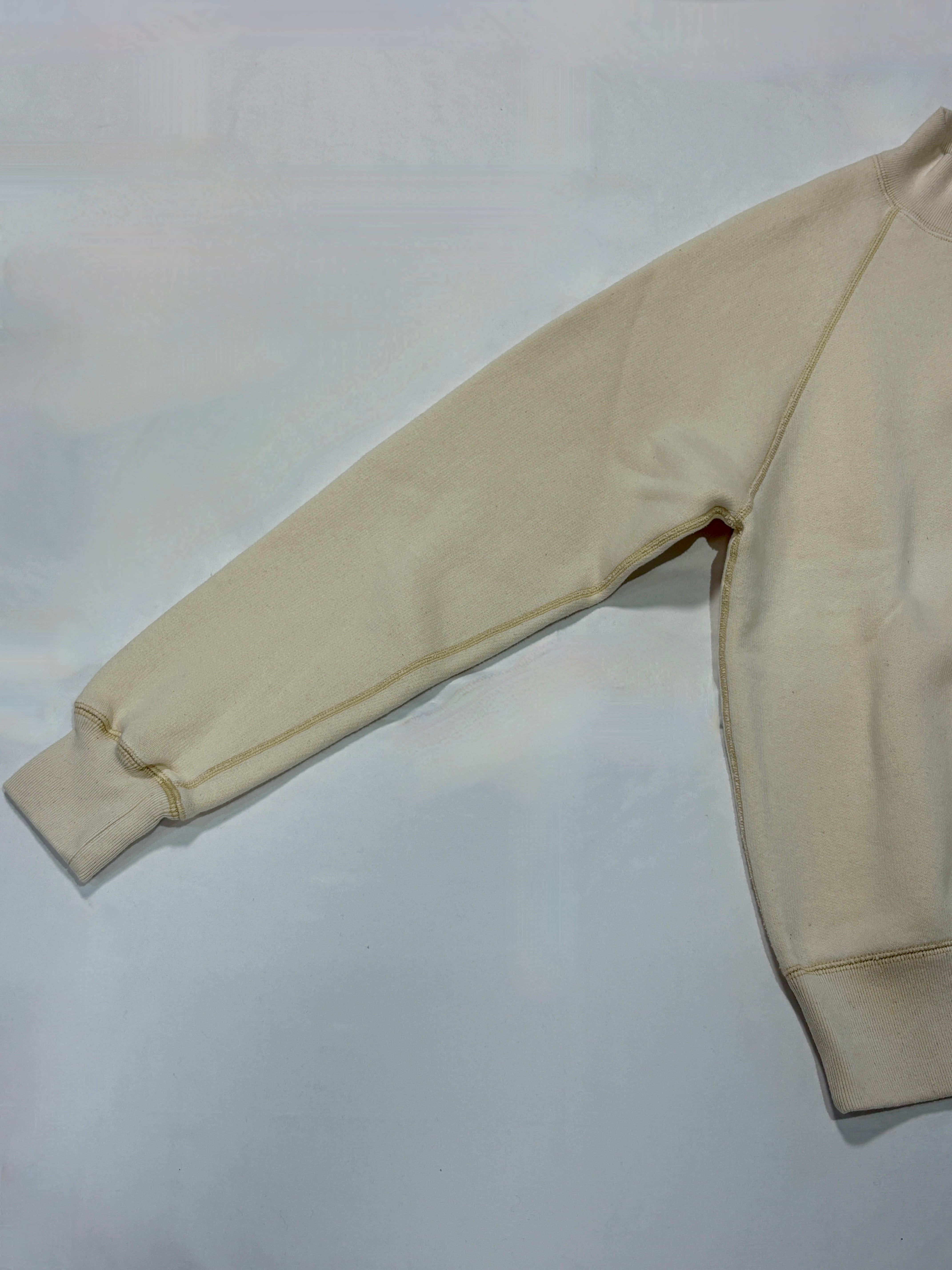 デザインは素材の持ち味を活かして60年代のラグランミドルネックスウェットシャツをベースにしています。