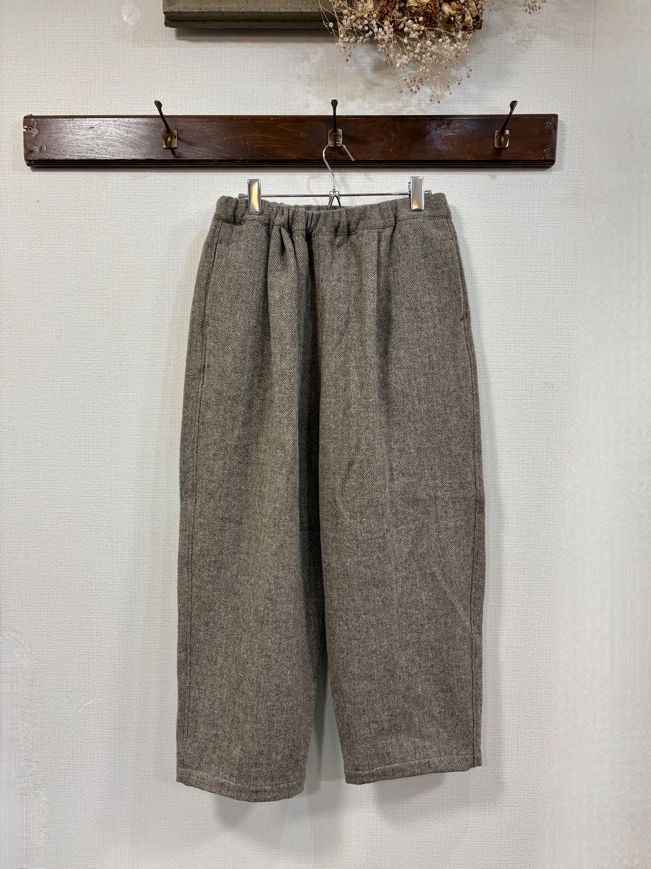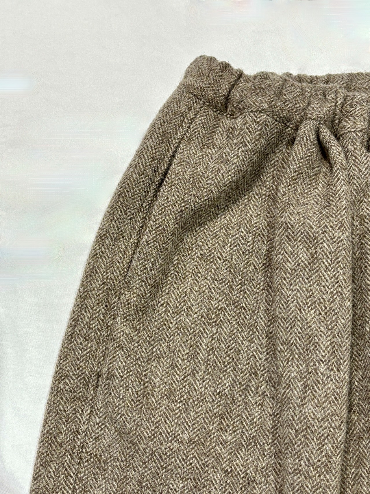 100%ウールのヘリンボーンツイード生地を使用した秋冬シーズンらしい温かみのある風合いのパンツです。