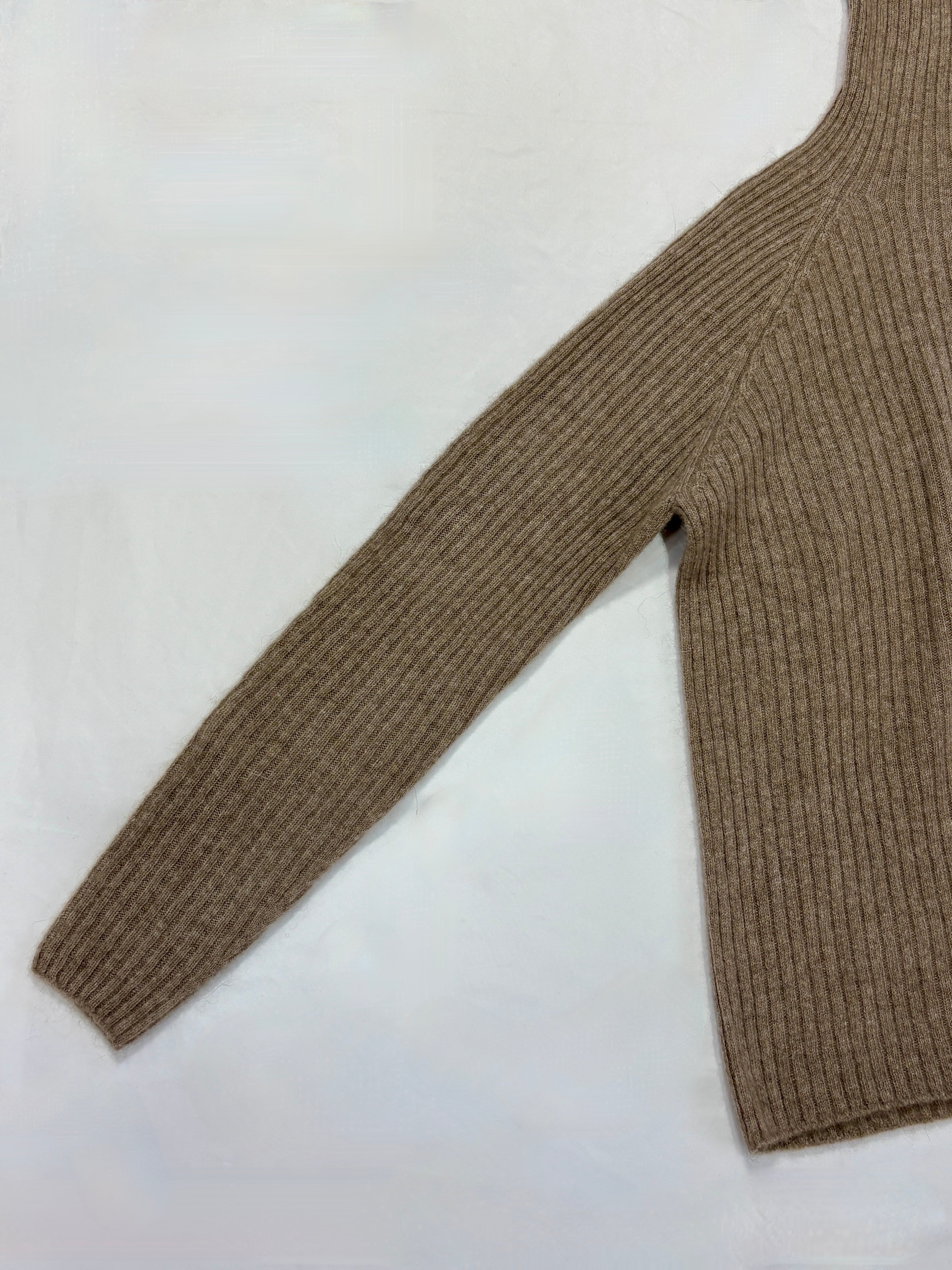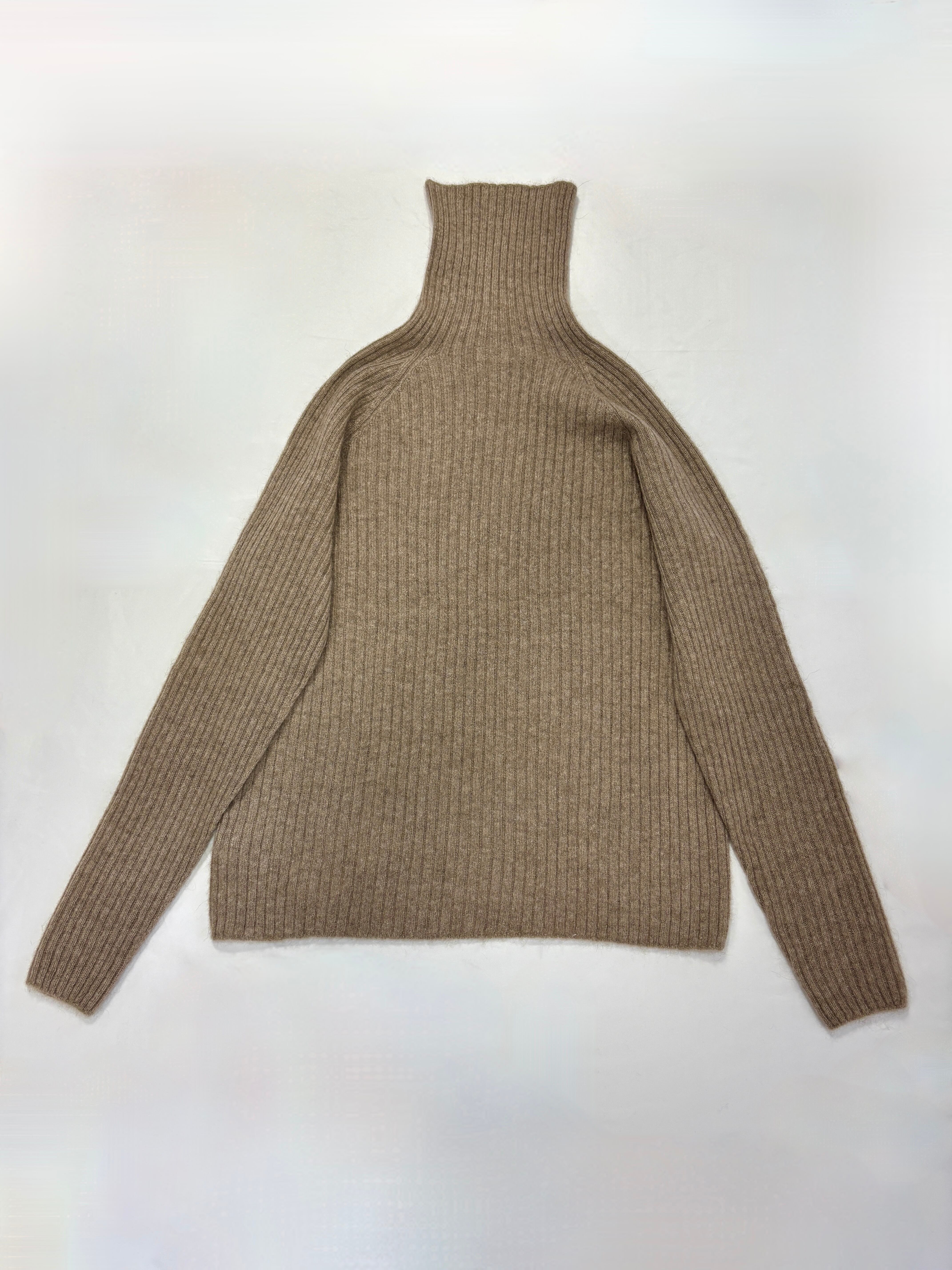 カシミヤ特有のしっとりとした柔らかさと一枚で編み上げた縫い目のない滑らかな着心地が魅力のリブタートルネックセーターです。