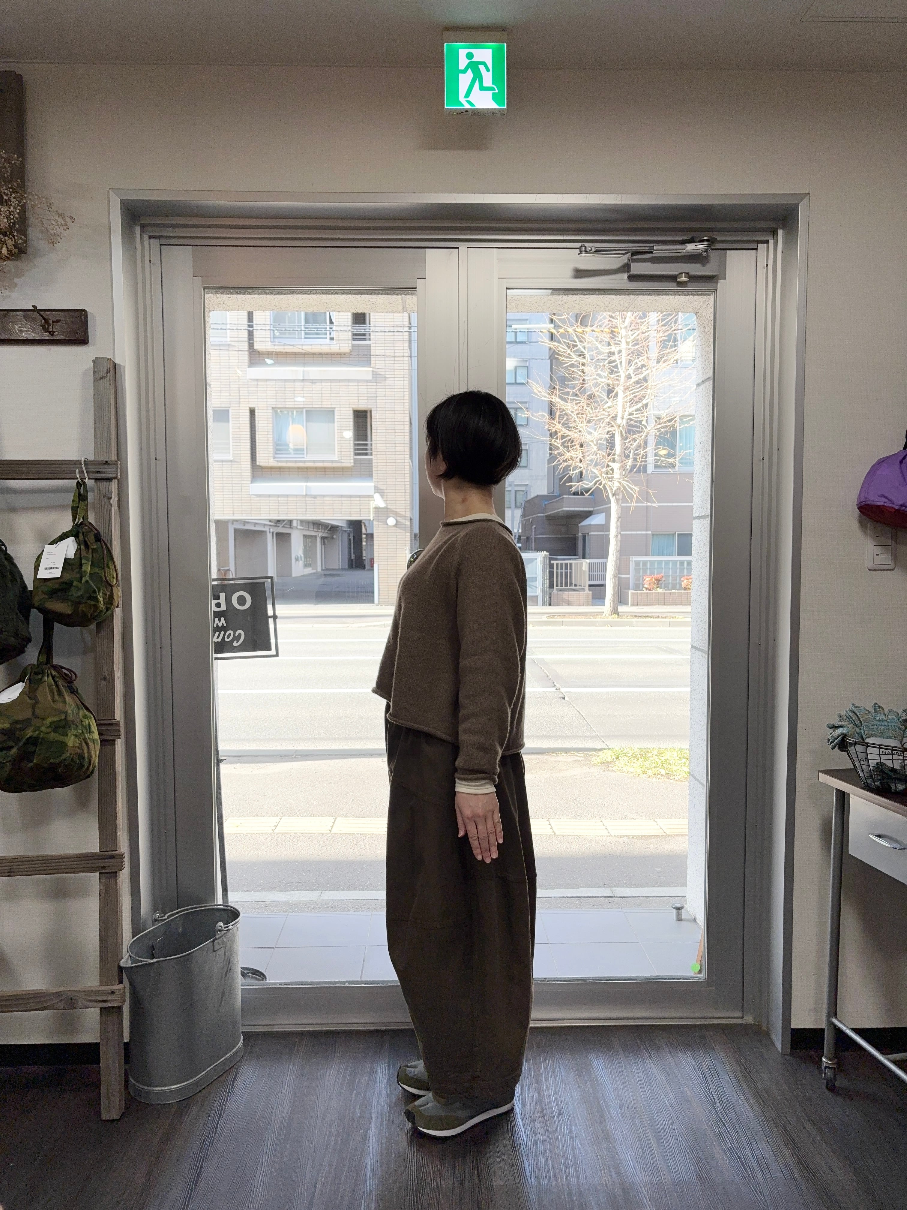 腰回りはスッキリと収まりが良く裾に向かって自然なワイドラインを作りますが広がらないため全体的に見ると甘さを抑えた洗練された印象になります。