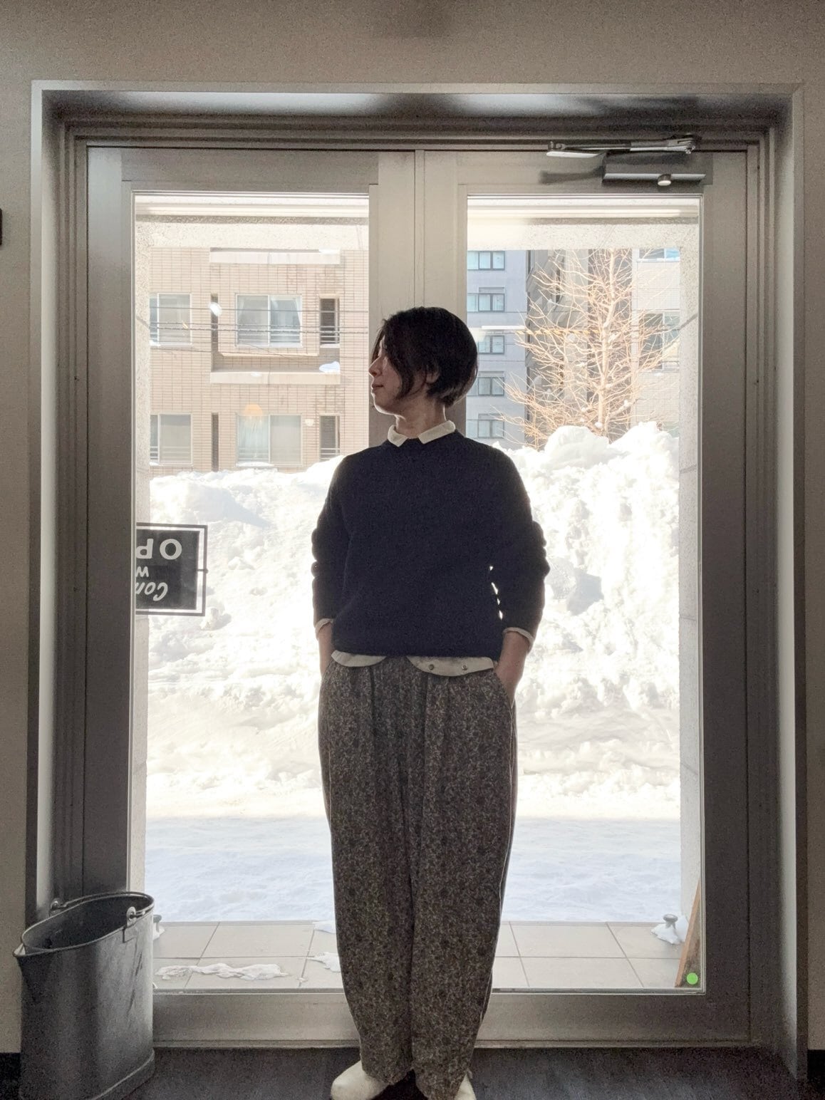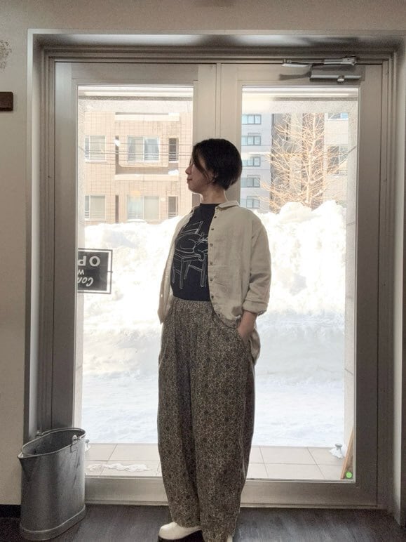 または一枚で着た時や羽織った時は腰回りの安心感がありつつ前から見ると高い位置に目線が行くので全身のバランスがとても良く見せます。