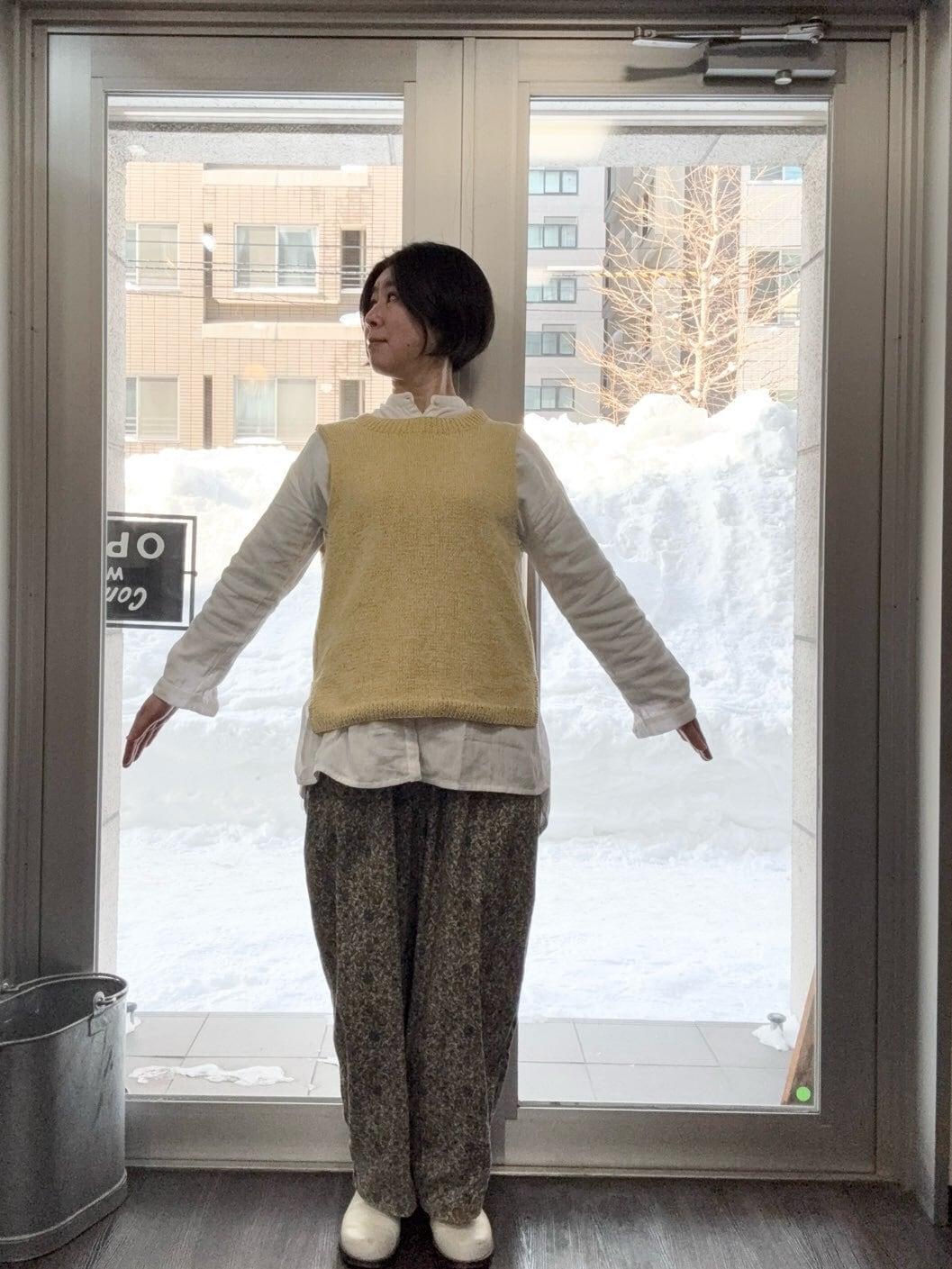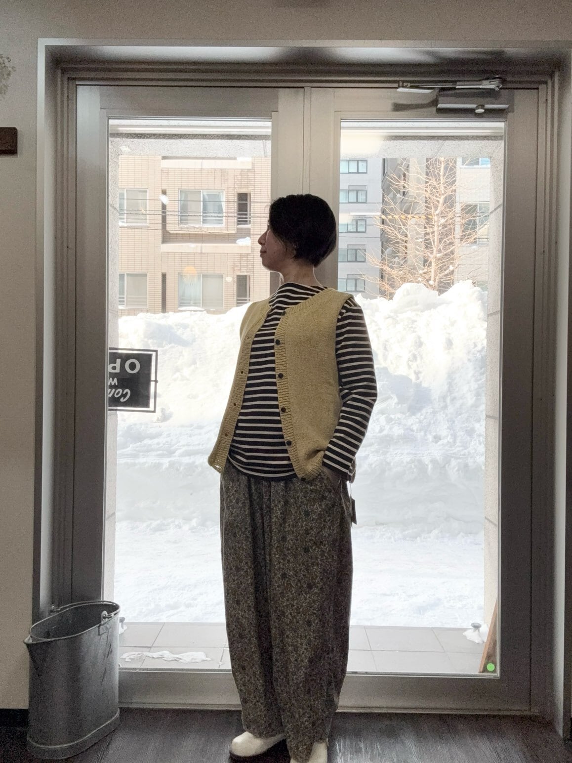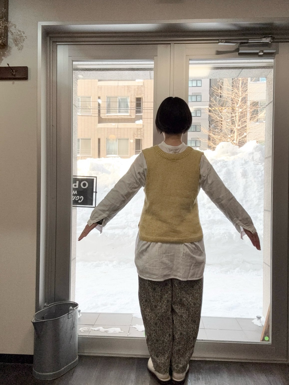 シサム工房・手編みコットンニット 2wayミックスカラーVest・GYm