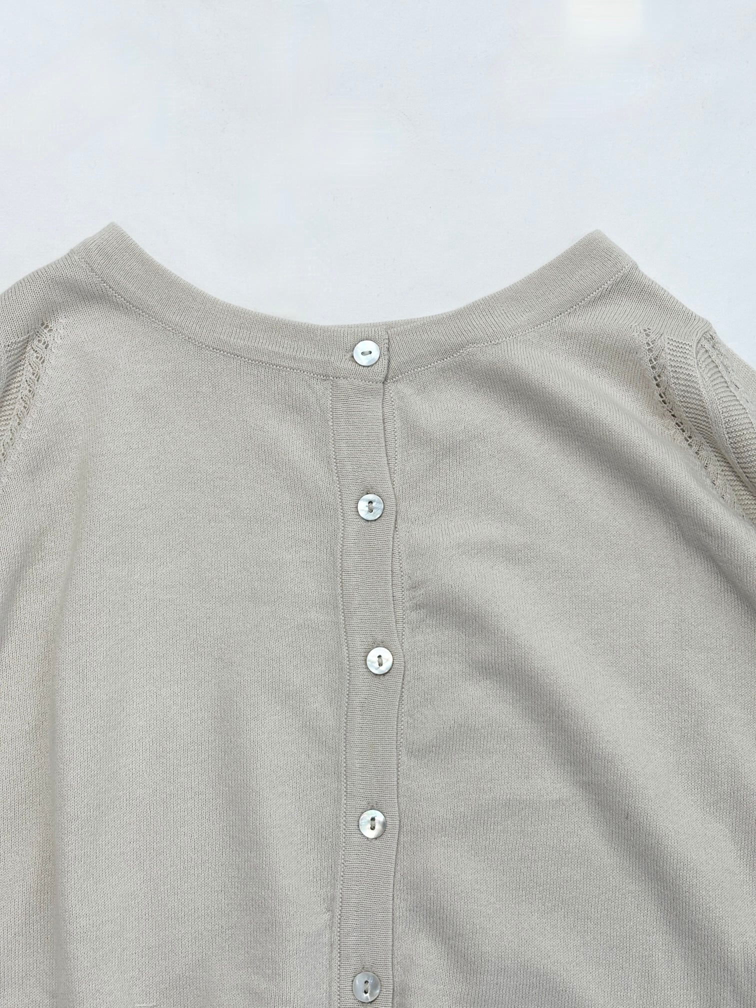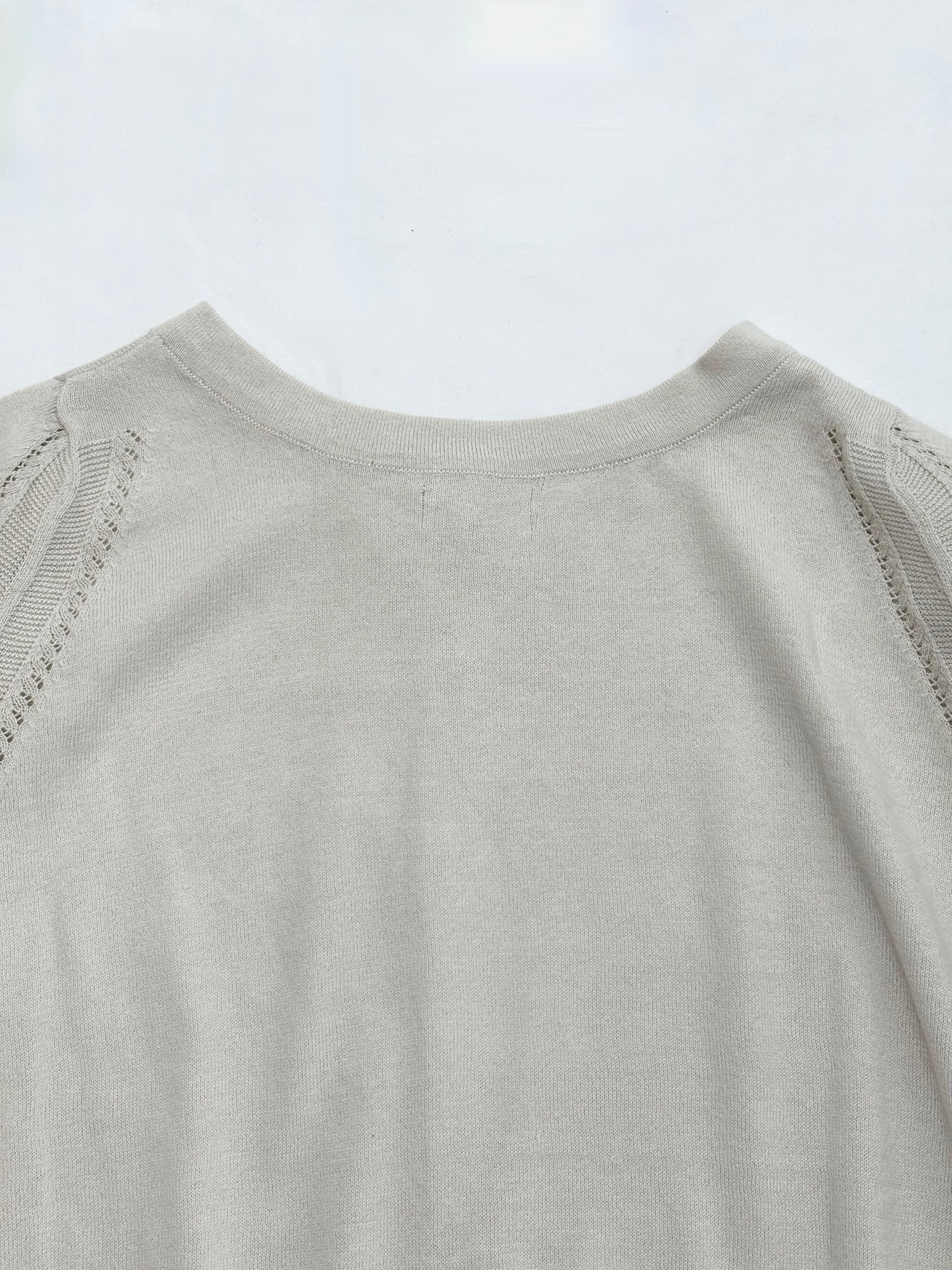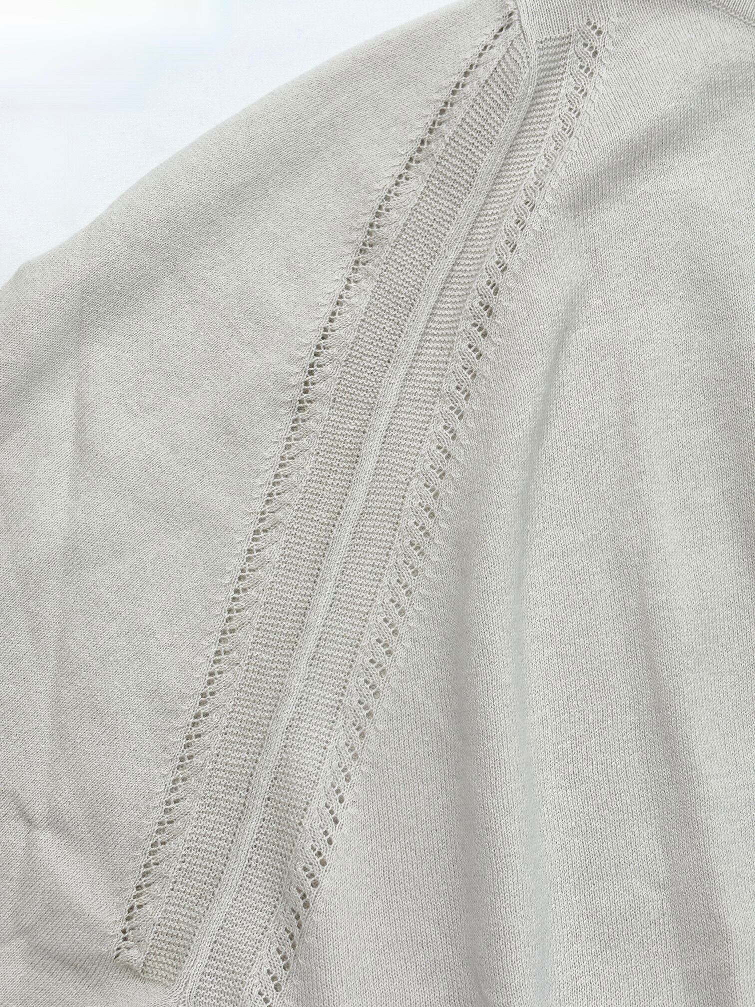 アームホールには涼しげな編み柄を入れることによってより春夏シーズンらしく軽やかな印象です。