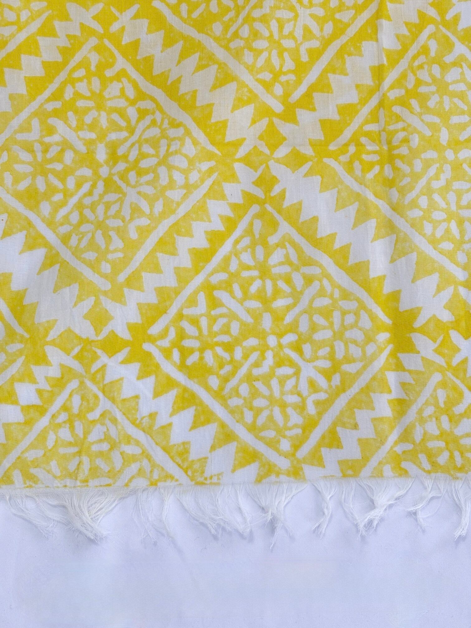 幾何学のような模様を木のハンコにして押し並べてプリントした木版の手仕事が独特の風合いを生み出しています。