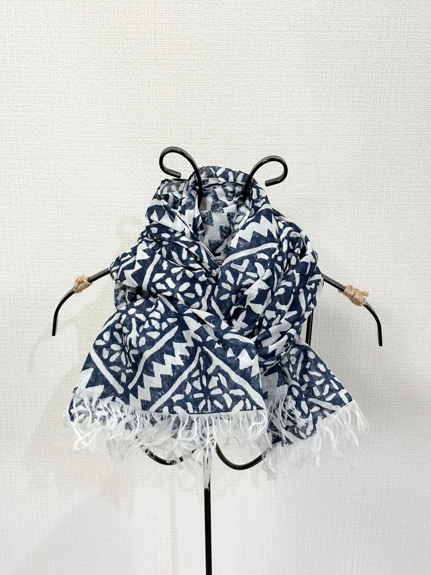 綺麗な柄と味わい深い色味によって首周りにとても良いアクセントをつけられるアイテムです。