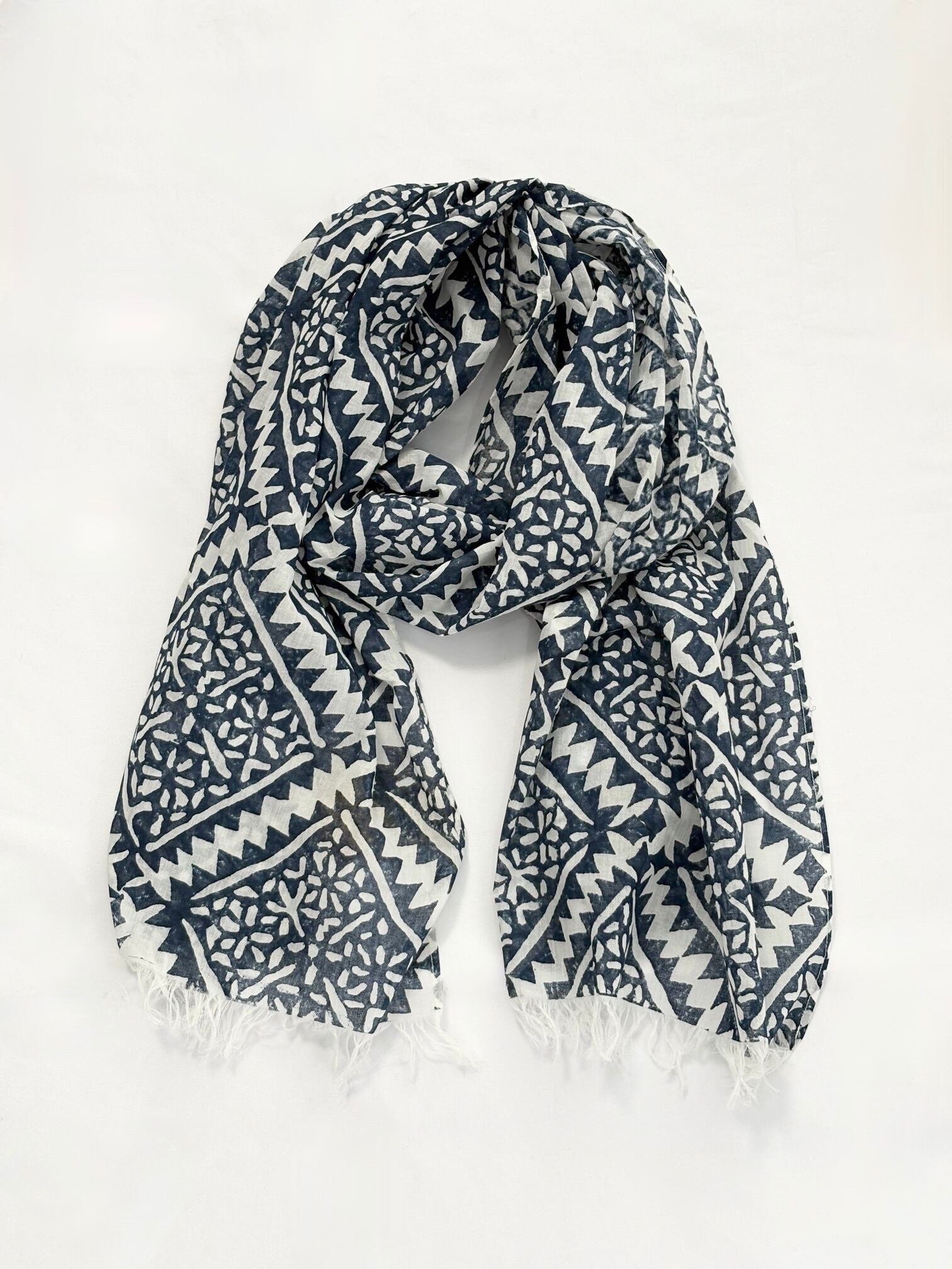 幾何学のような模様を木のハンコにして押し並べてプリントした木版の手仕事が独特の風合いを生み出しています。