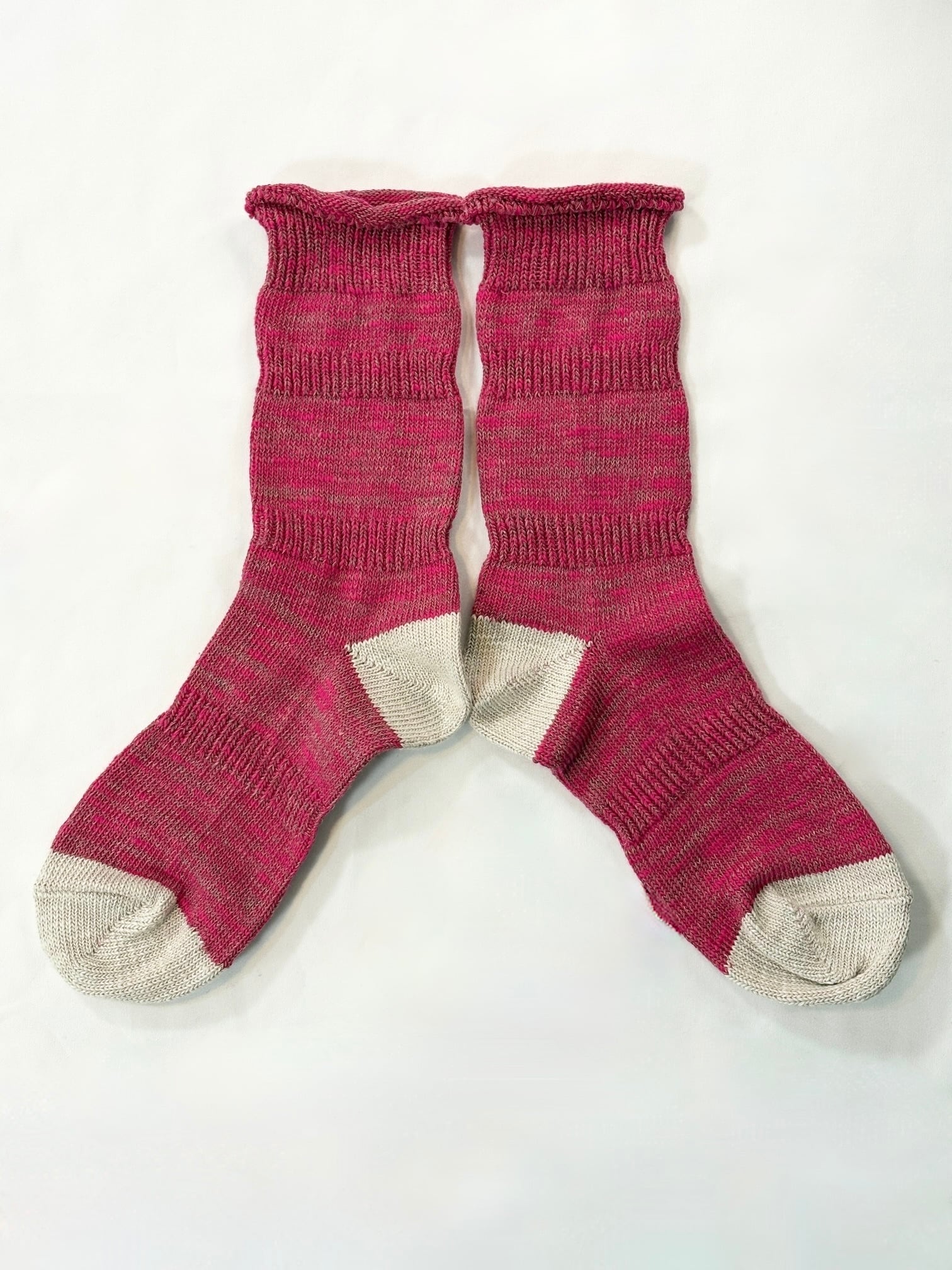 オーガニックコットンでざっくりと編み立てた定番のローゲージソックスです。