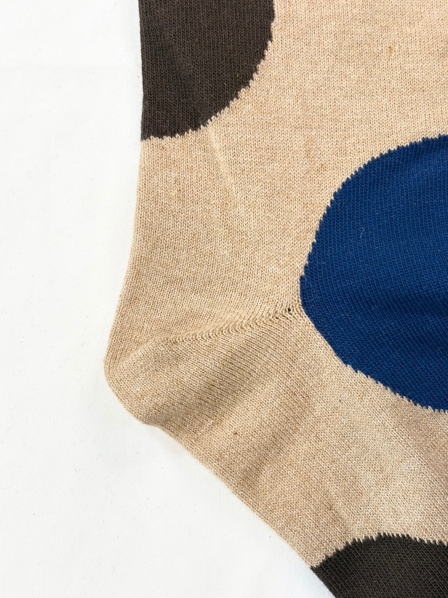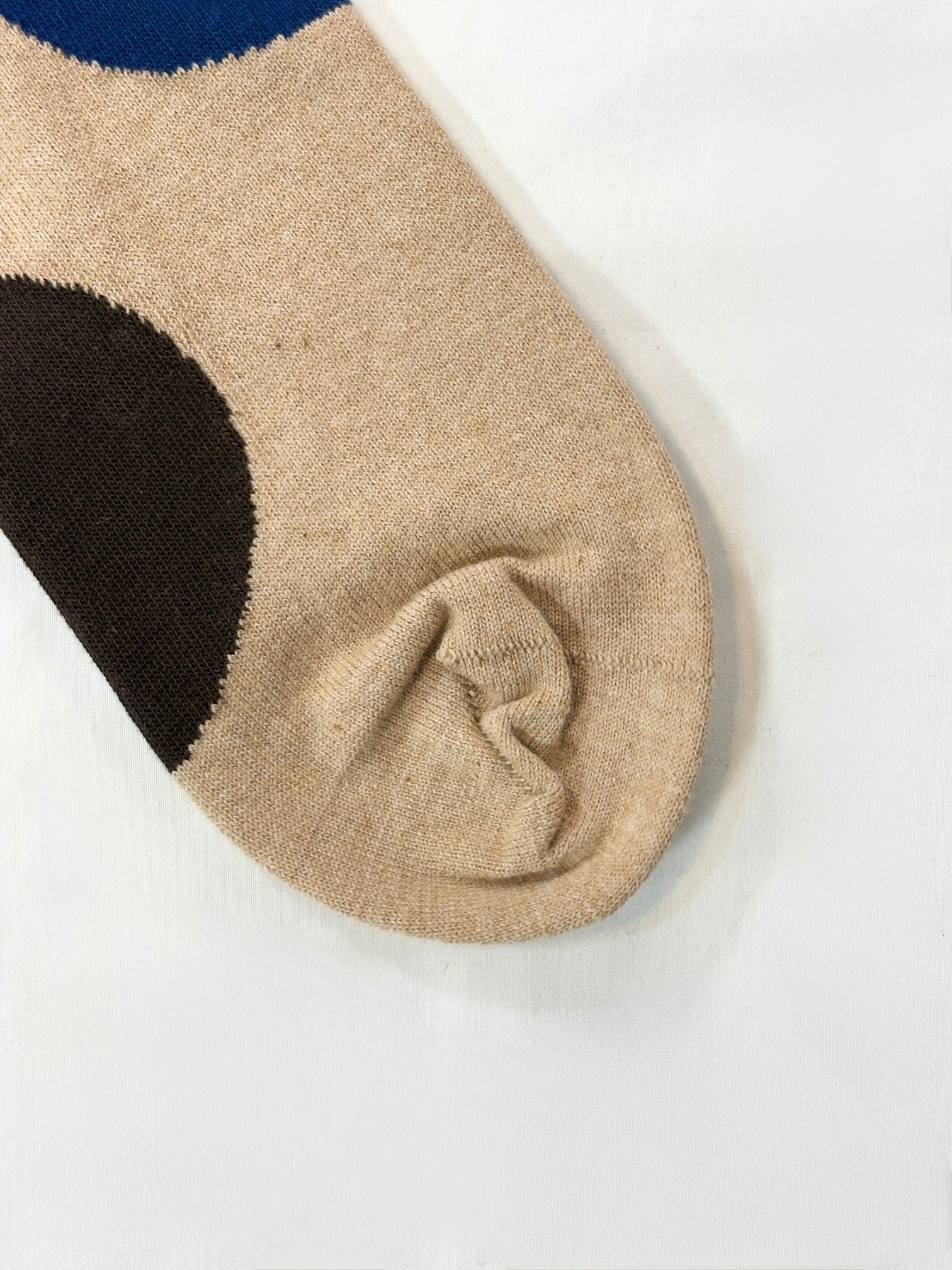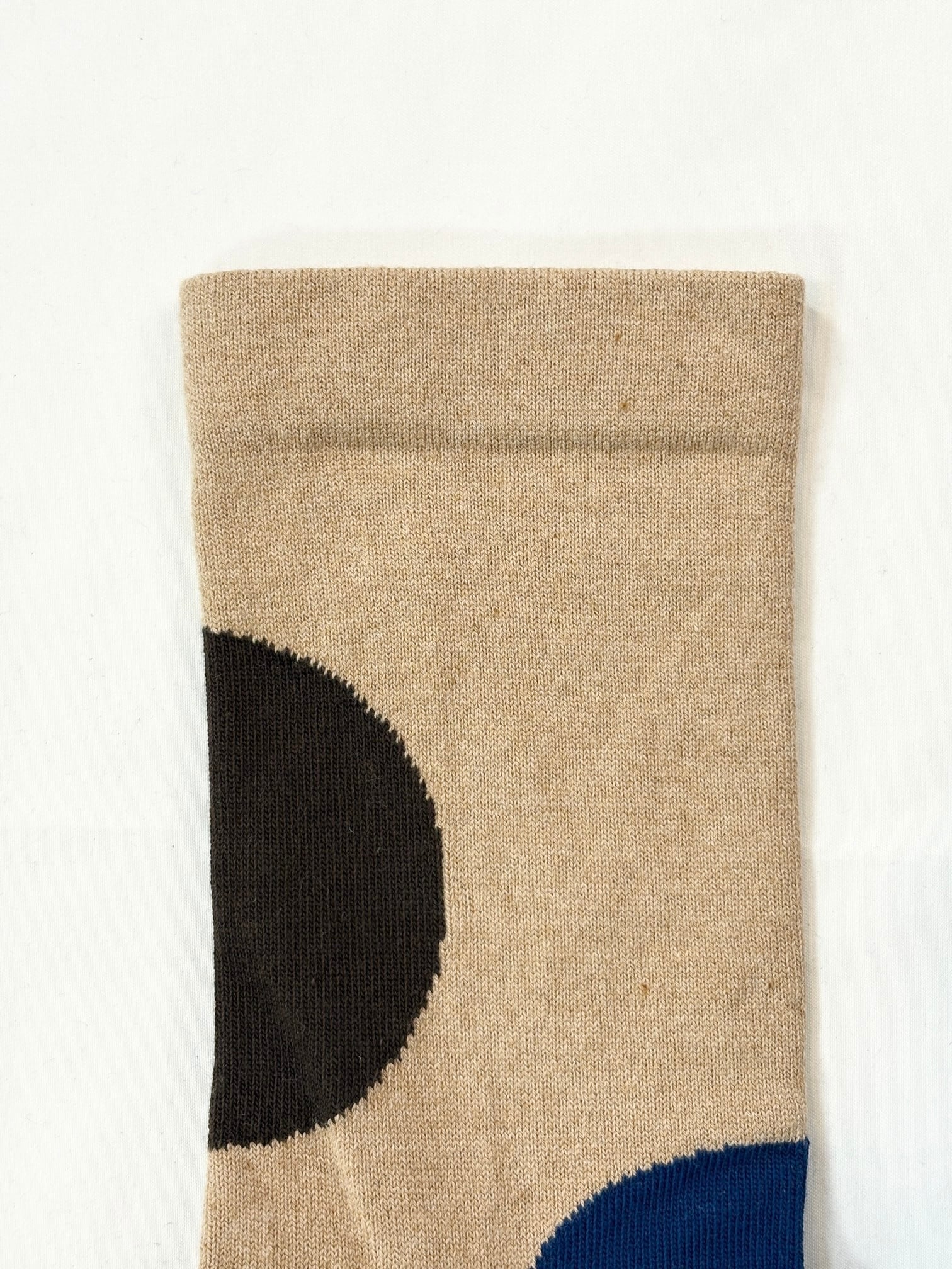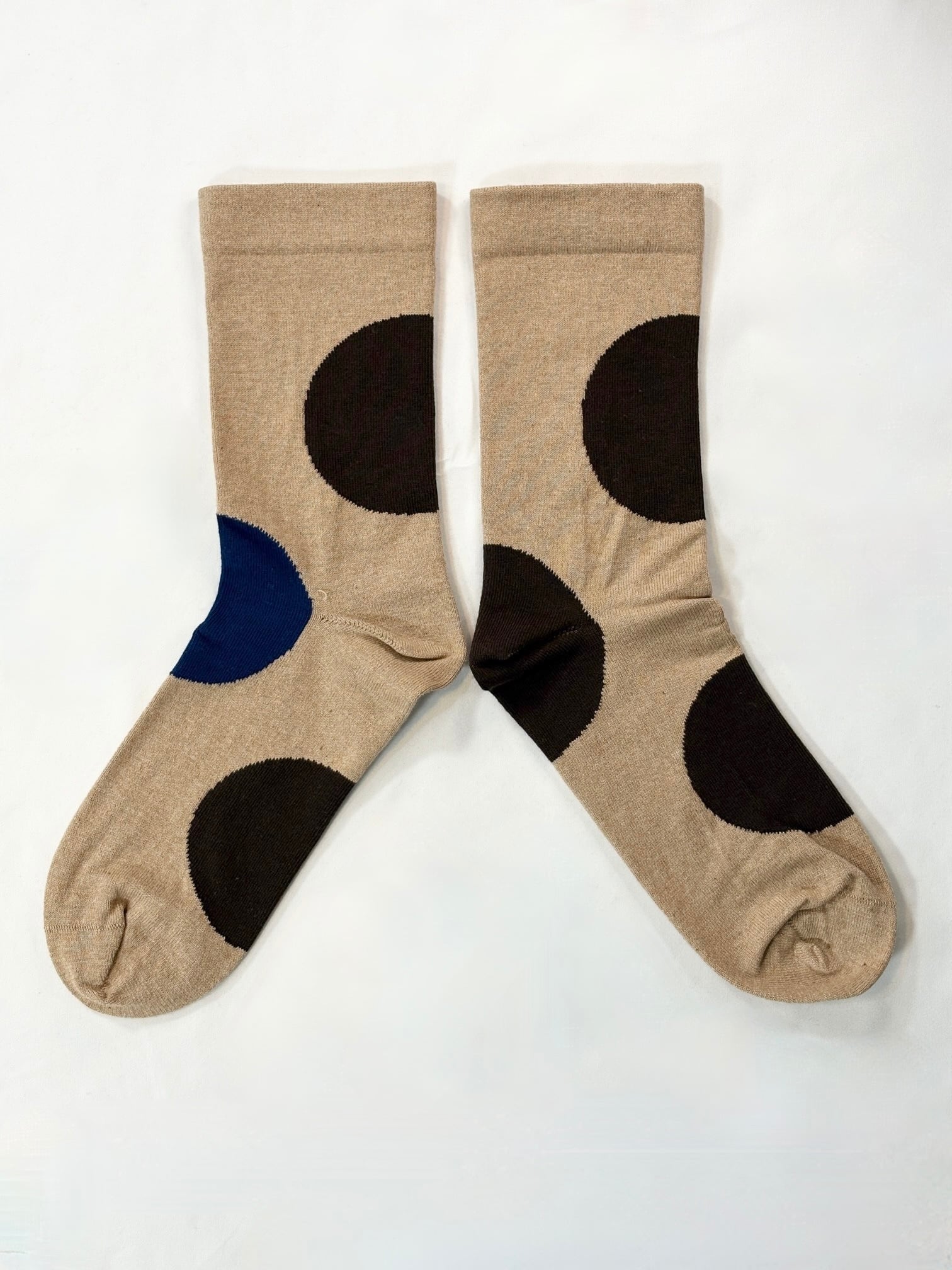 yahae・Organic Cotton Rubber Free Asymmetry Dot Socks・Dark Brown×Blue