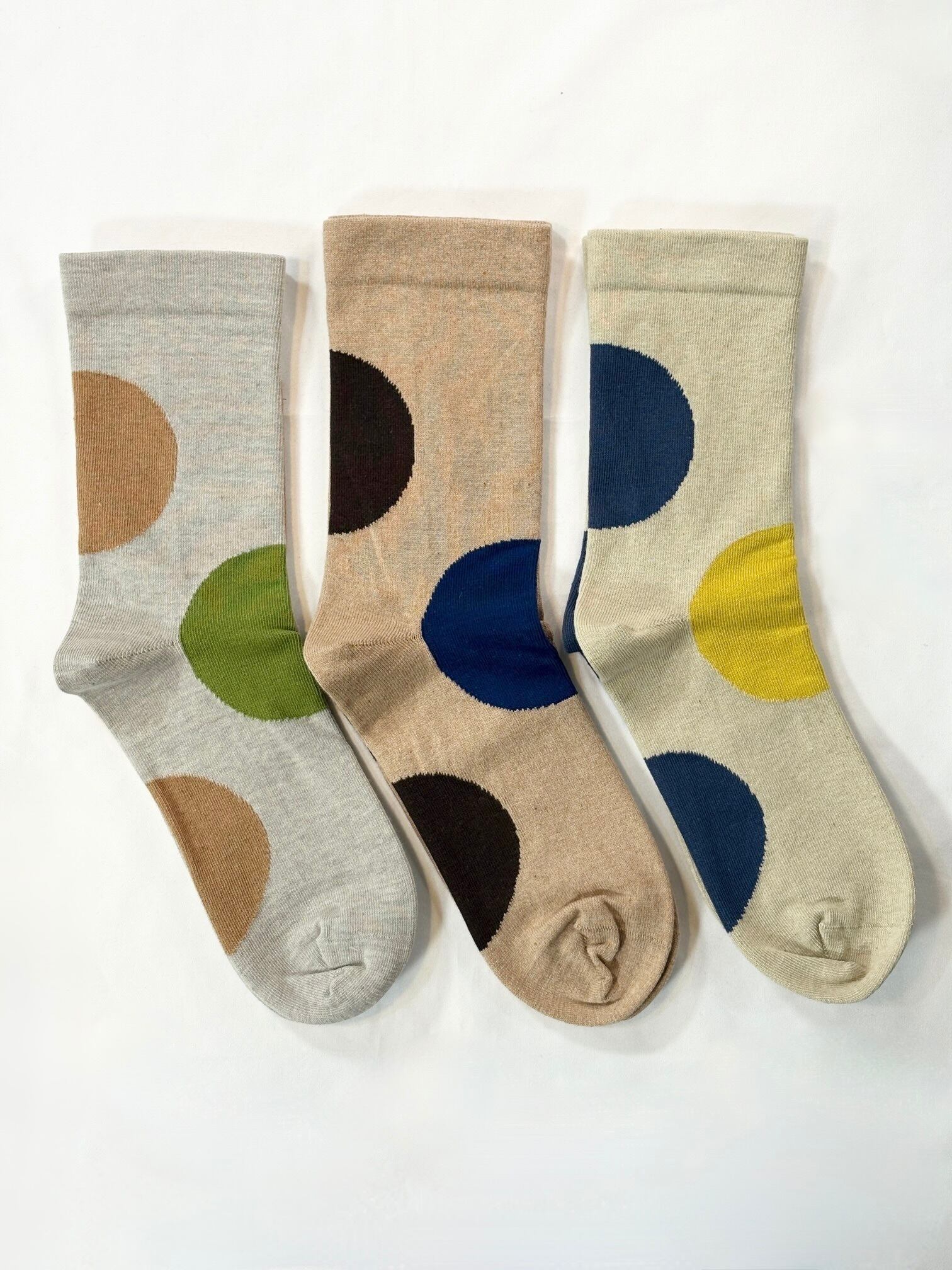 大きなドットが印象的なミドル丈のコットンソックスです。