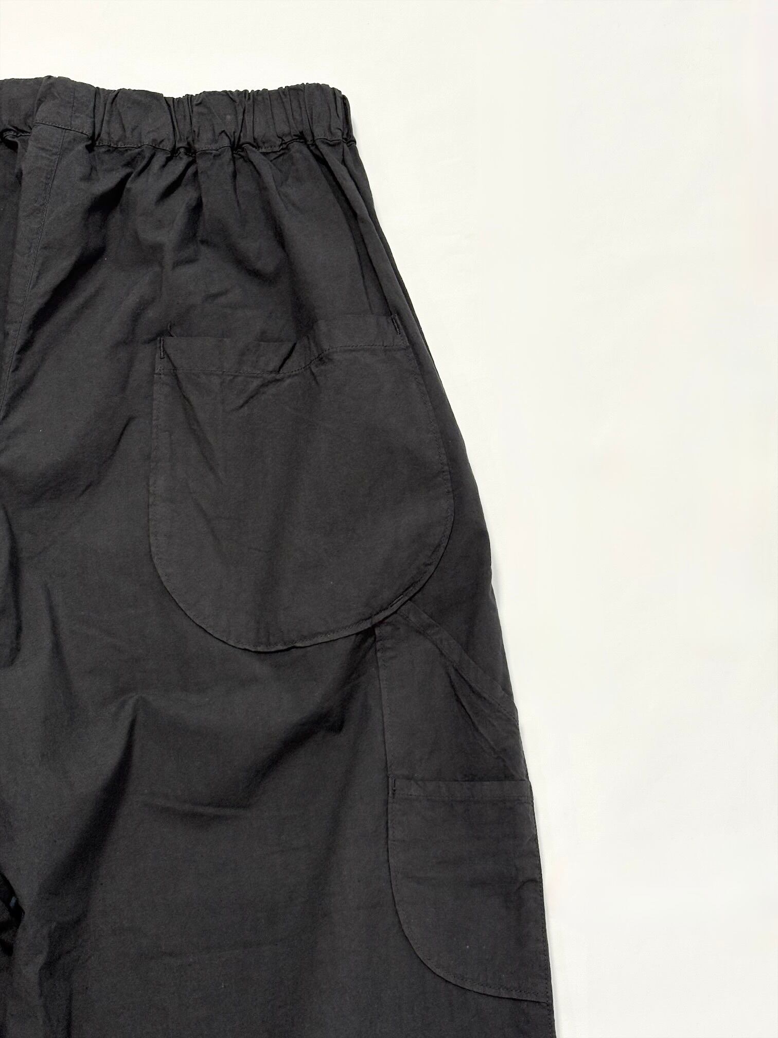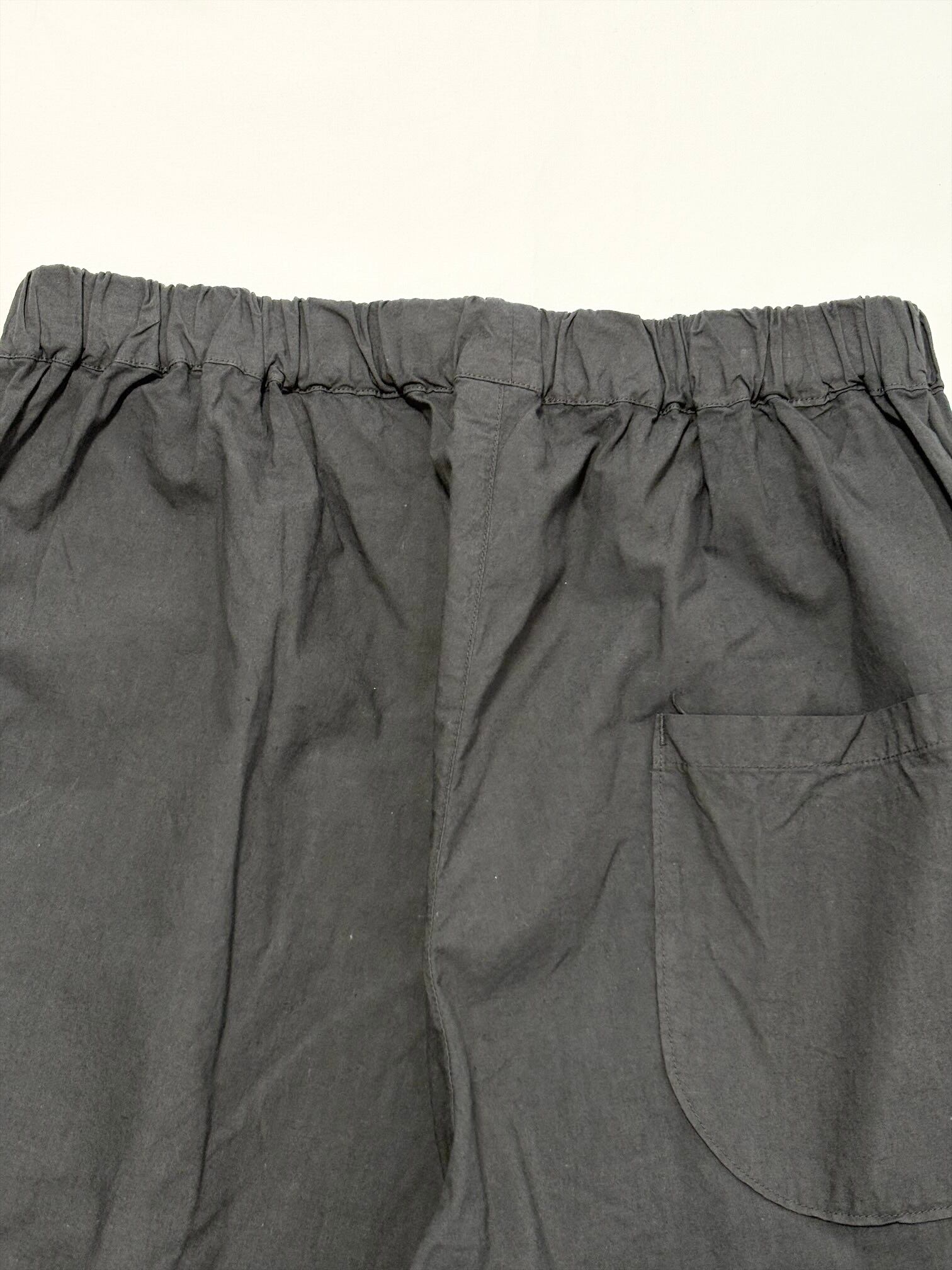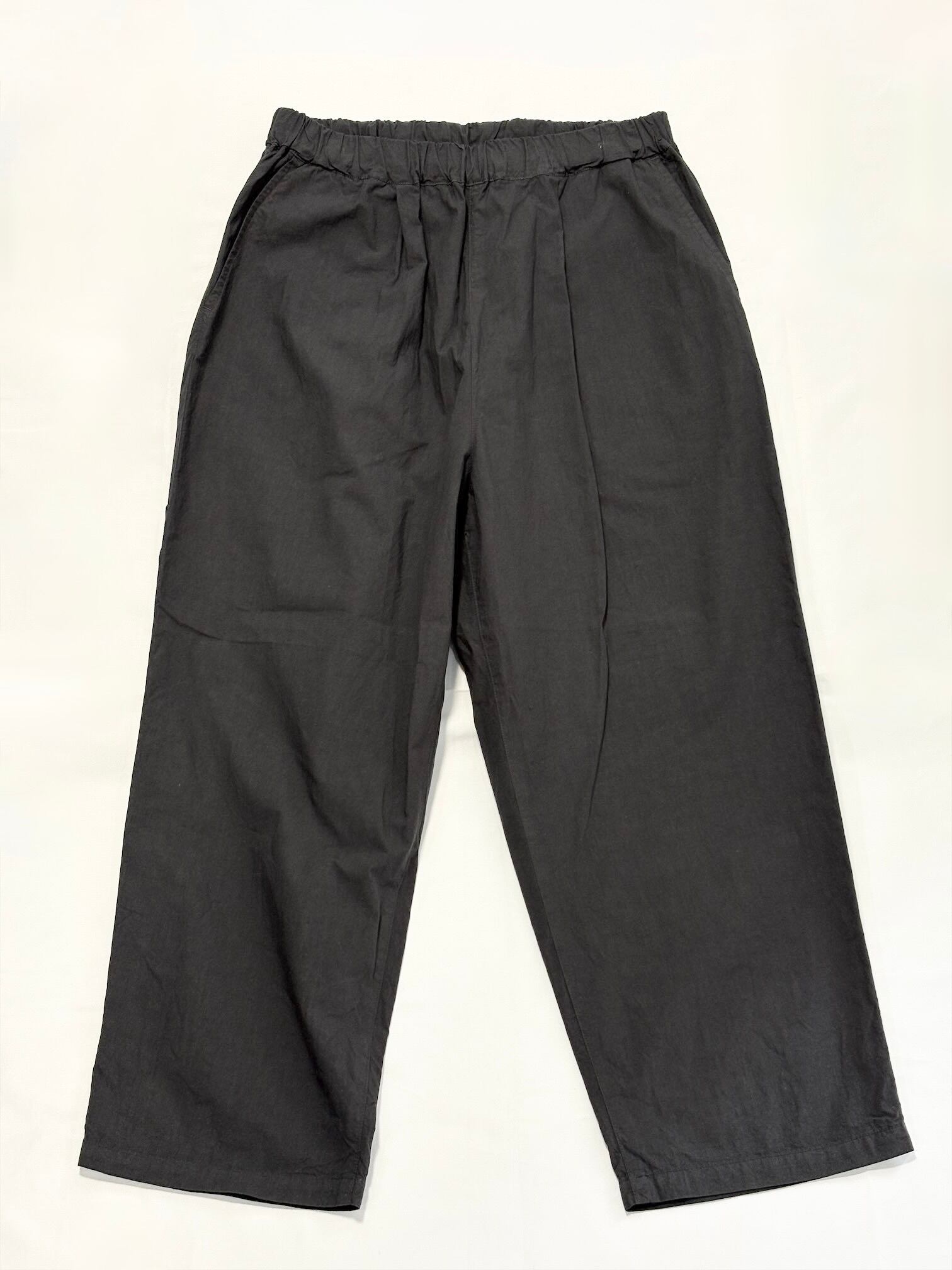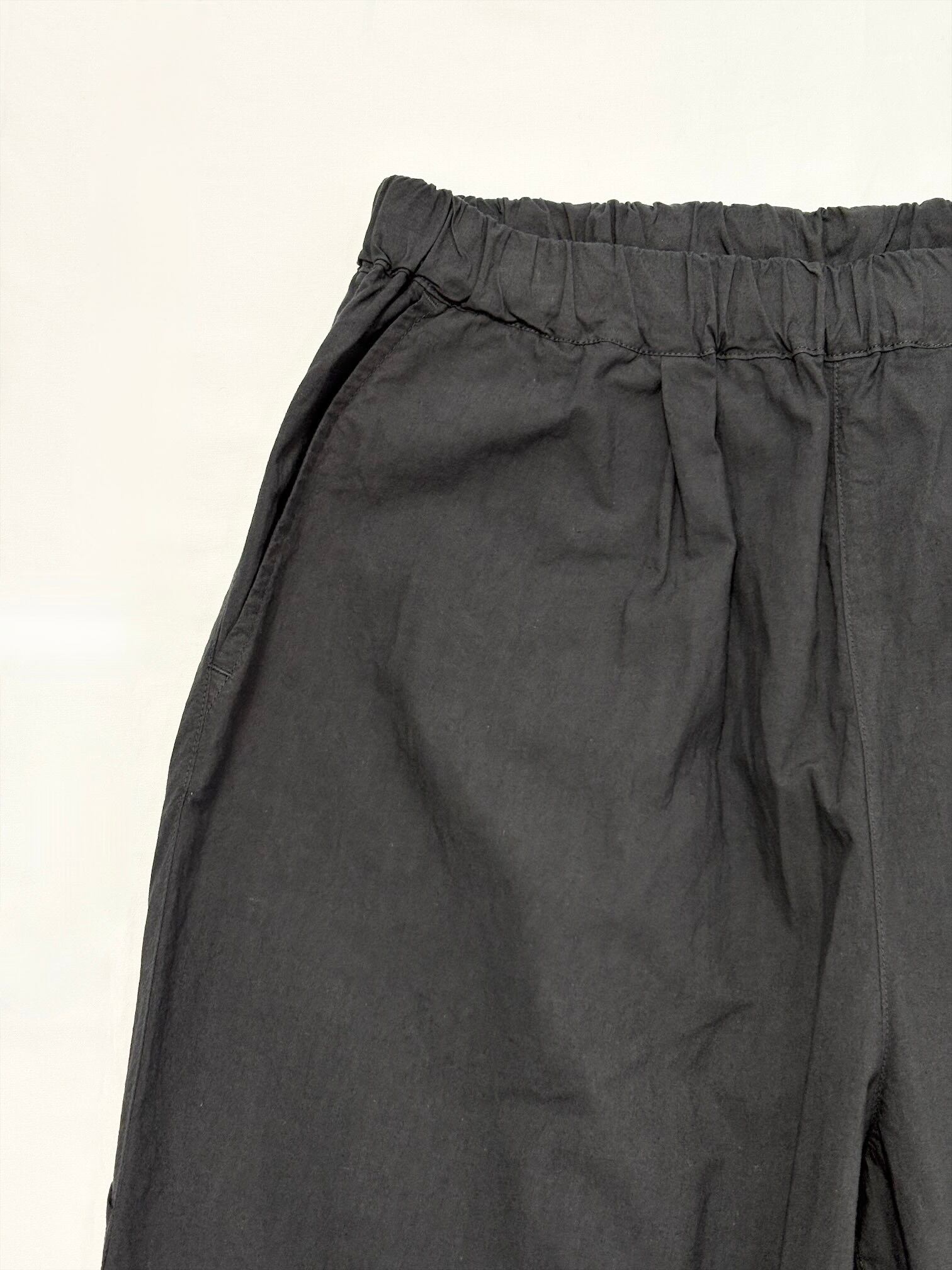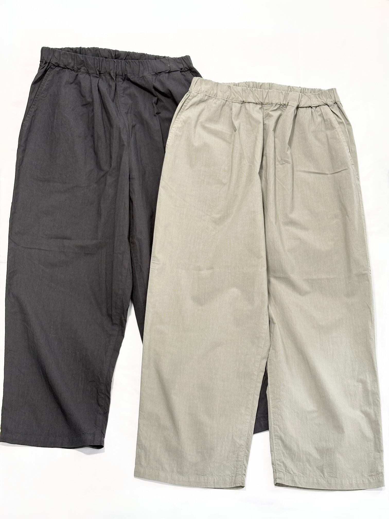 ウエストがゴムなので腰回りにゆとりがあり、それでいて膝下がゆるくテーパードしているため全体の印象は洗練された雰囲気になります。