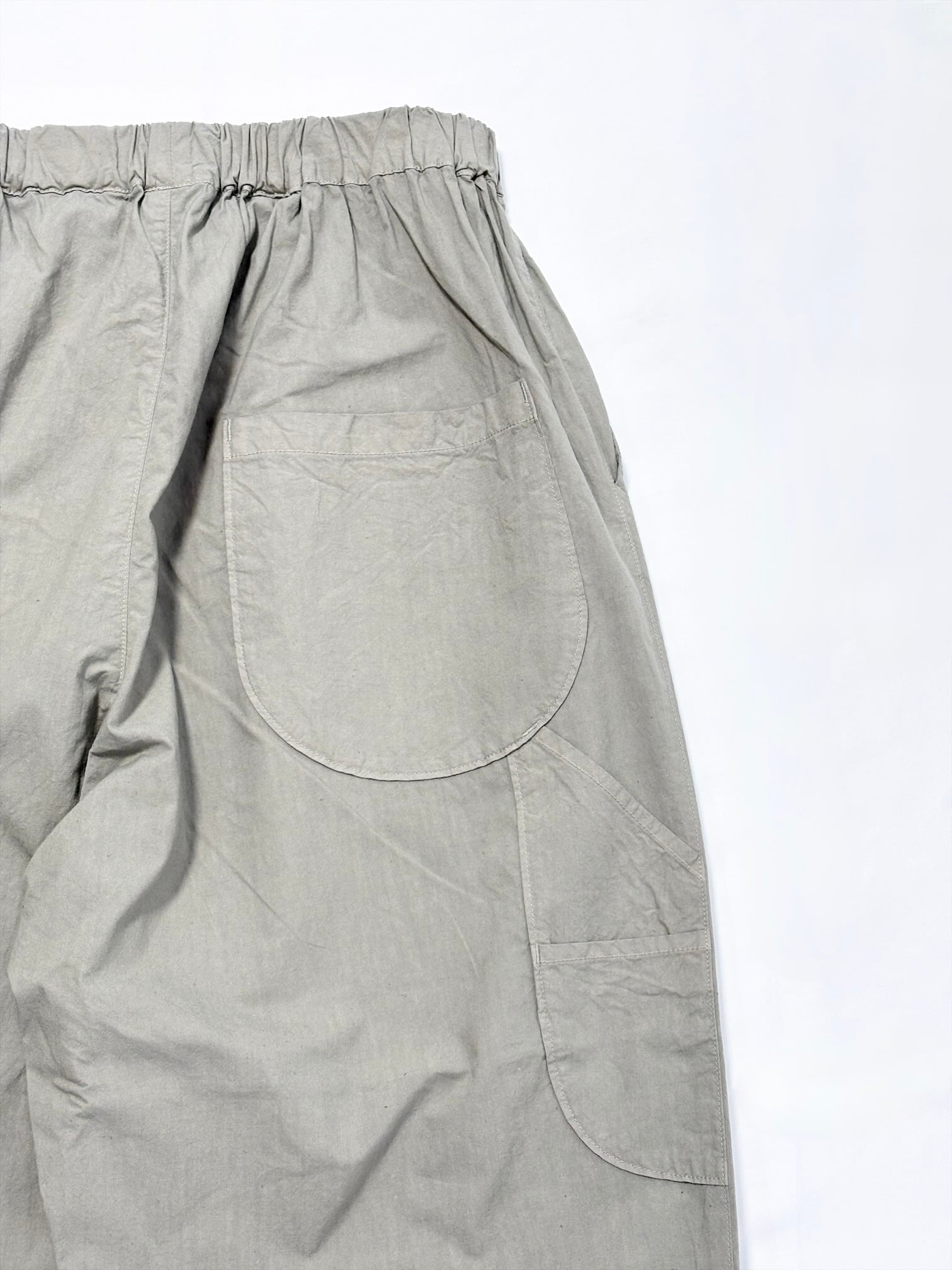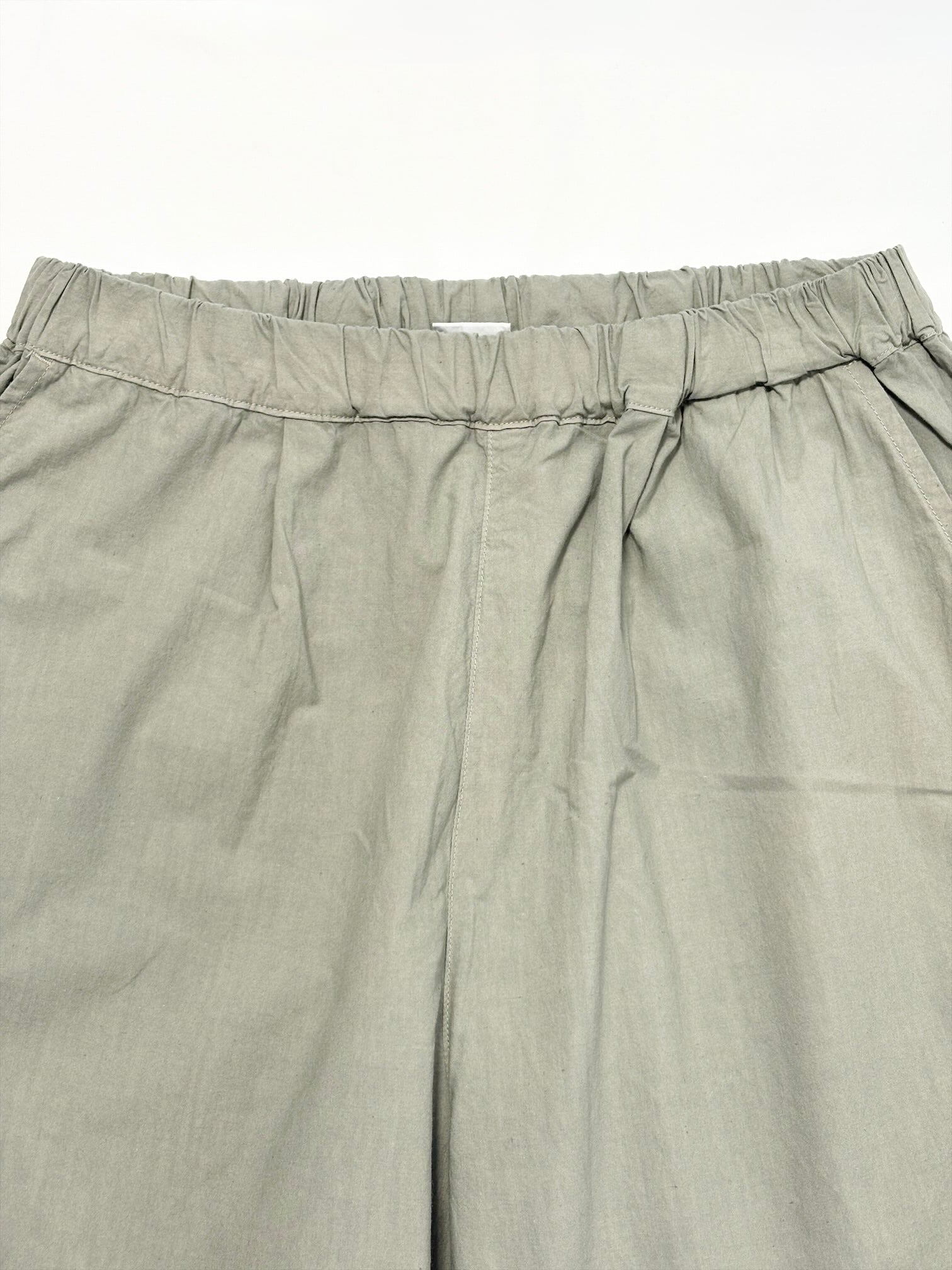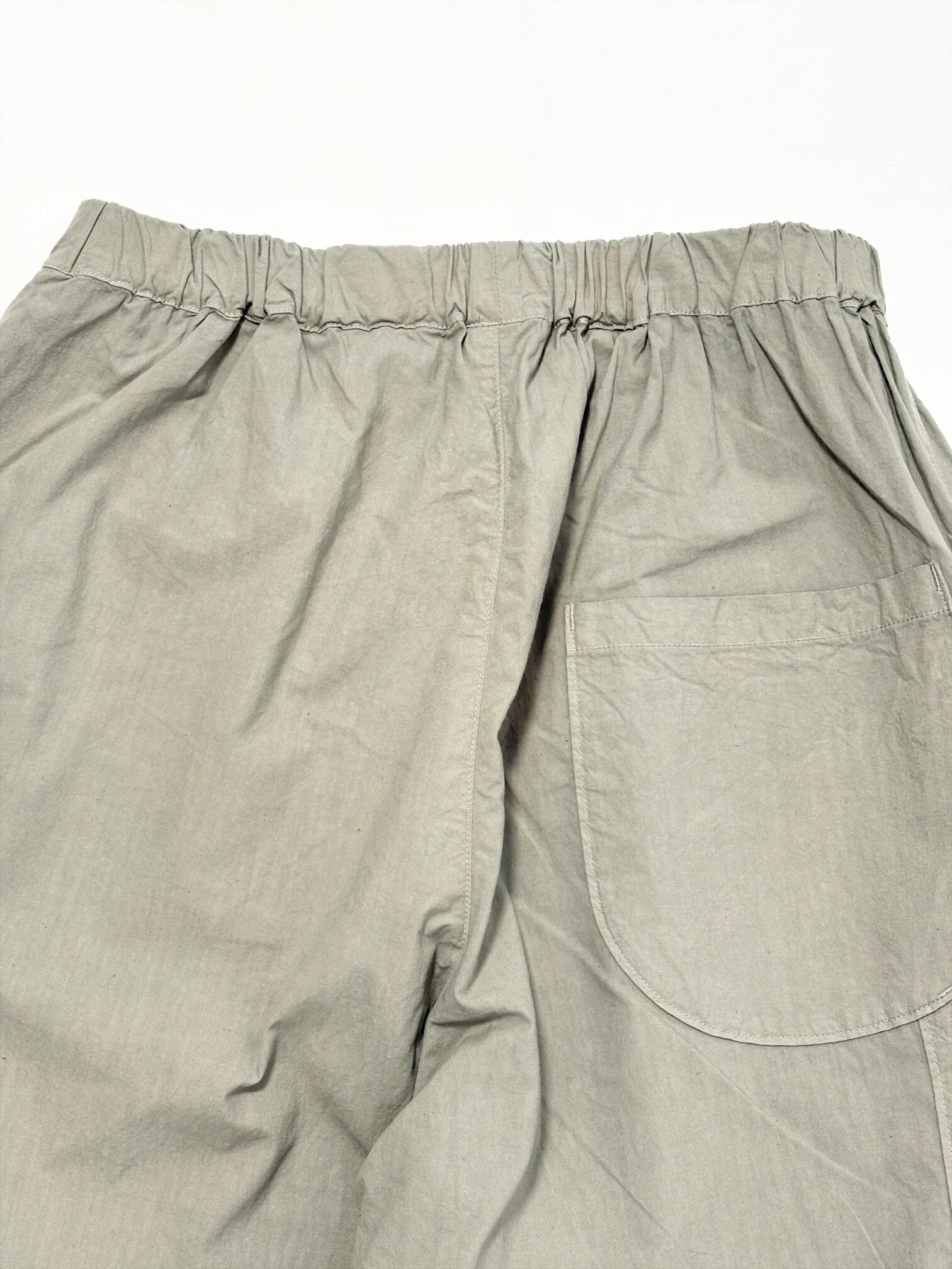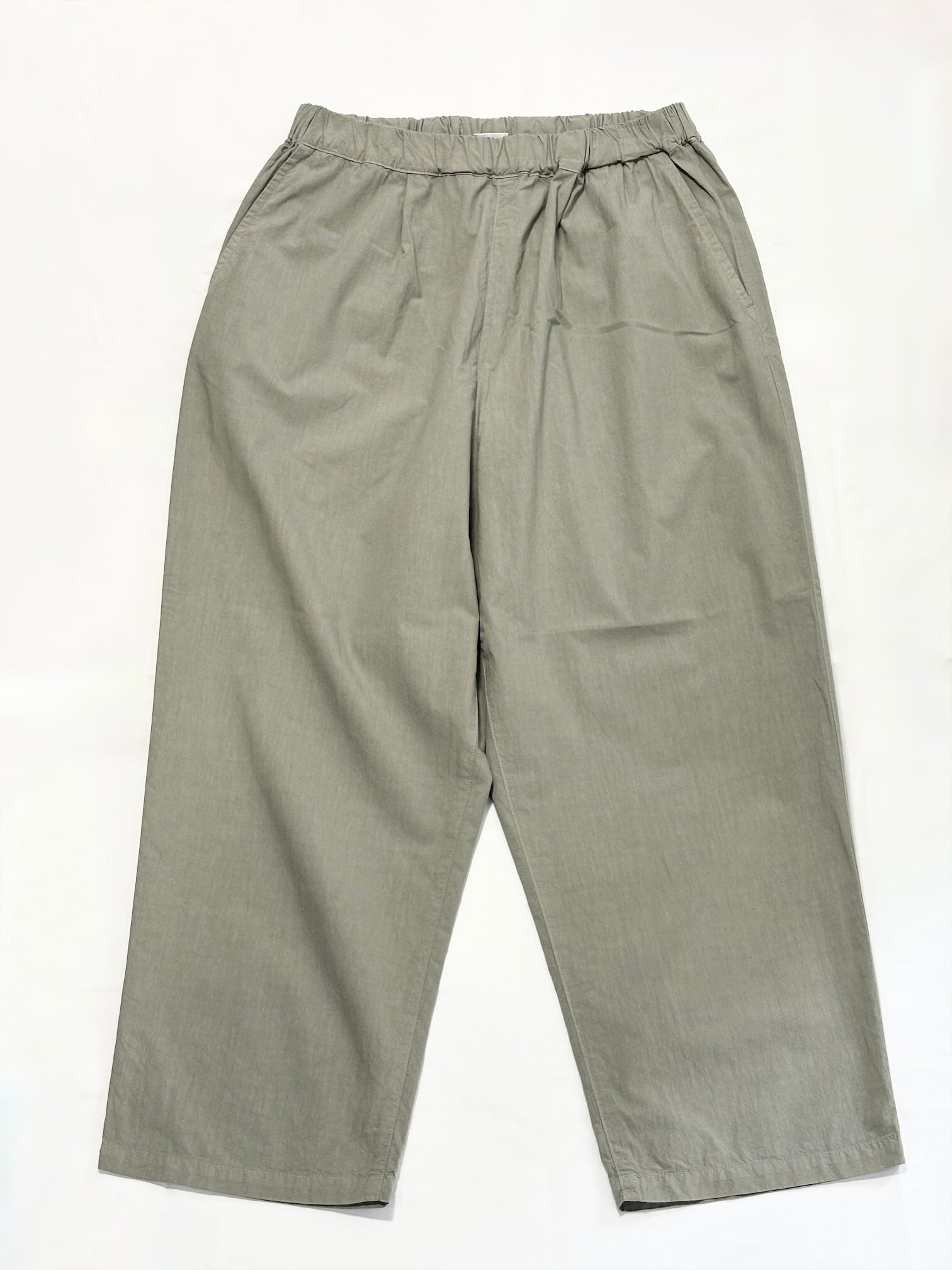 ウエストがゴムなので腰回りにゆとりがあり、それでいて膝下がゆるくテーパードしているため全体の印象は洗練された雰囲気になります。