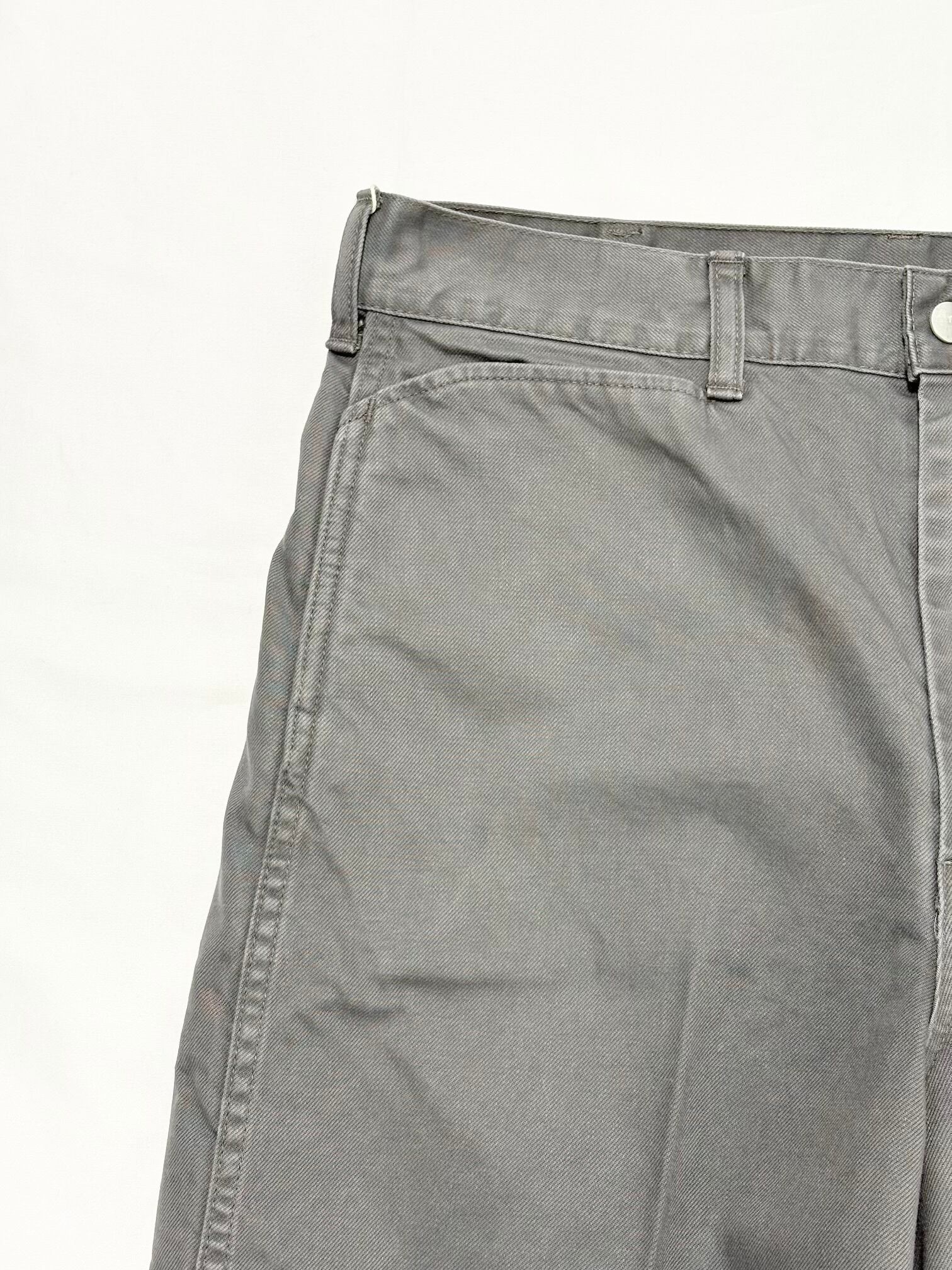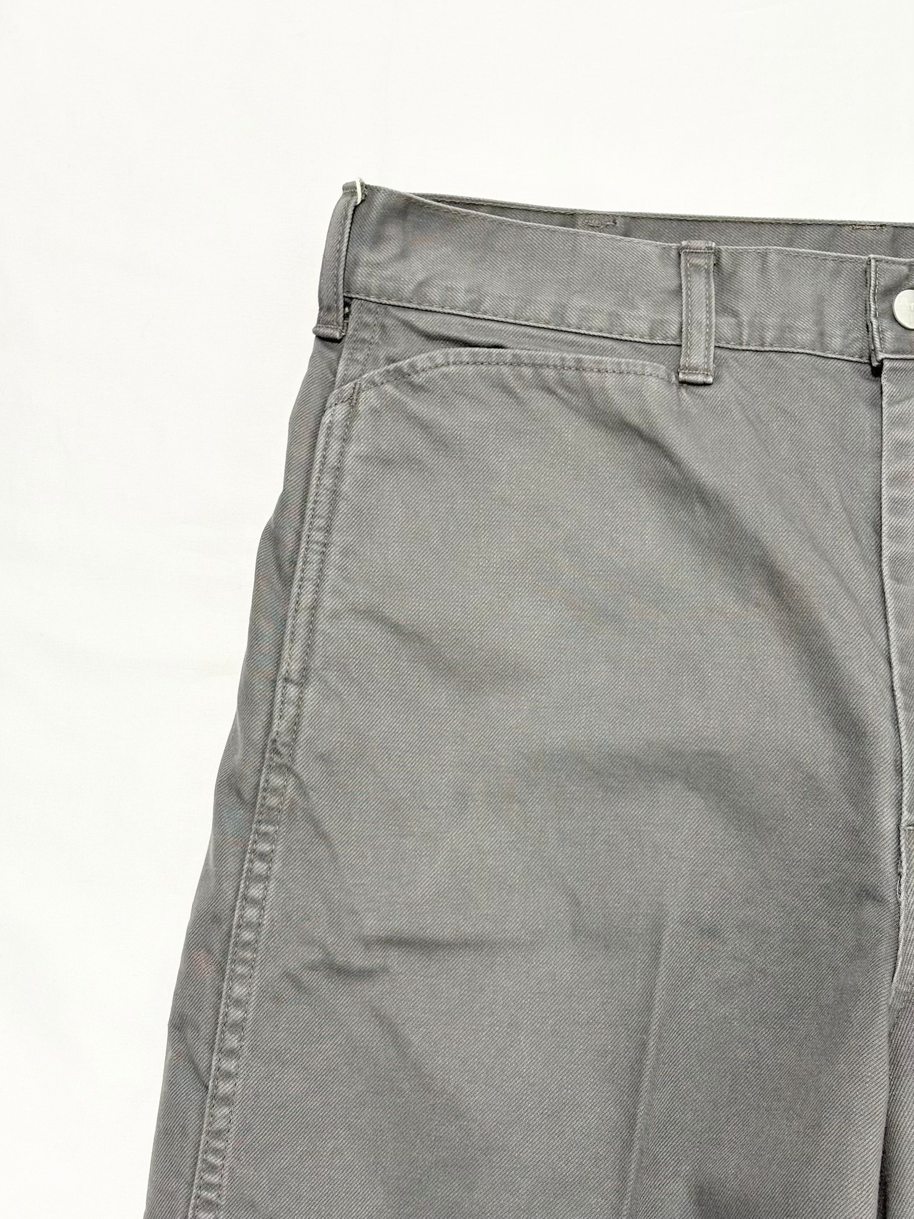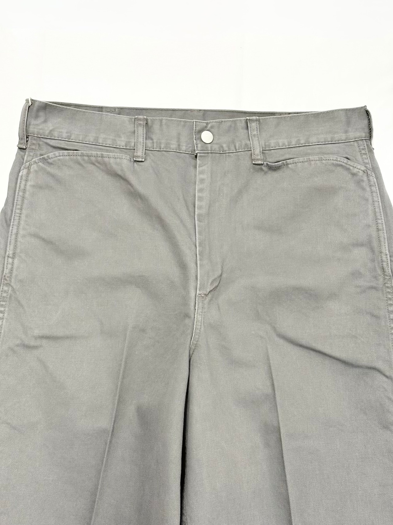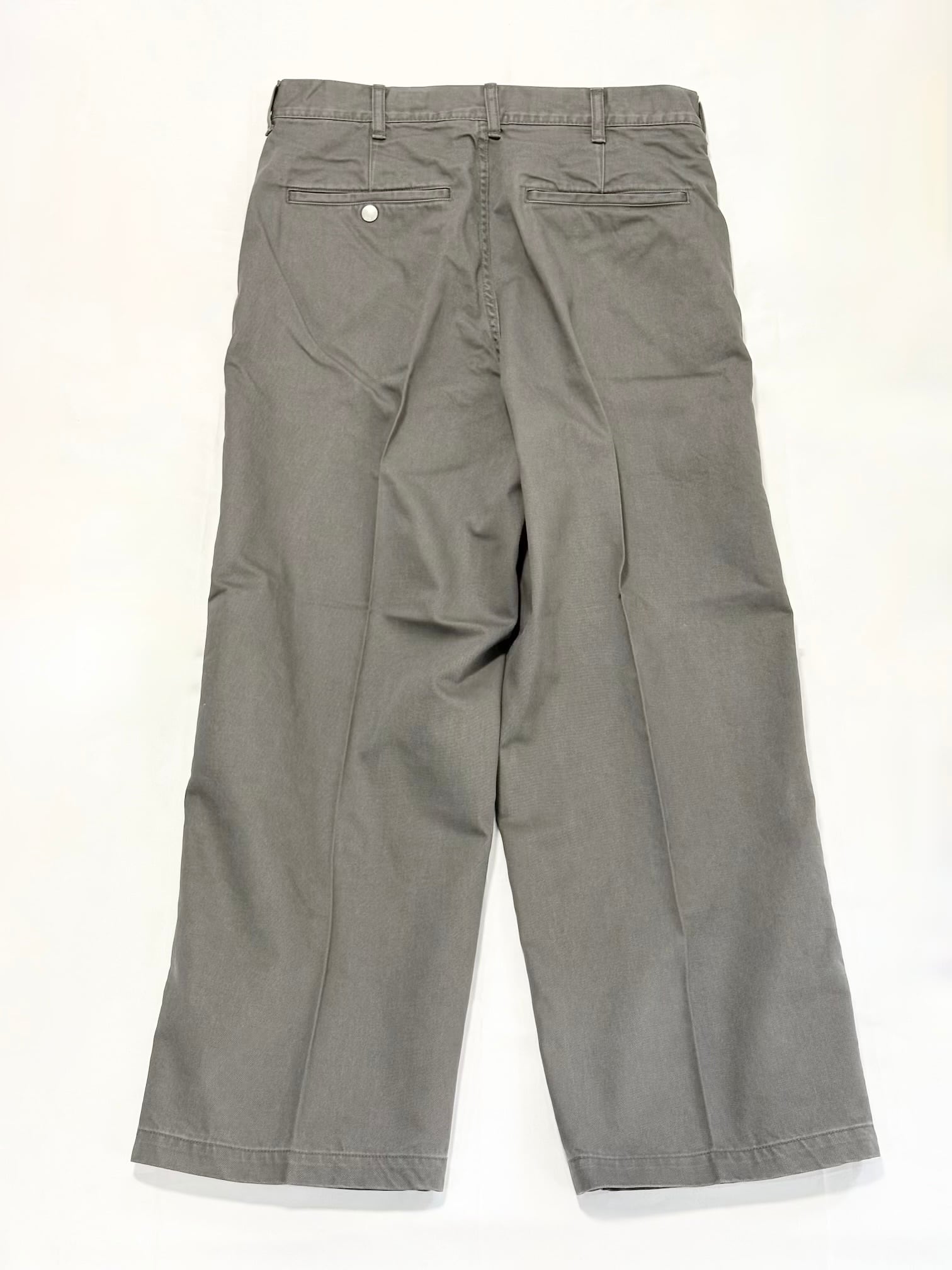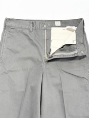 染料と顔料で2度染したフランス軍の軍パンを再生したドリル生地を用いたトラウザーパンツです。
