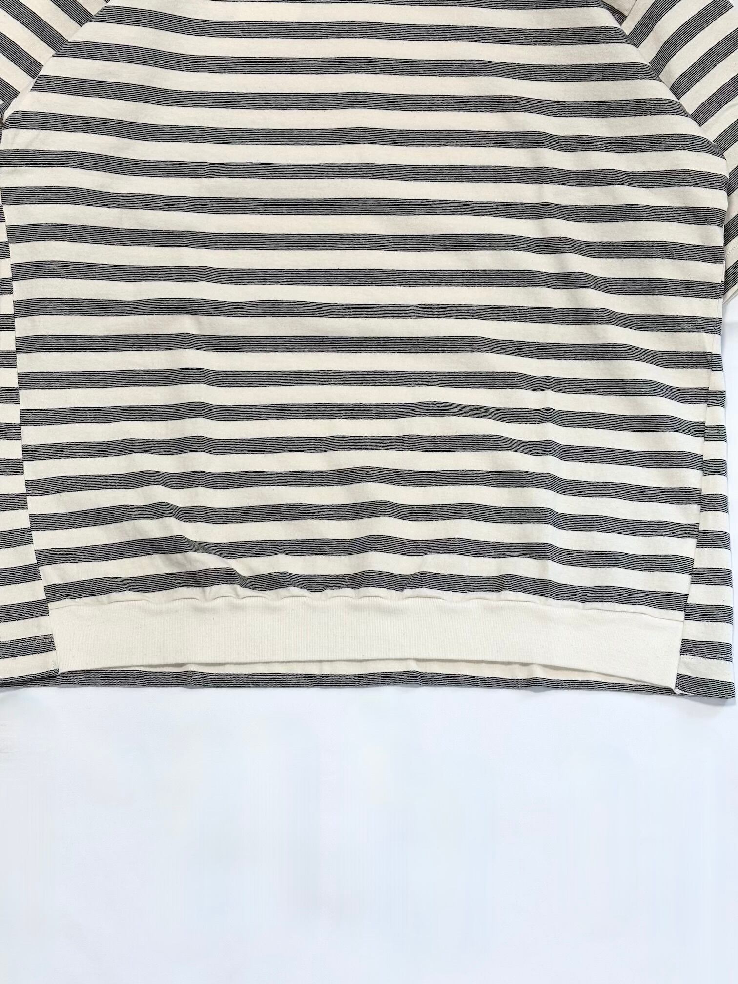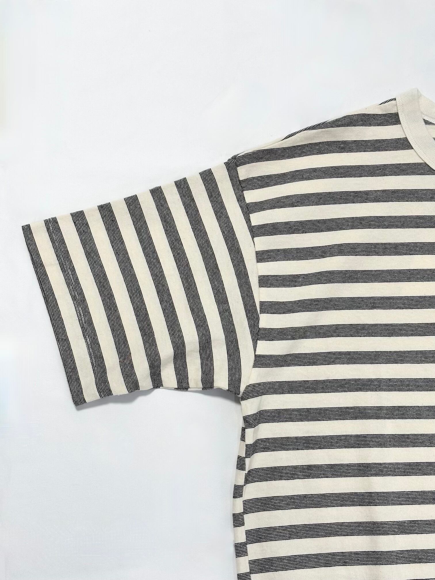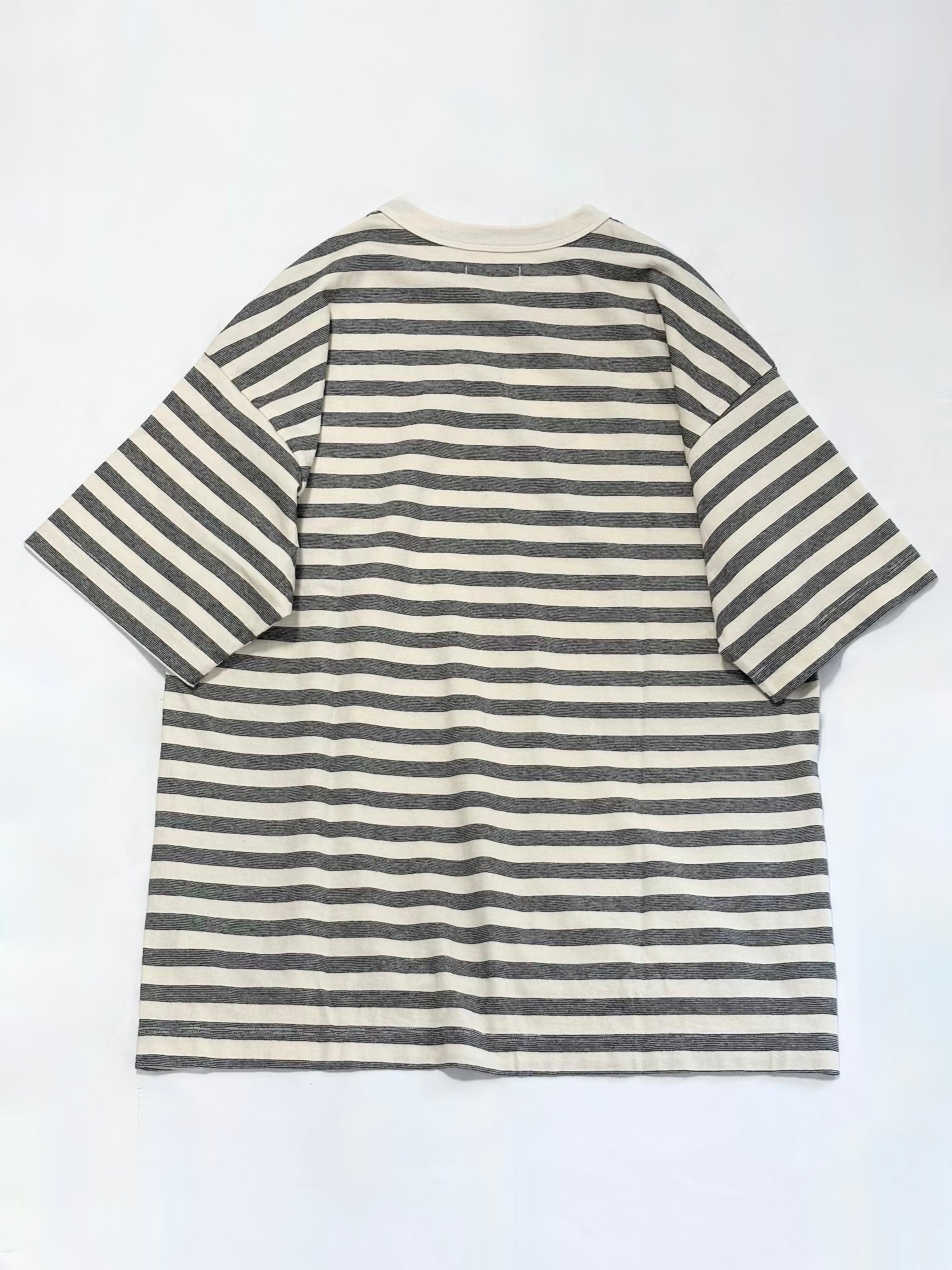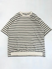 全体的にゆったりとしたボックスシルエットの”抜け”感と製品染特有の味のある色味が素敵なボーダーTシャツです。