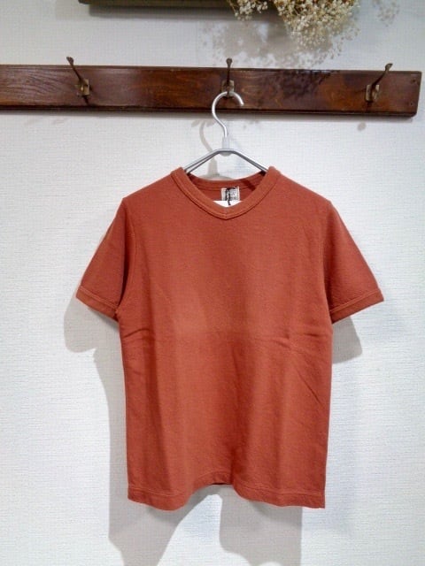 LOOP&WEFT・ツイルダブルフェイスニット Vネック半袖・ディープチェリー