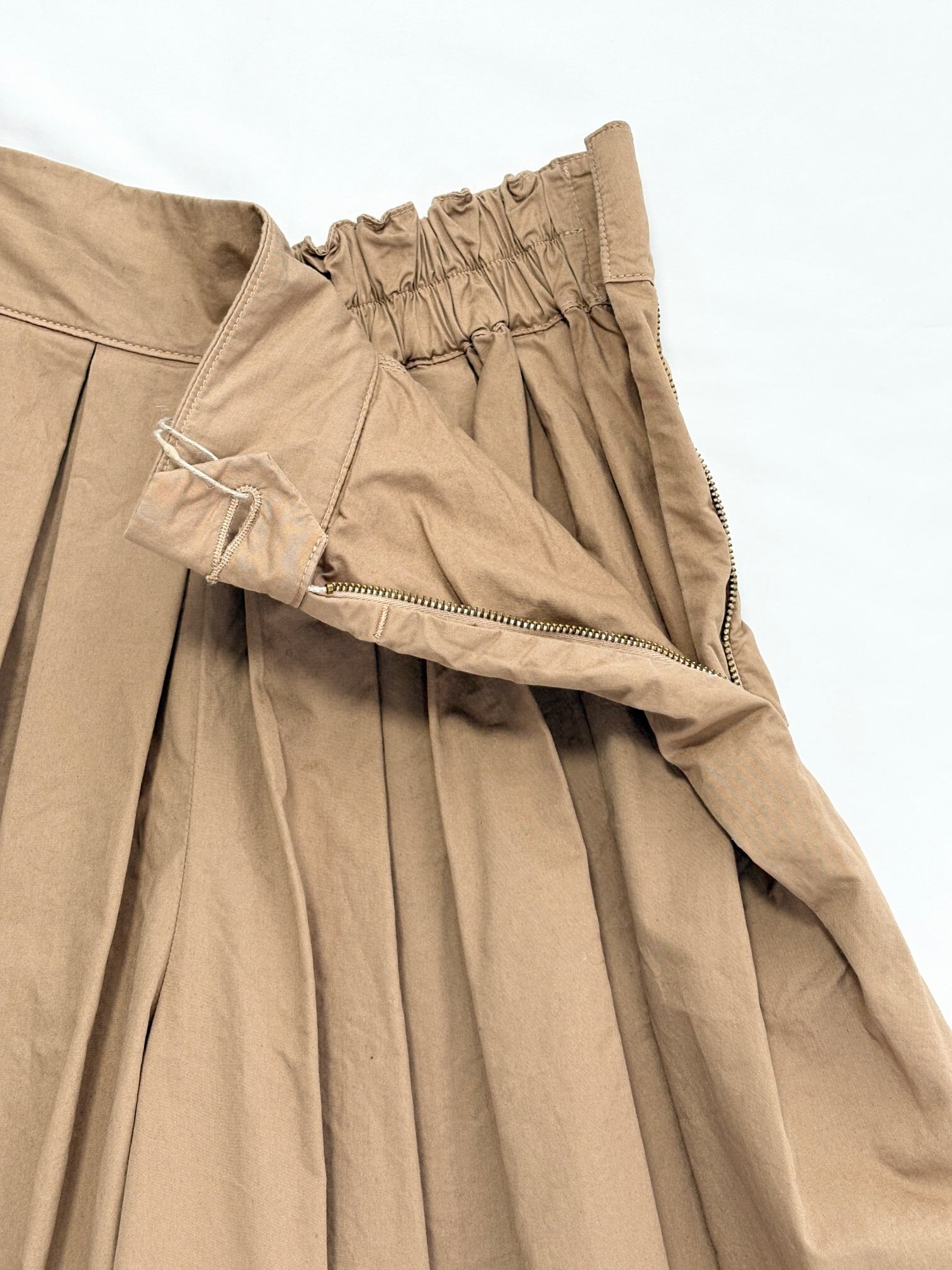 ウエストとスソのボックスプリーツが綺麗なボリューム感を出す立体的なバルーンシルエットが特徴です。
