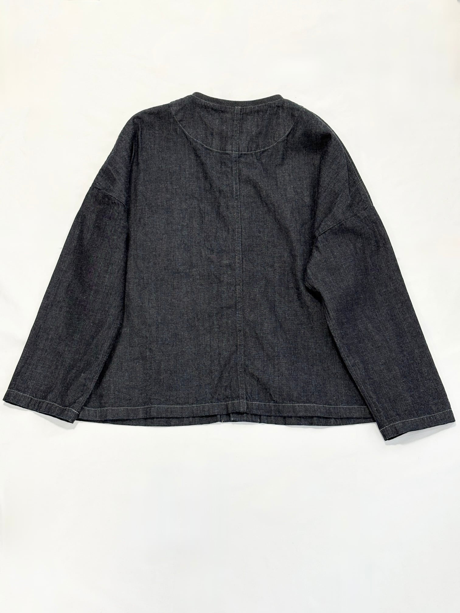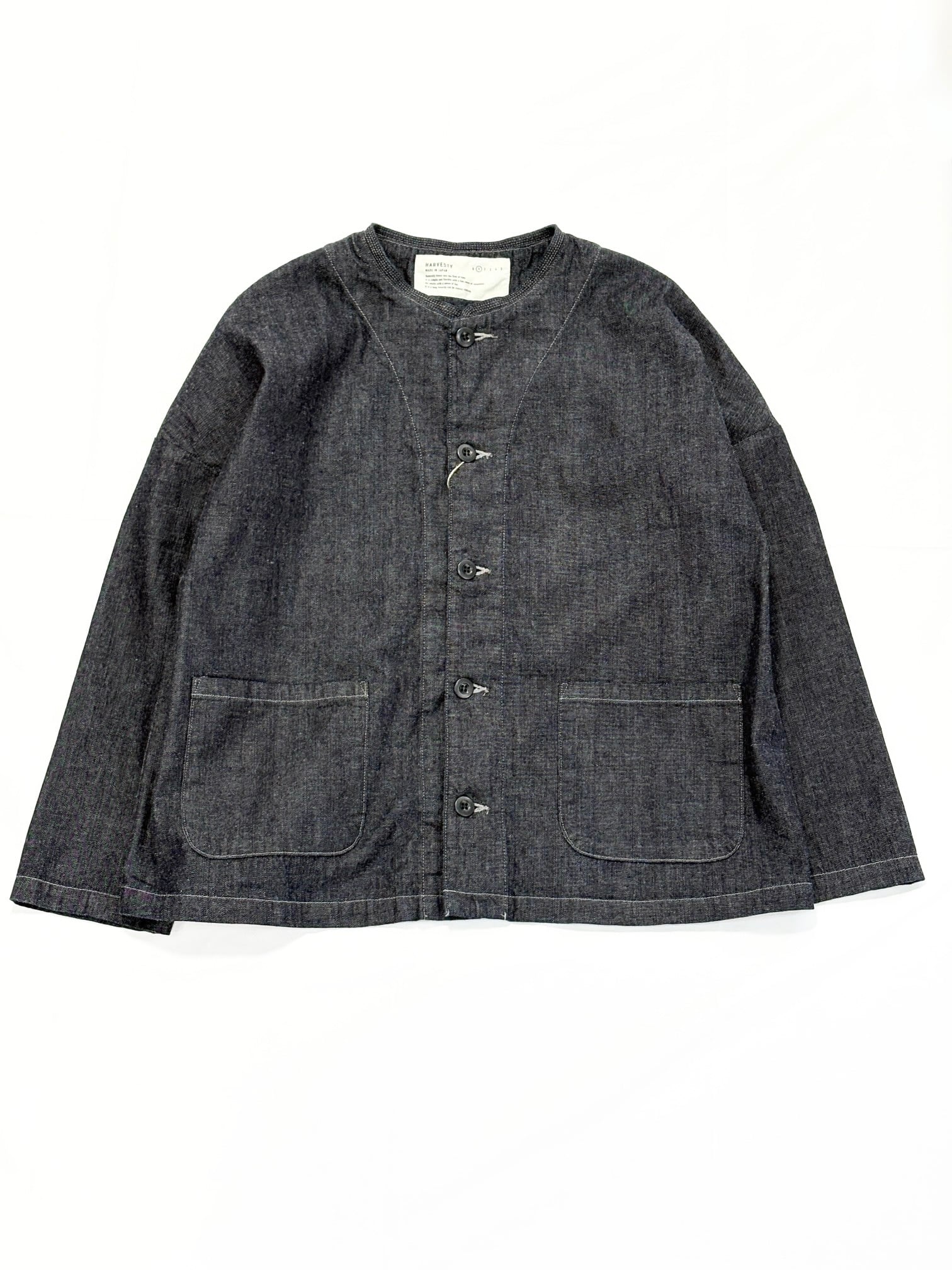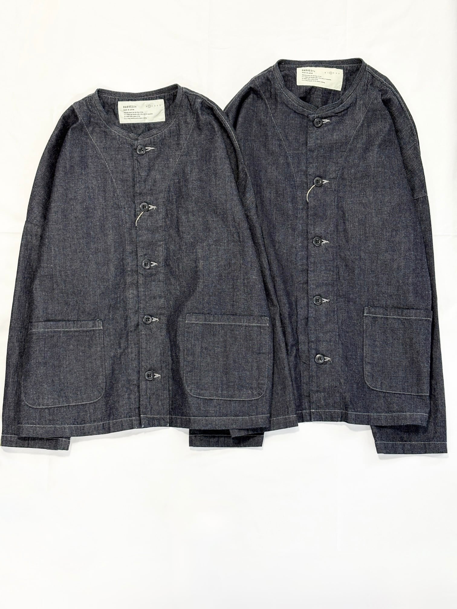 ほぼノーカラーのような小さなスタンドカラーの存在感と肩の落ちたゆったり目のシルエットが非常に良い塩梅のバランスになり、スタイリングや年齢・性別に関係なく羽織れるアウターとして仕上がっています。